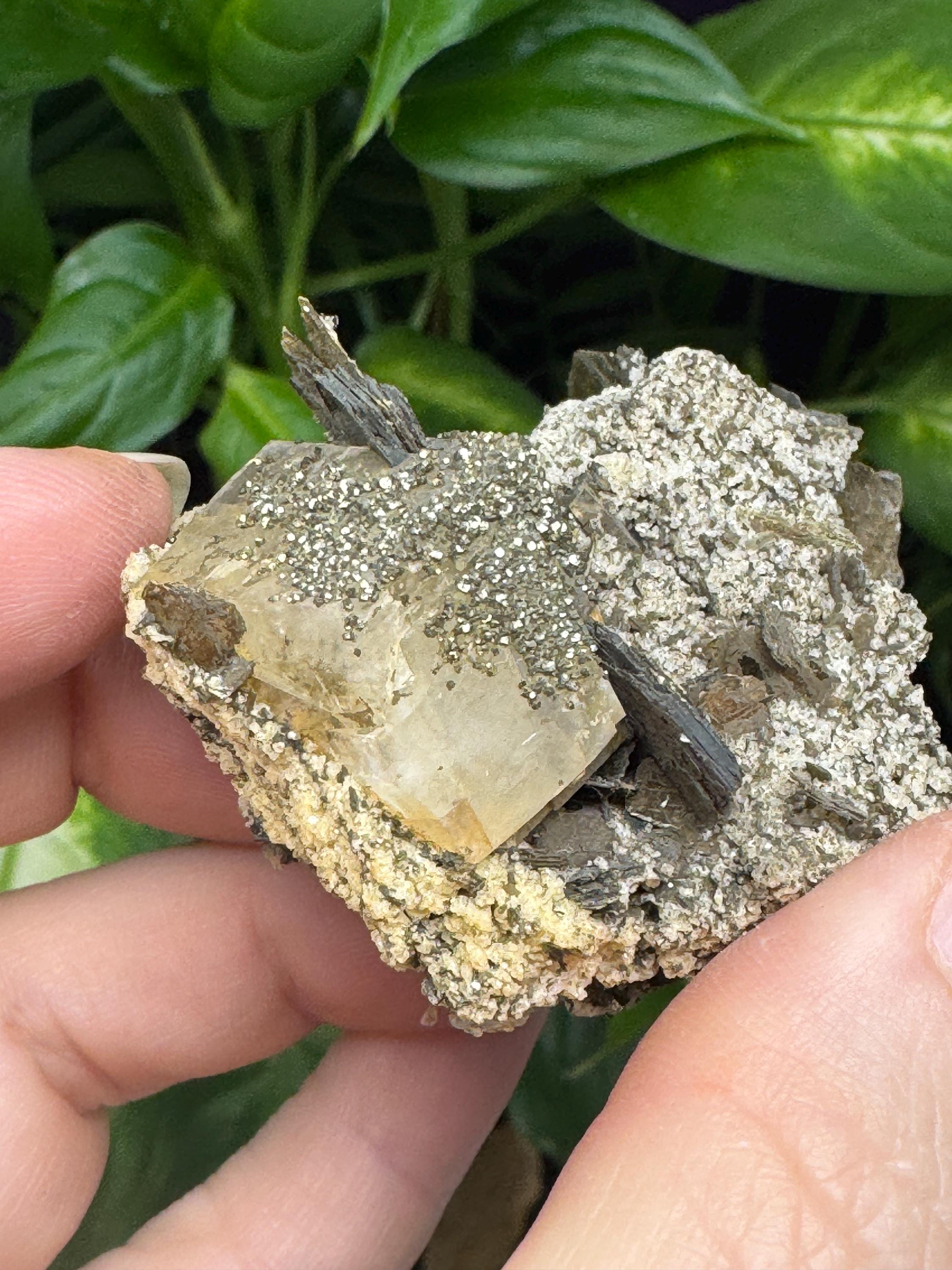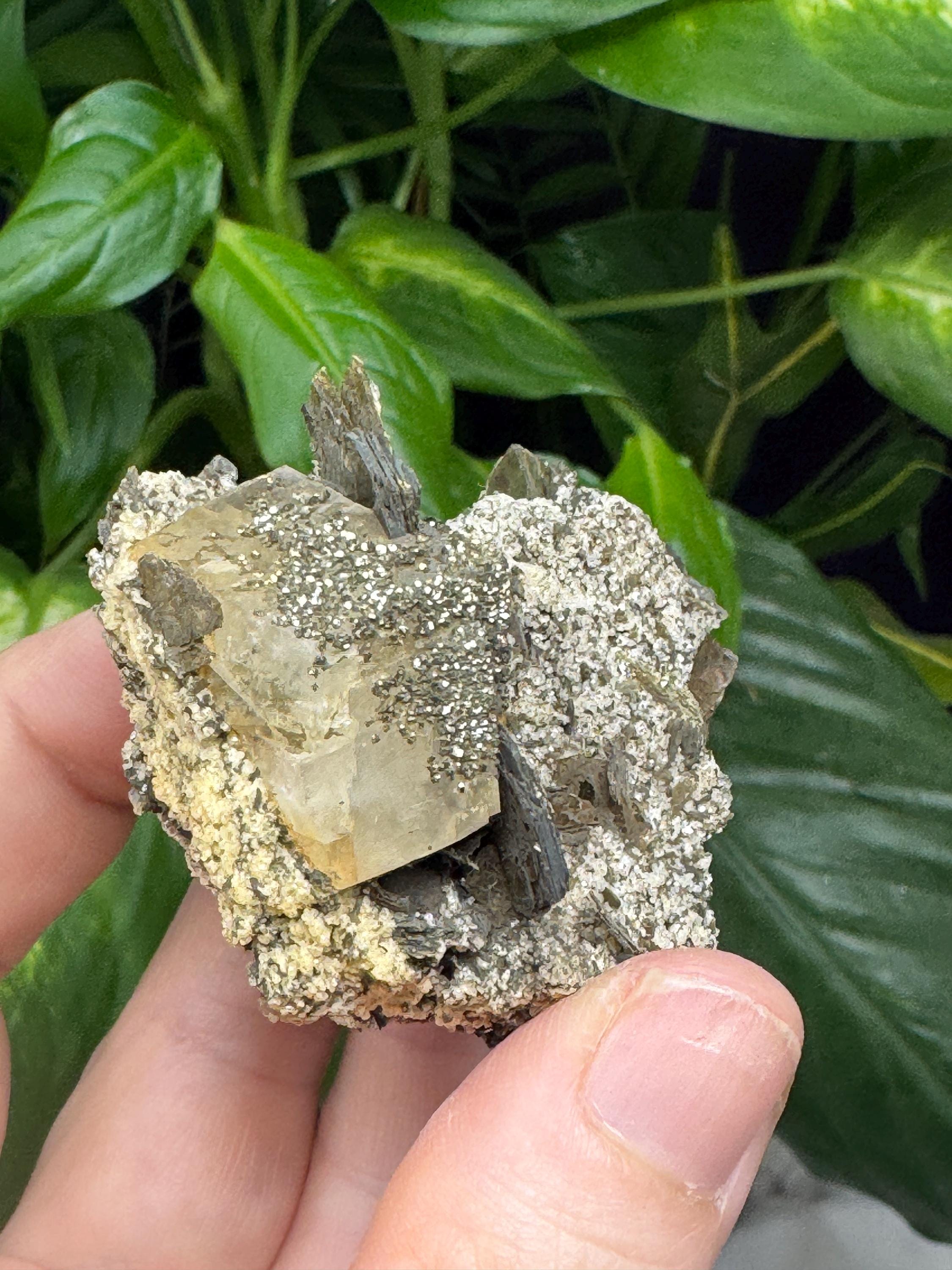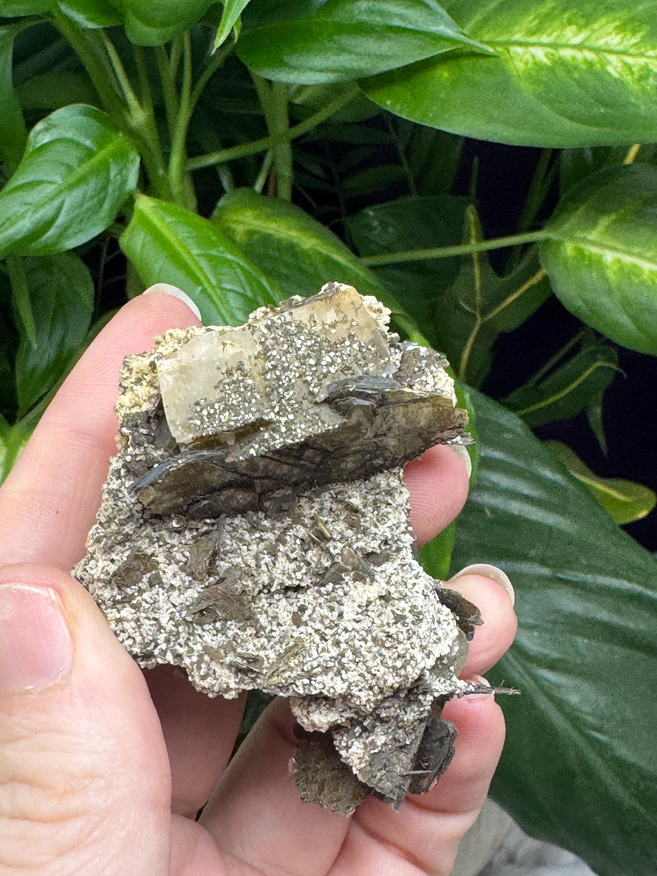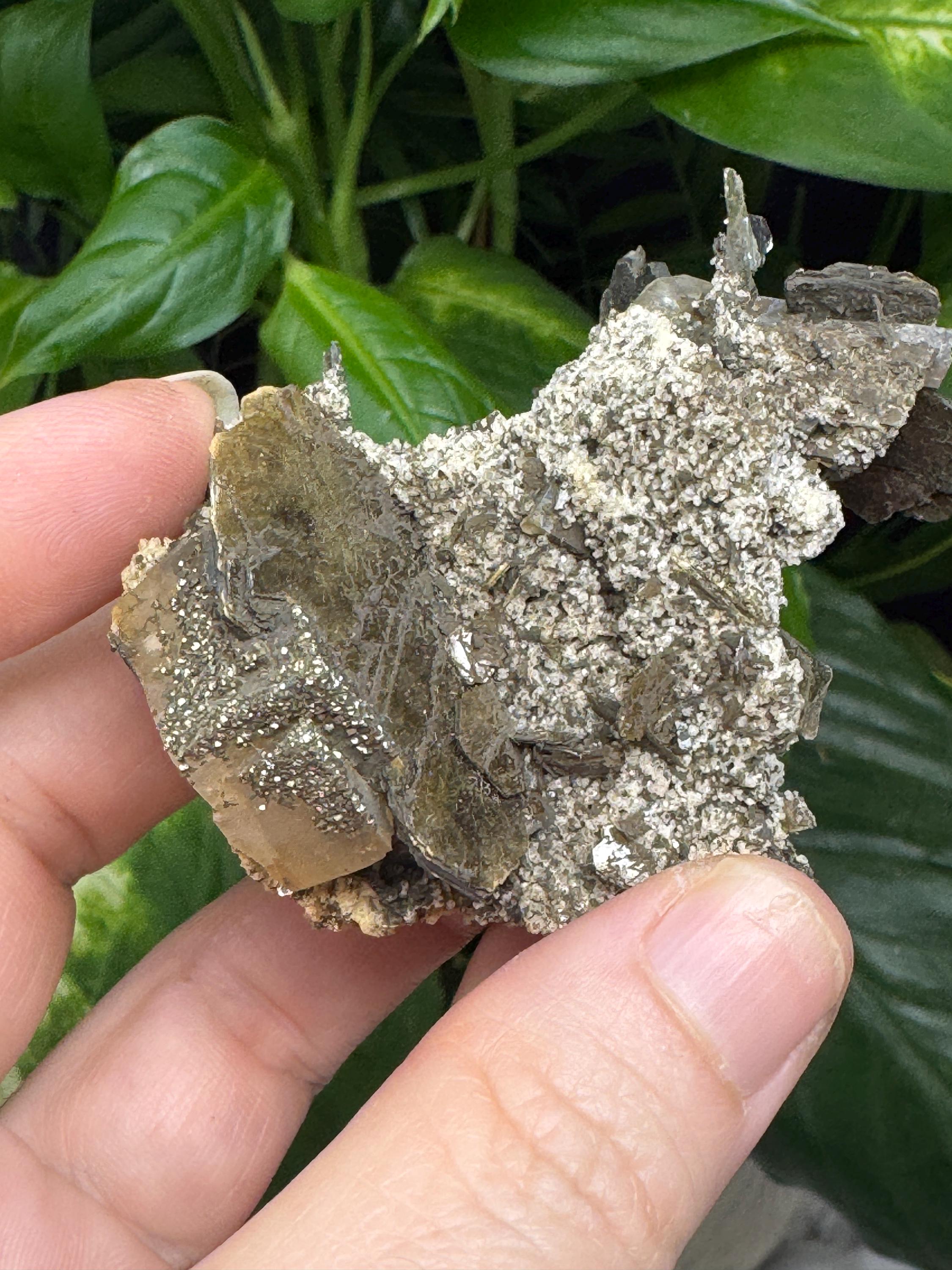 Siderite and Mica with Pyrite from NAEM in Hiddenite NC. Collected by Terry Ledford. This piece is a very unique piece and combo.6 X 5.25cm