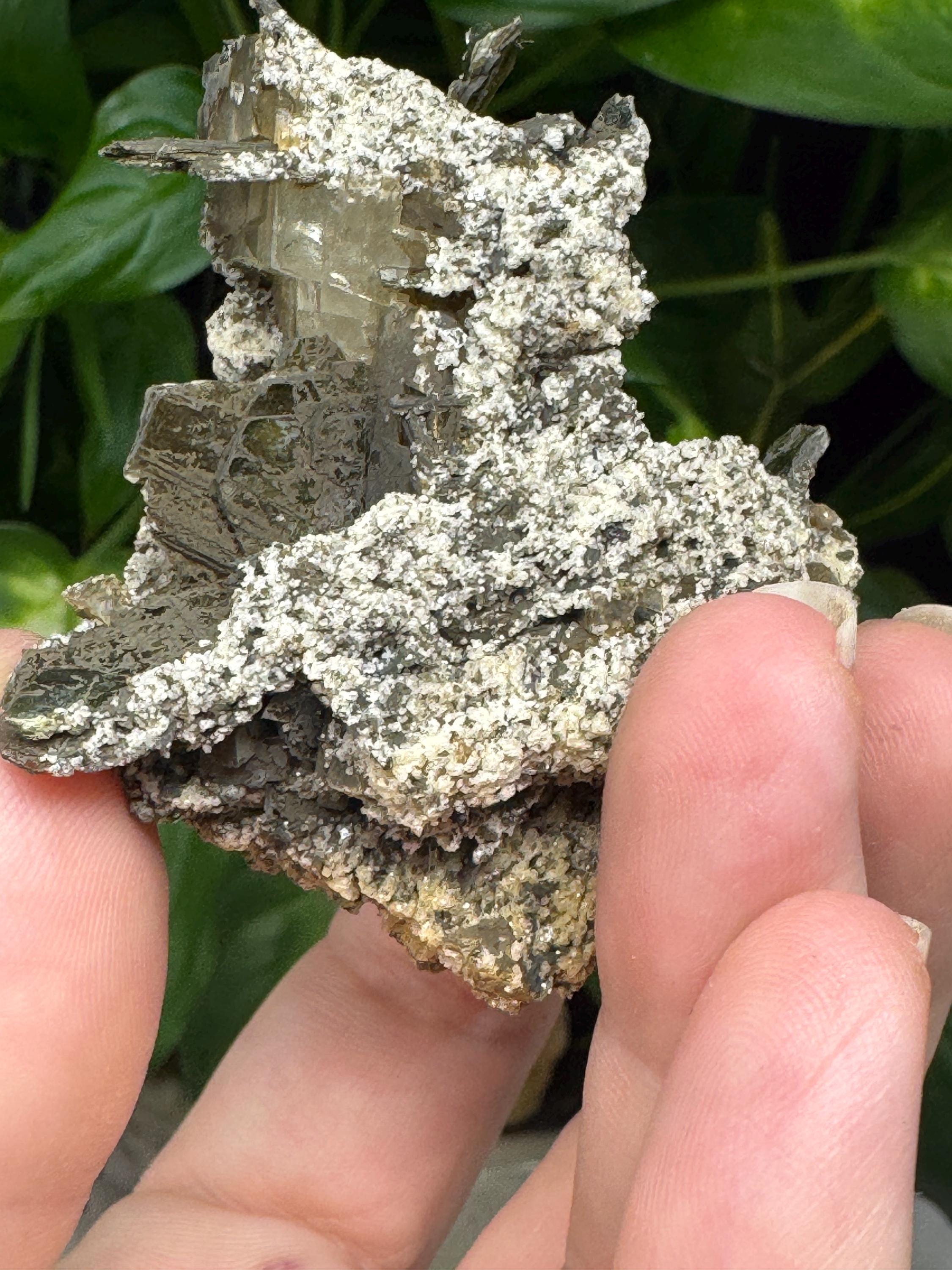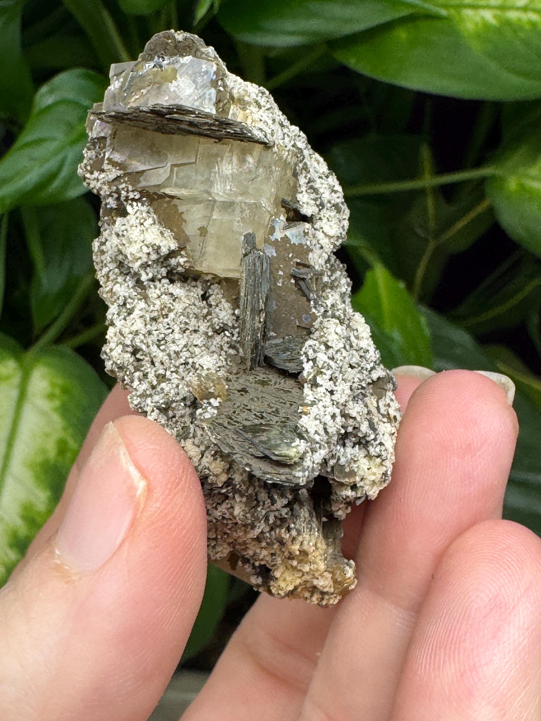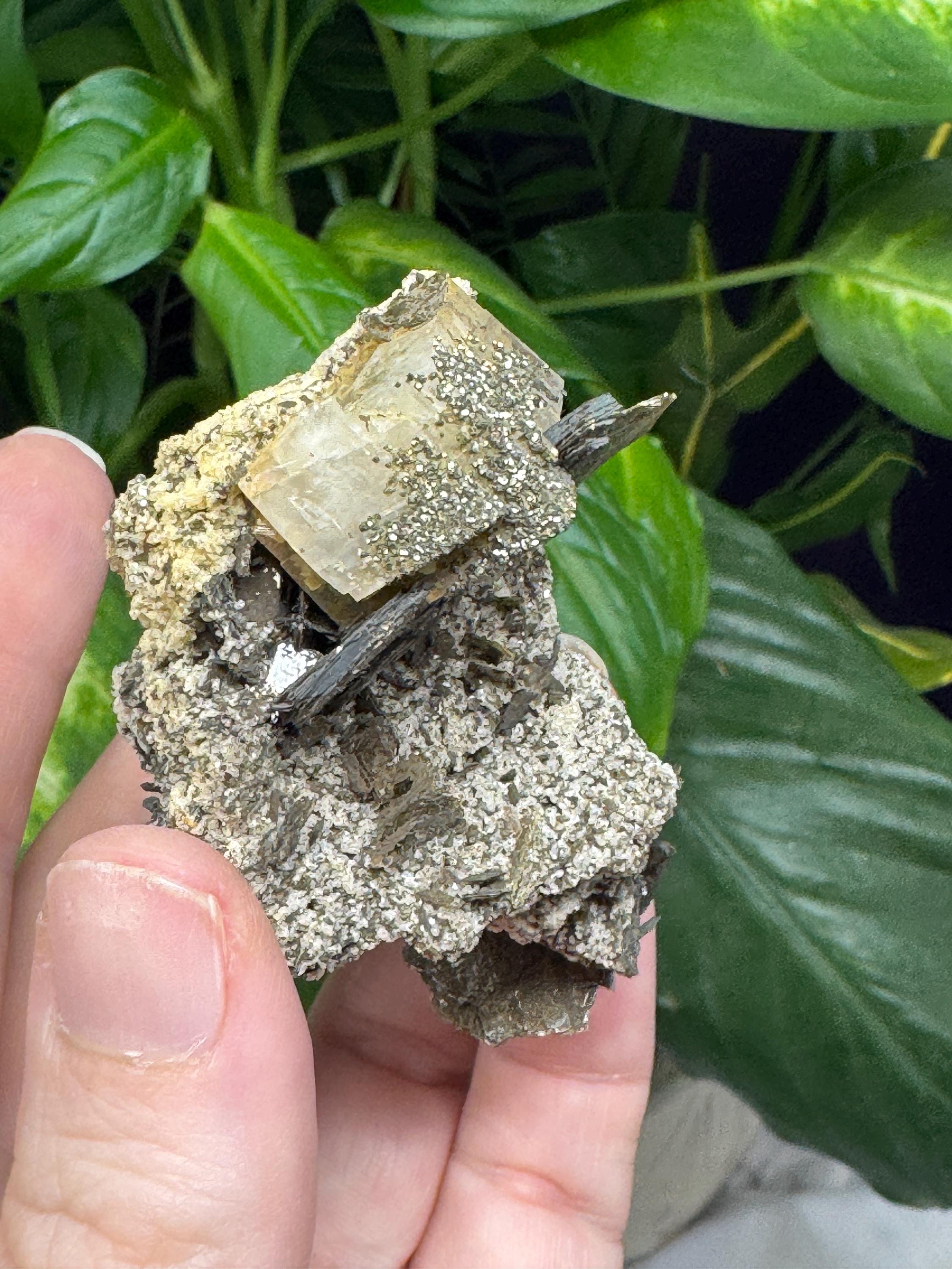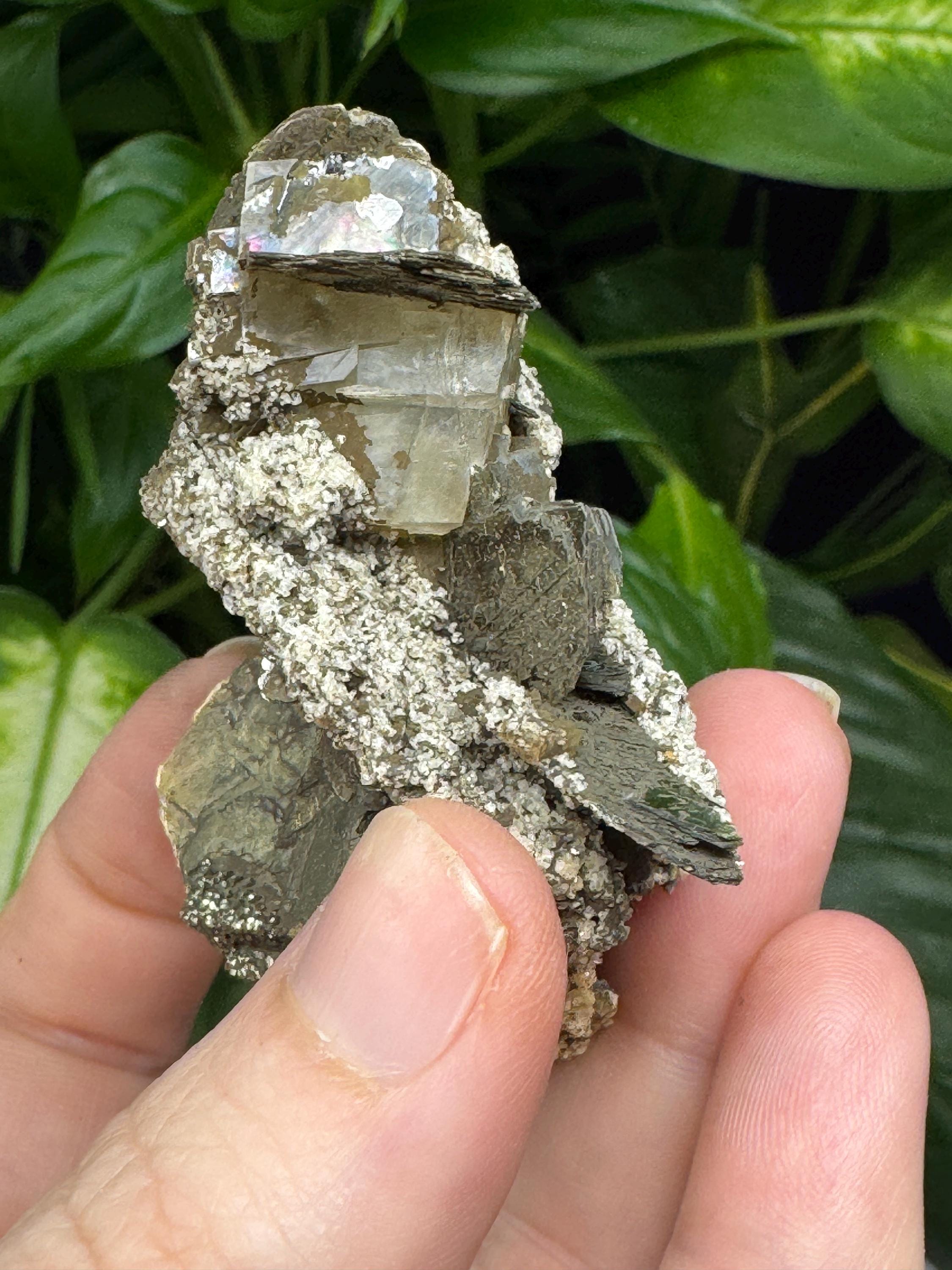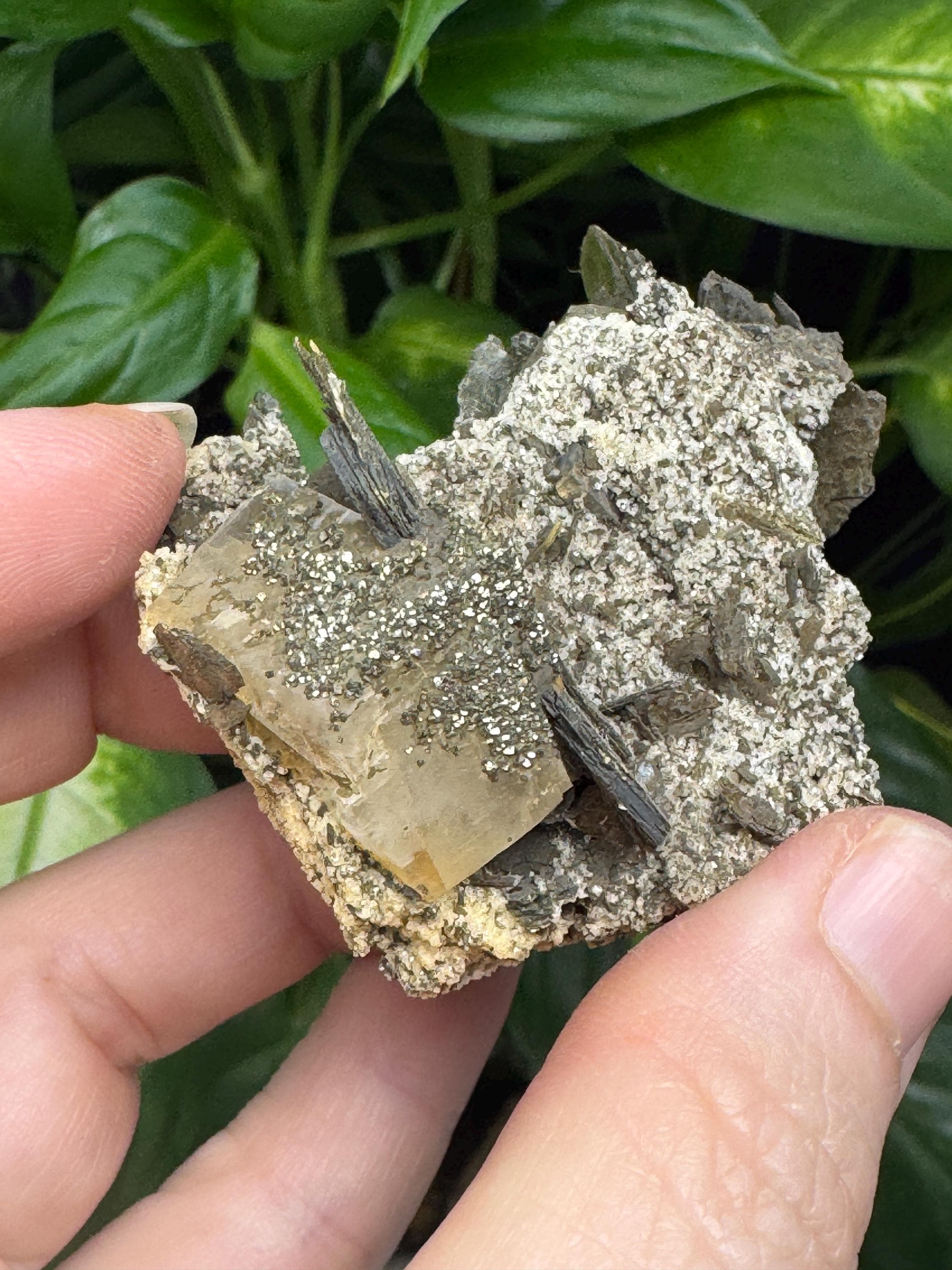 Siderite and Mica with Pyrite from NAEM in Hiddenite NC. Collected by Terry Ledford. This piece is a very unique piece and combo.6 X 5.25cm