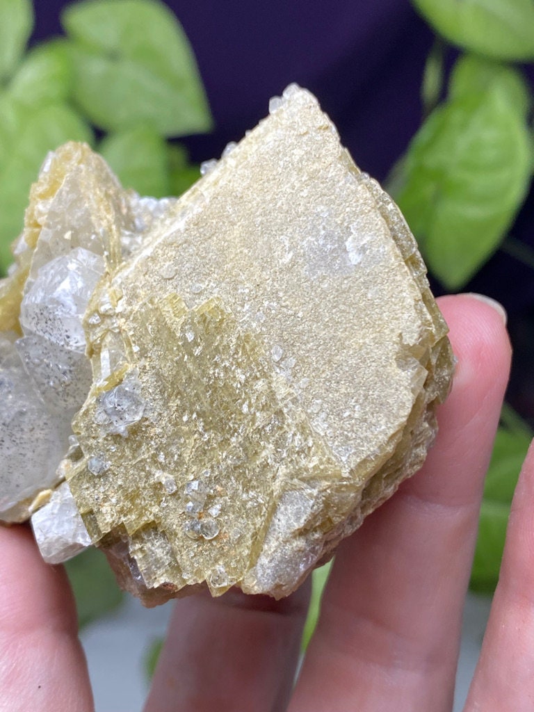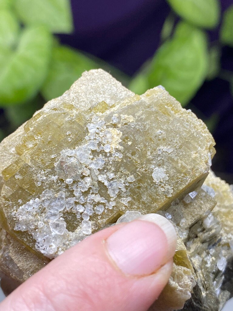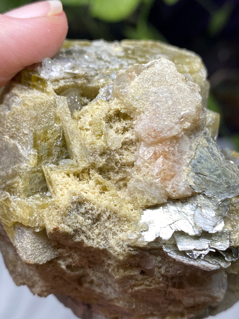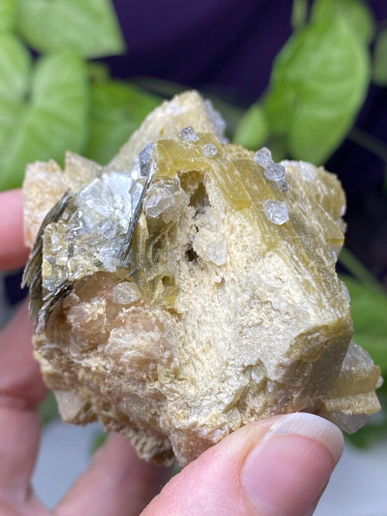 Calcite into Siderite with Mica Calcite that has Pyrite Inclusions from North American Emerald Mine, North Carolina. This is a great specimen to show different generations of growth. Collected by Terry Ledford.7 x 6cm