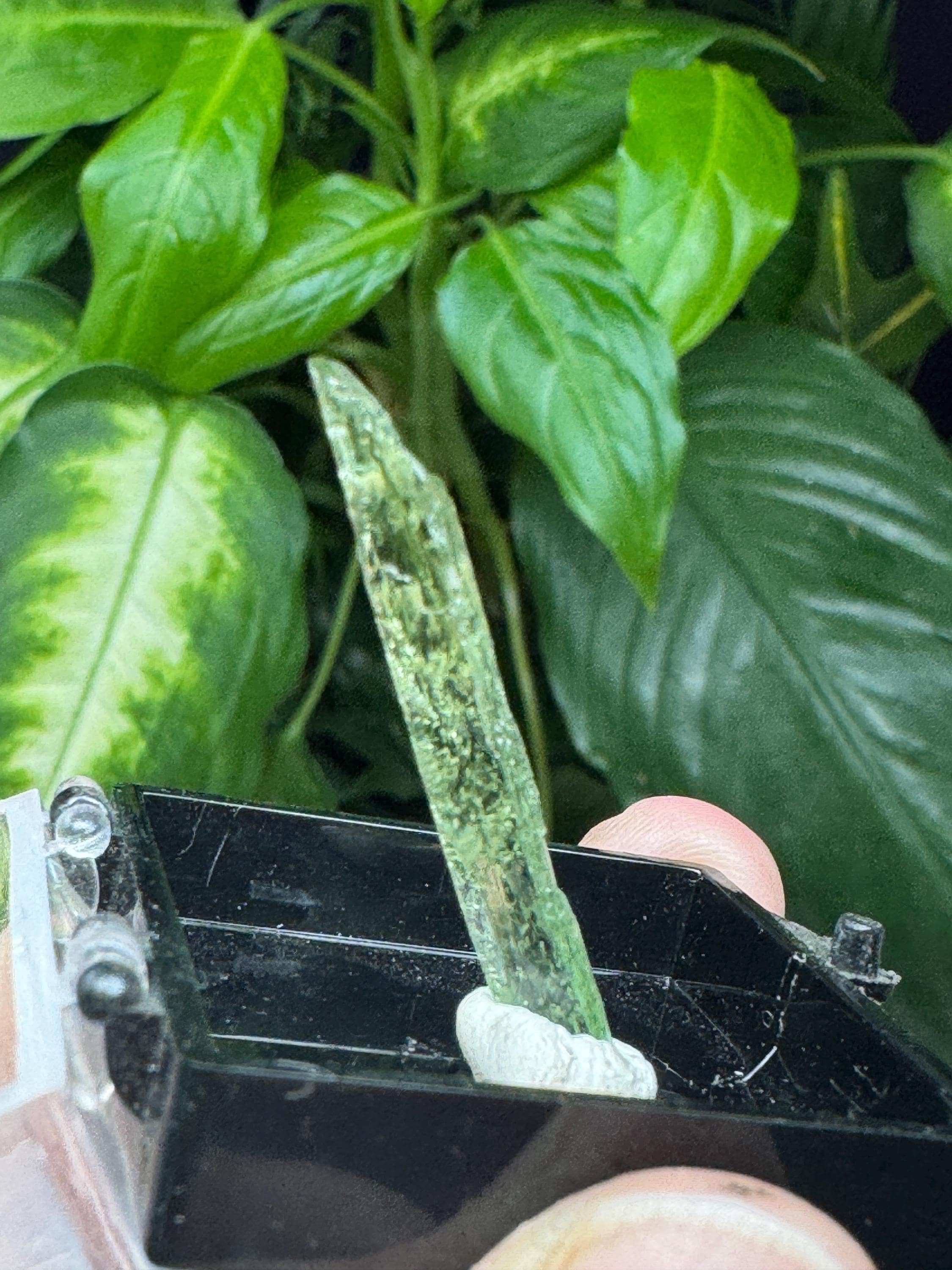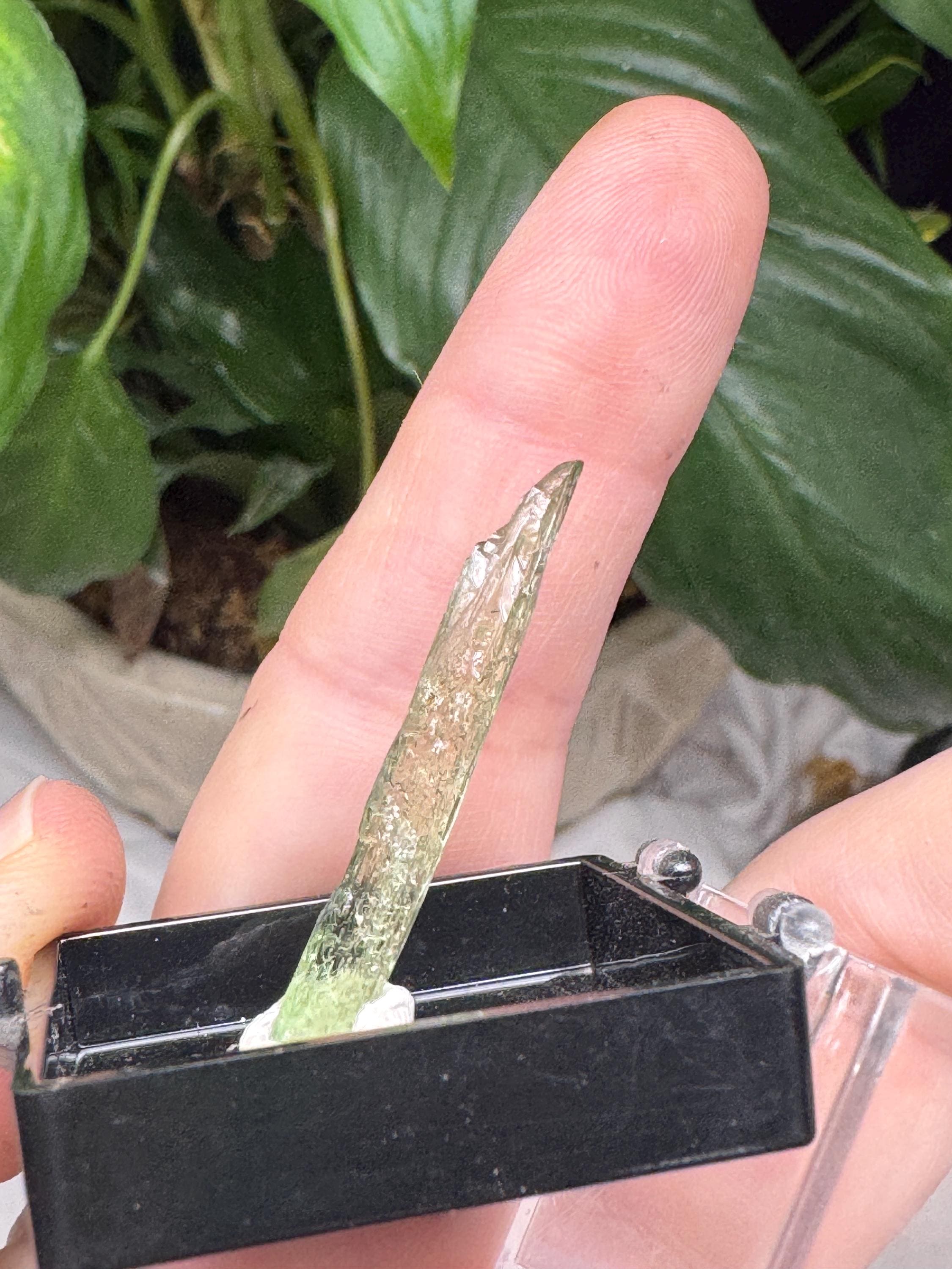 Beautiful Hiddenite from Hiddenite NC, Adams Farm. Good color and termination. Mined by Terry Ledford in 2006. 7.2 caratsAll minerals come with a collection card.