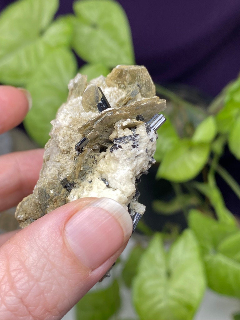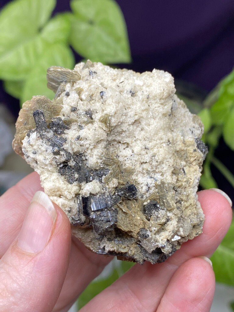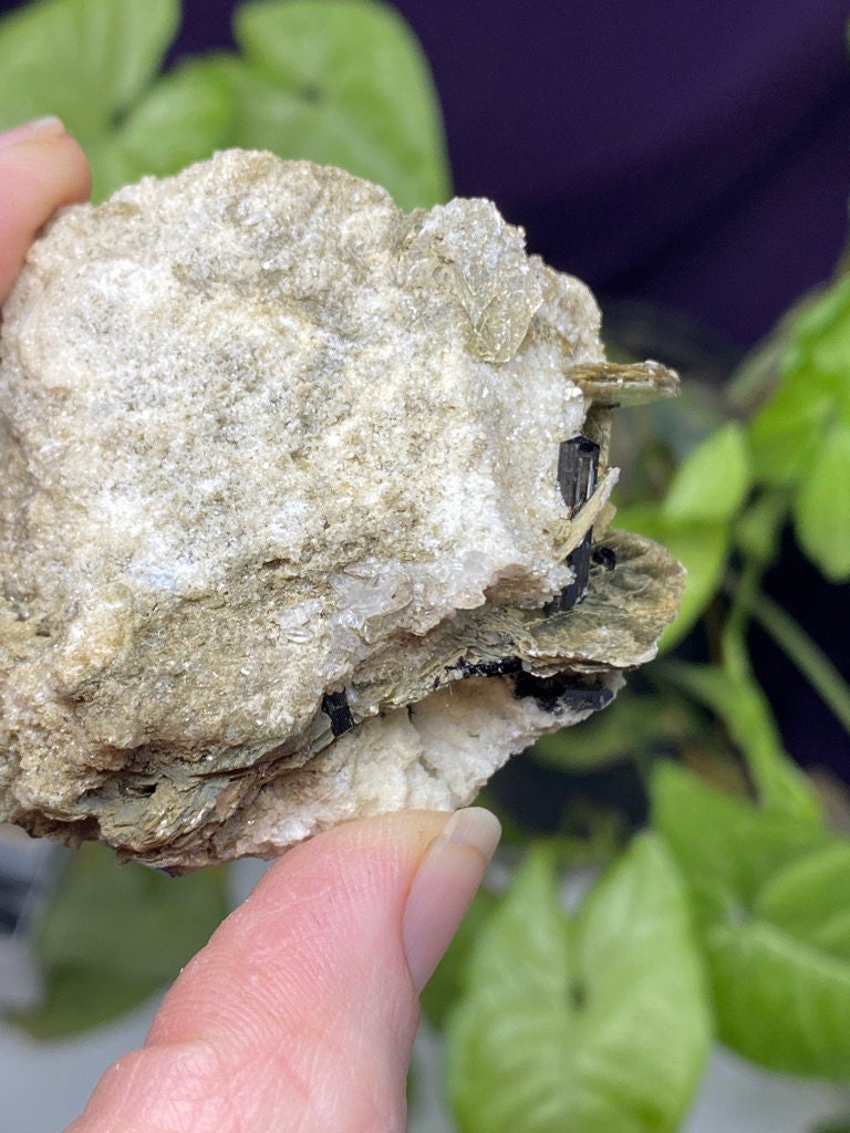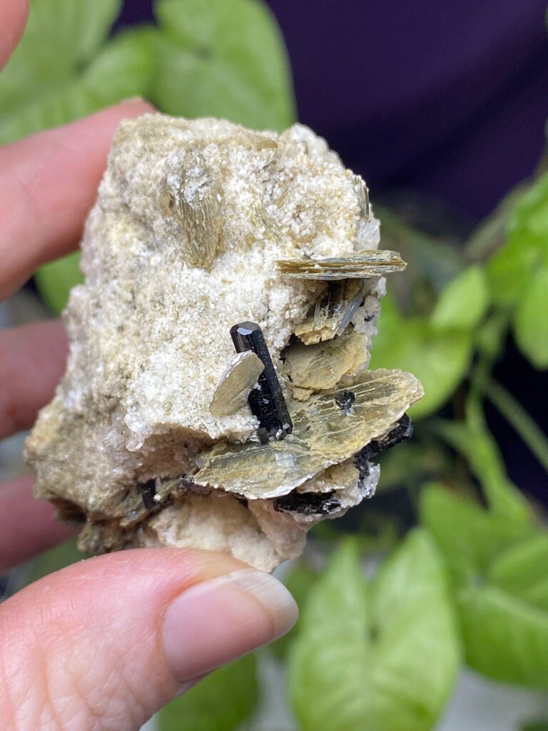 Albite with Rutile and Mica from North American Emerald Mine, Hiddenite, NC. Collected by Terry Ledford. This piece has awesome contrast and aesthetics.6 x 5.5cm