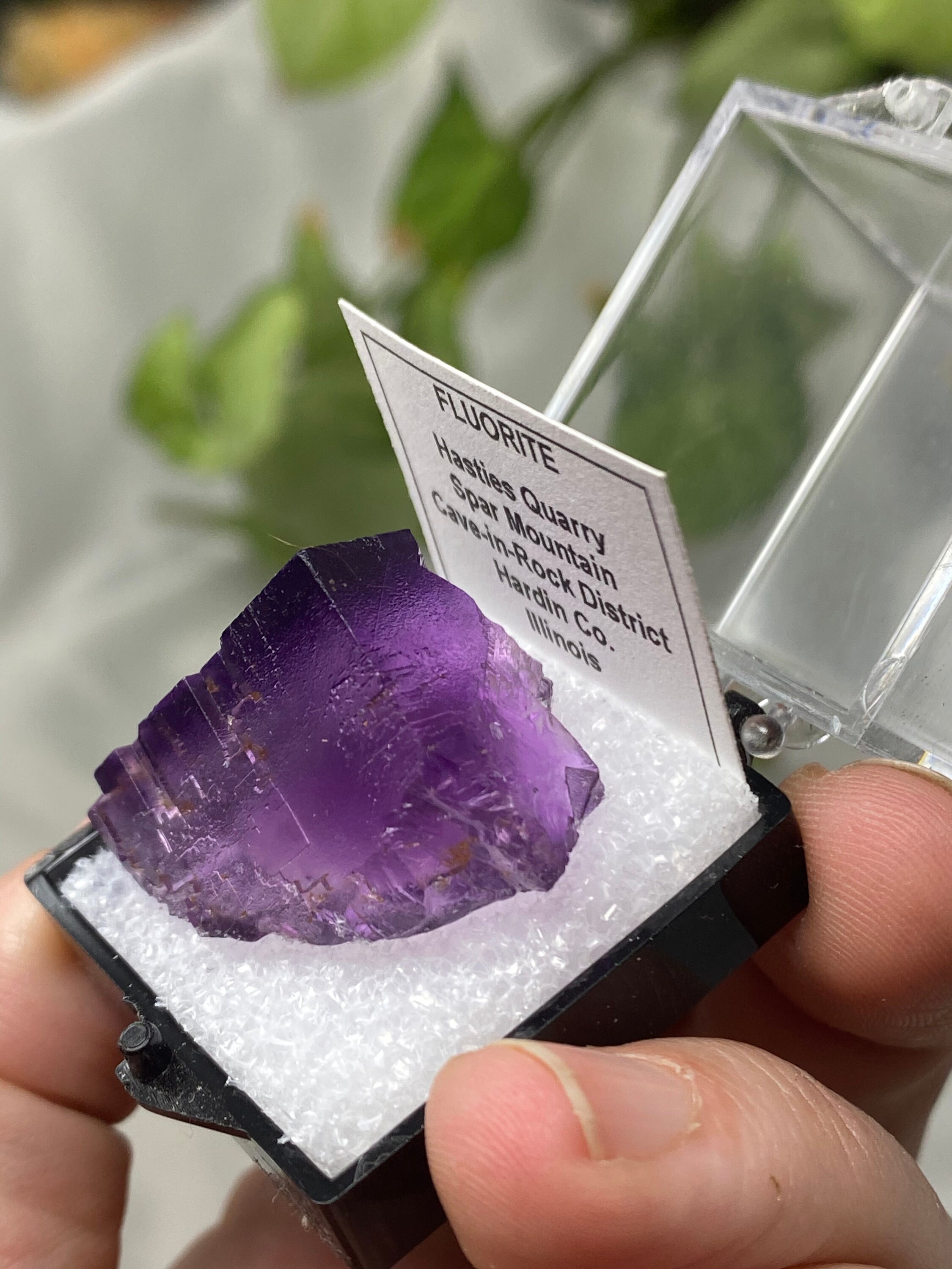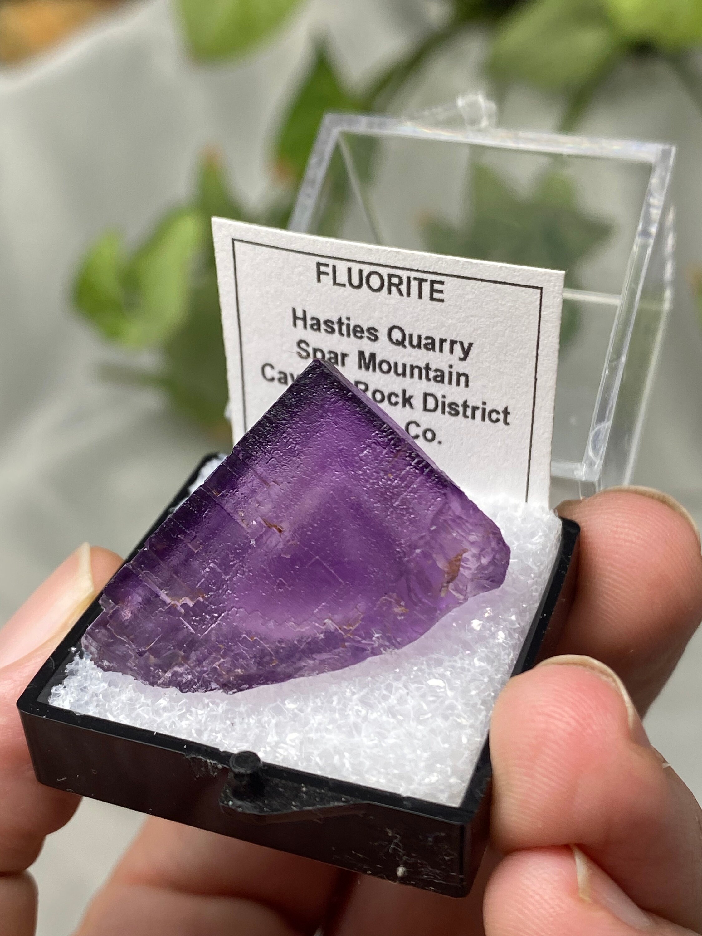 Fluorite with Petroleum from Hasties Quarry, Hardin County, Illinois. The petroleum inclusions are UV reactive and lay on each zone layer. Found in 2023. Thumbnail