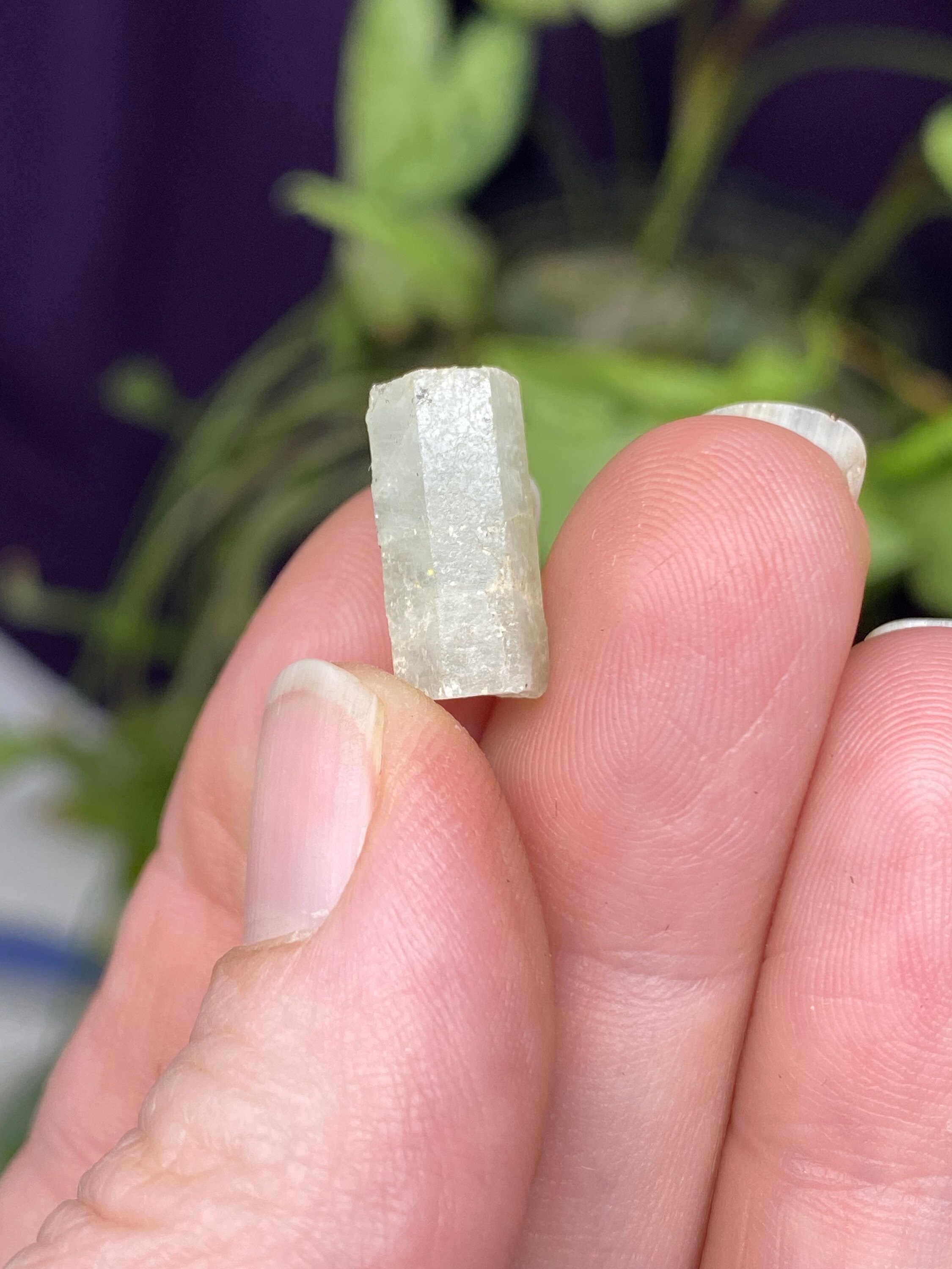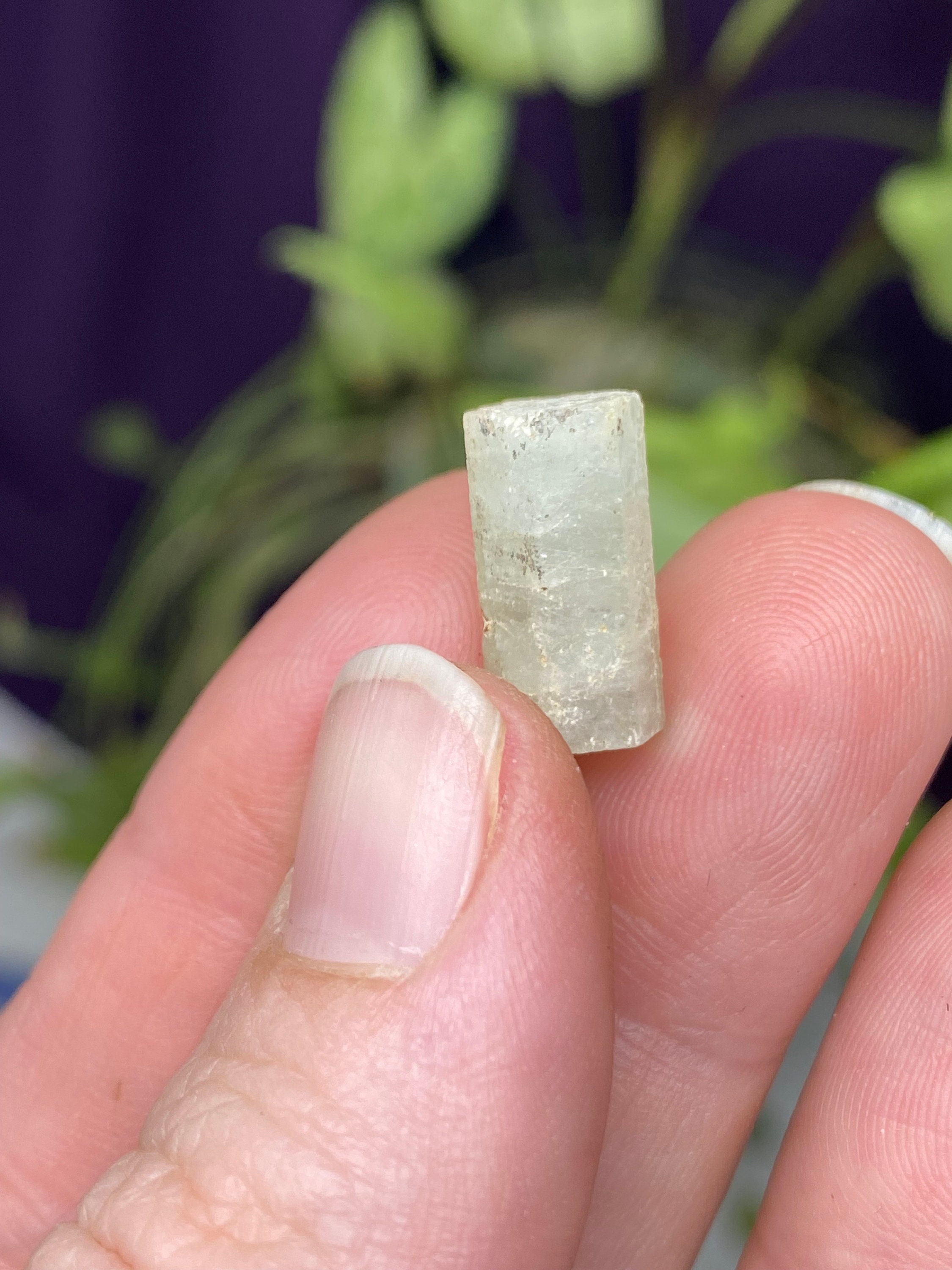 Sweet Beryl var Aquamarine Crystal from Carter's Ridge, Spruce Pine, NC. Now closed location. Old Find. This location is known for Beryl that will cats eye when cut. From the Luther Thomas Collection and Comes with a mineral card.