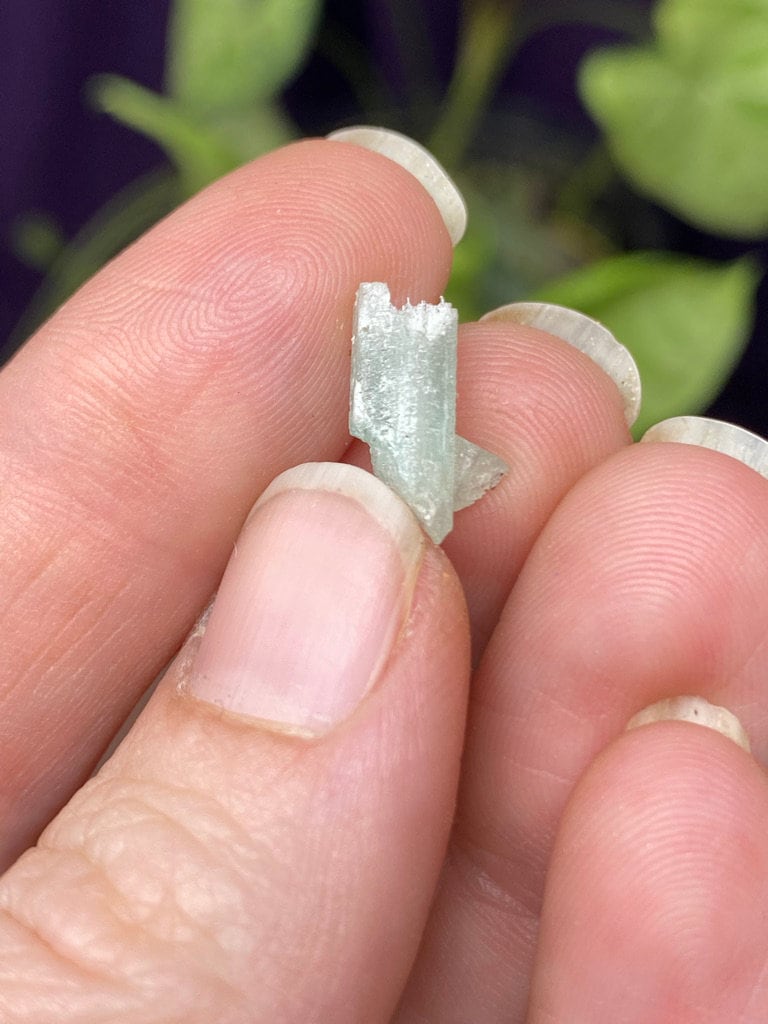 Sweet Beryl var Aquamarine Crystal from North American Emerald Mine, Hiddenite, NC. Collected by Terry Ledford around 2012. Comes with a mineral card.1.3cm