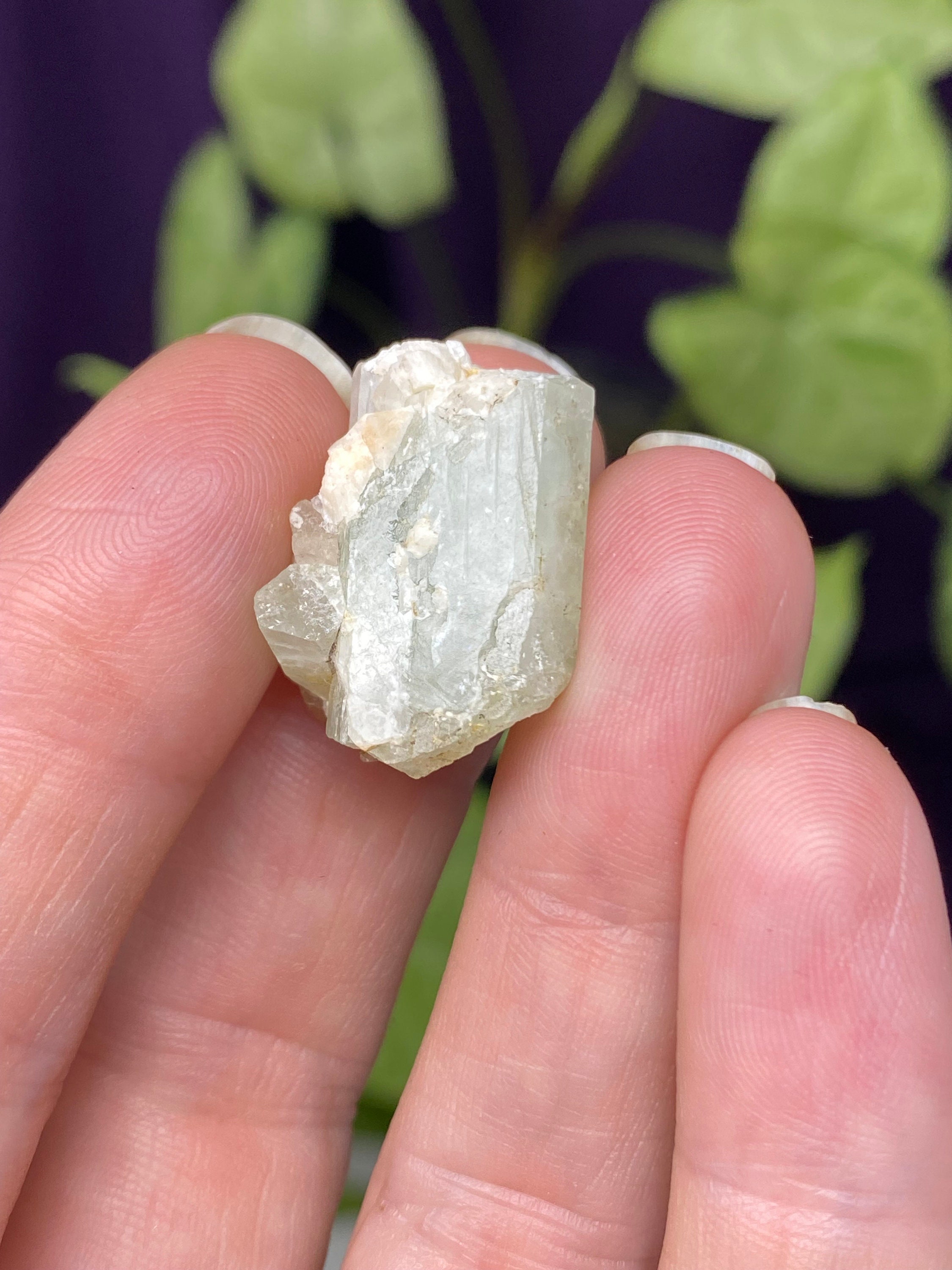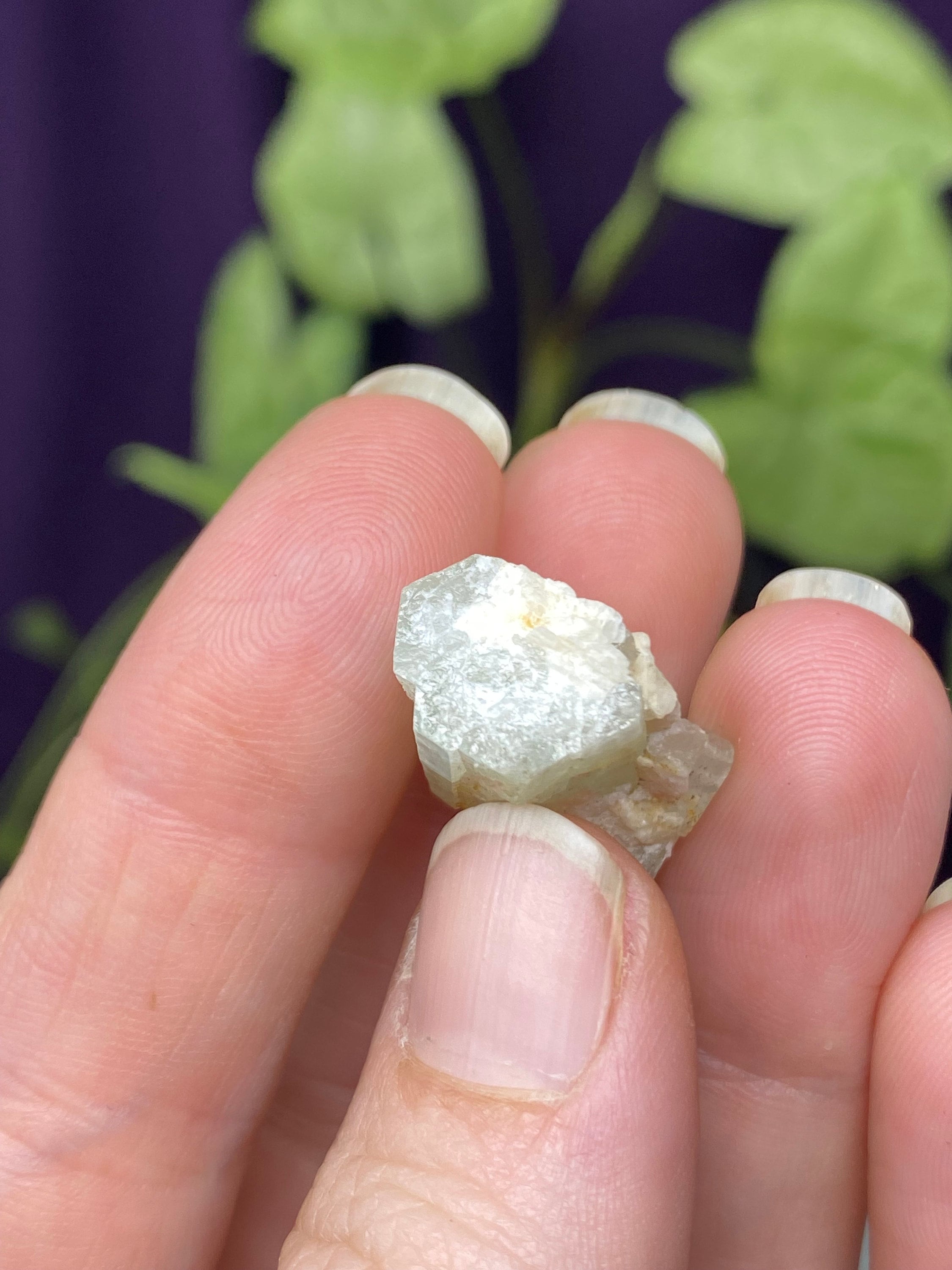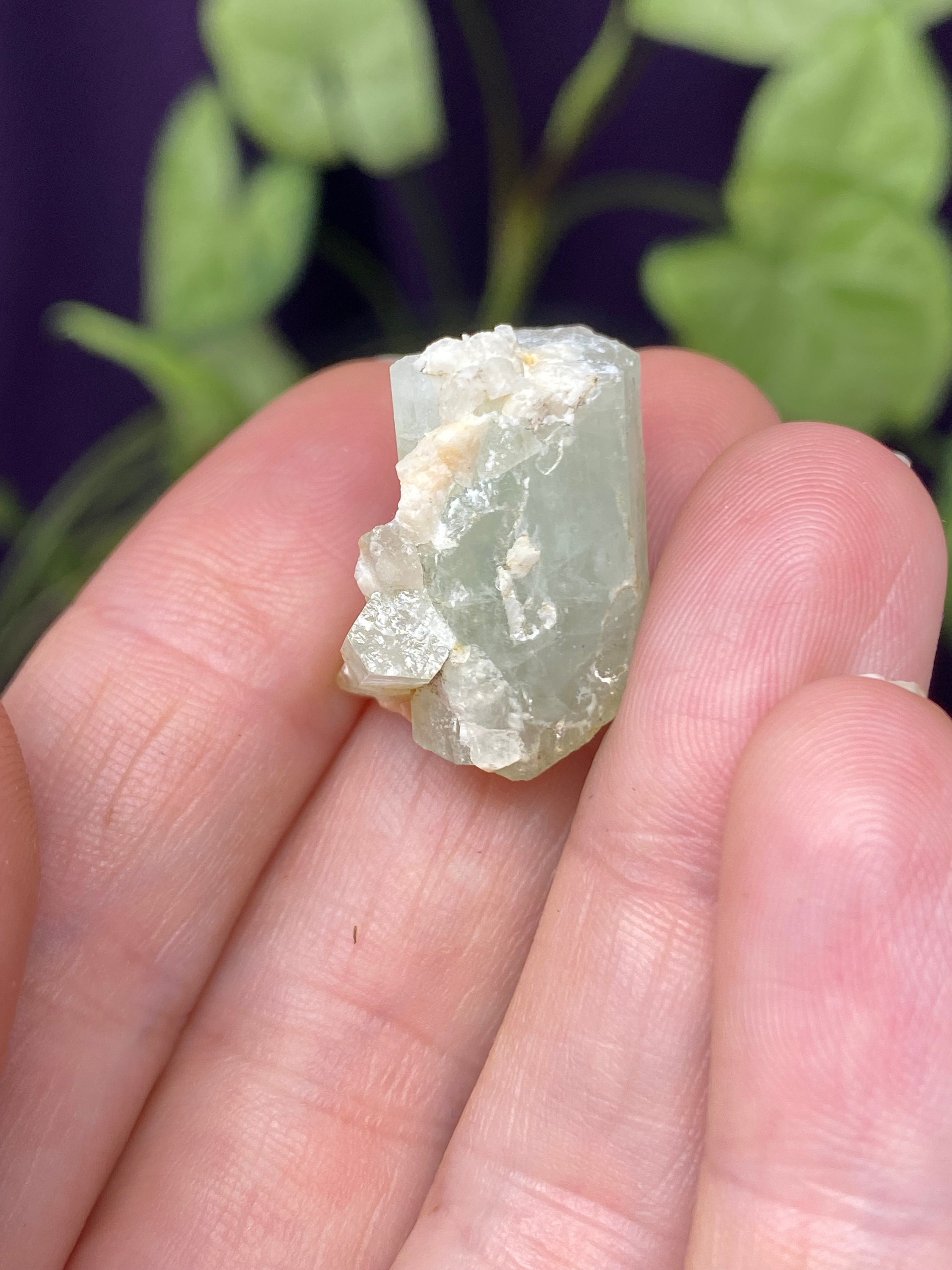 Sweet Beryl var Aquamarine Crystal from Carter's Ridge, Spruce Pine, NC. Now closed location. Old Find. This location is known for Beryl that will cats eye when cut. From the Luther Thomas Collection and Comes with a mineral card.