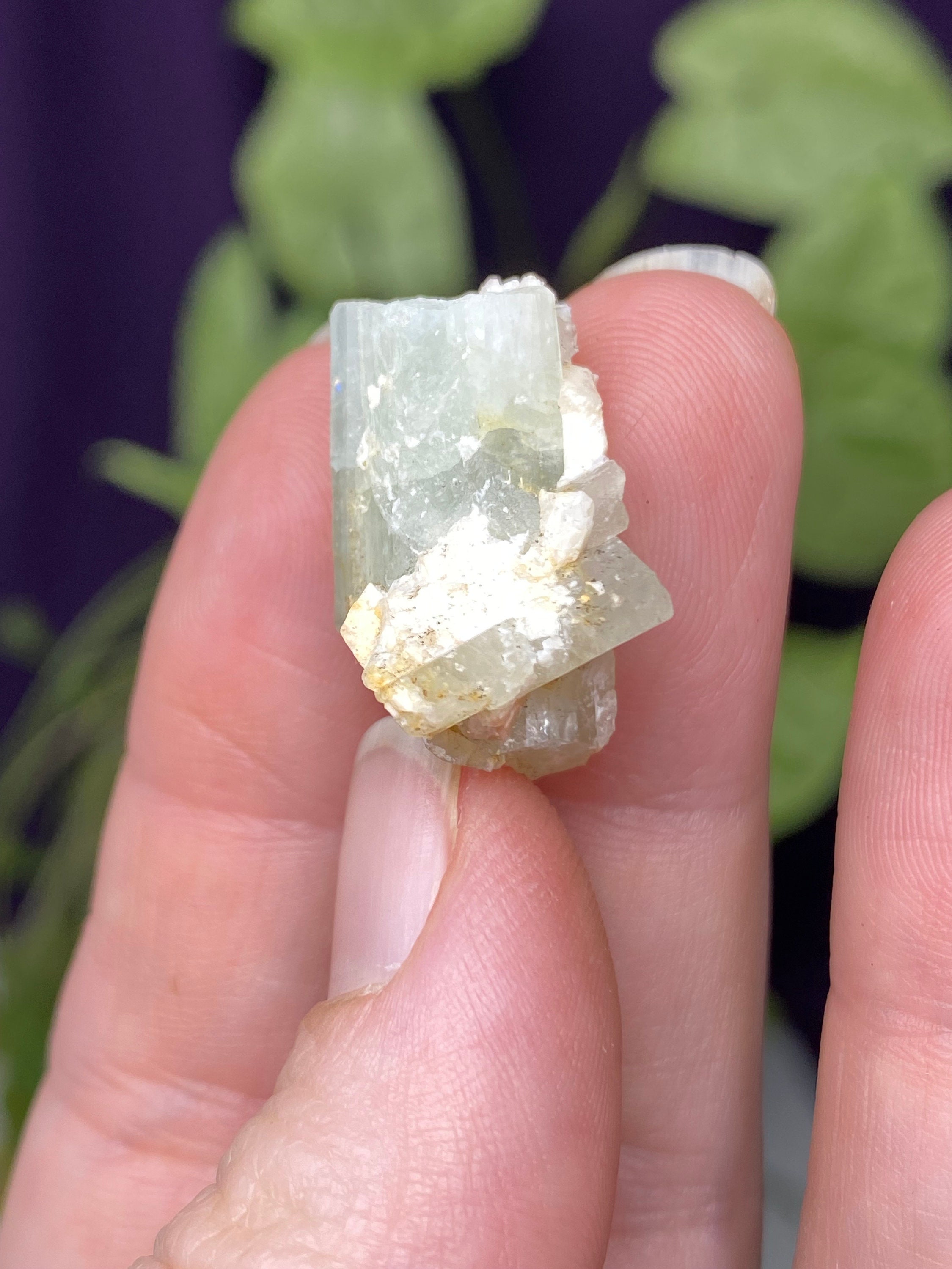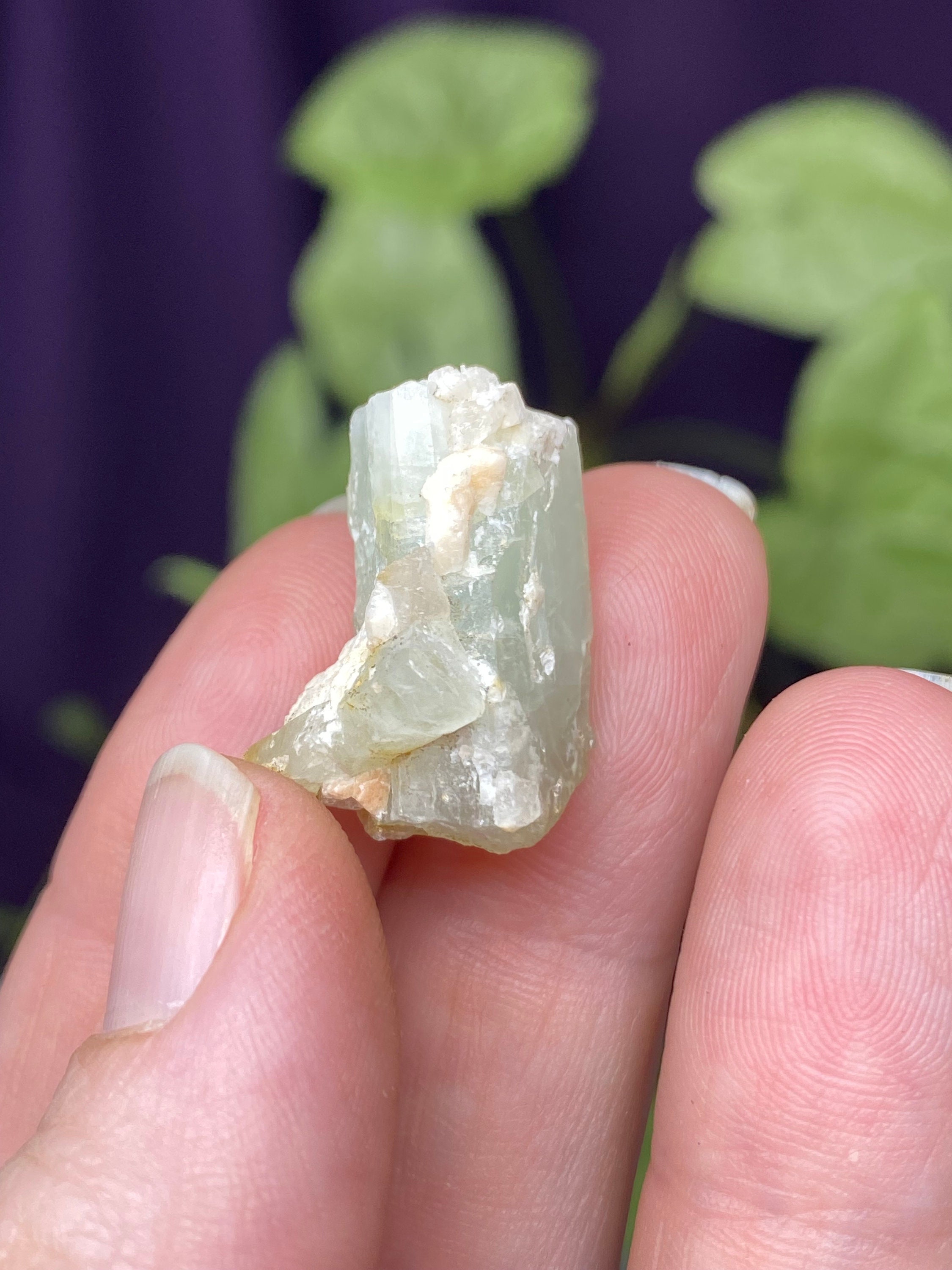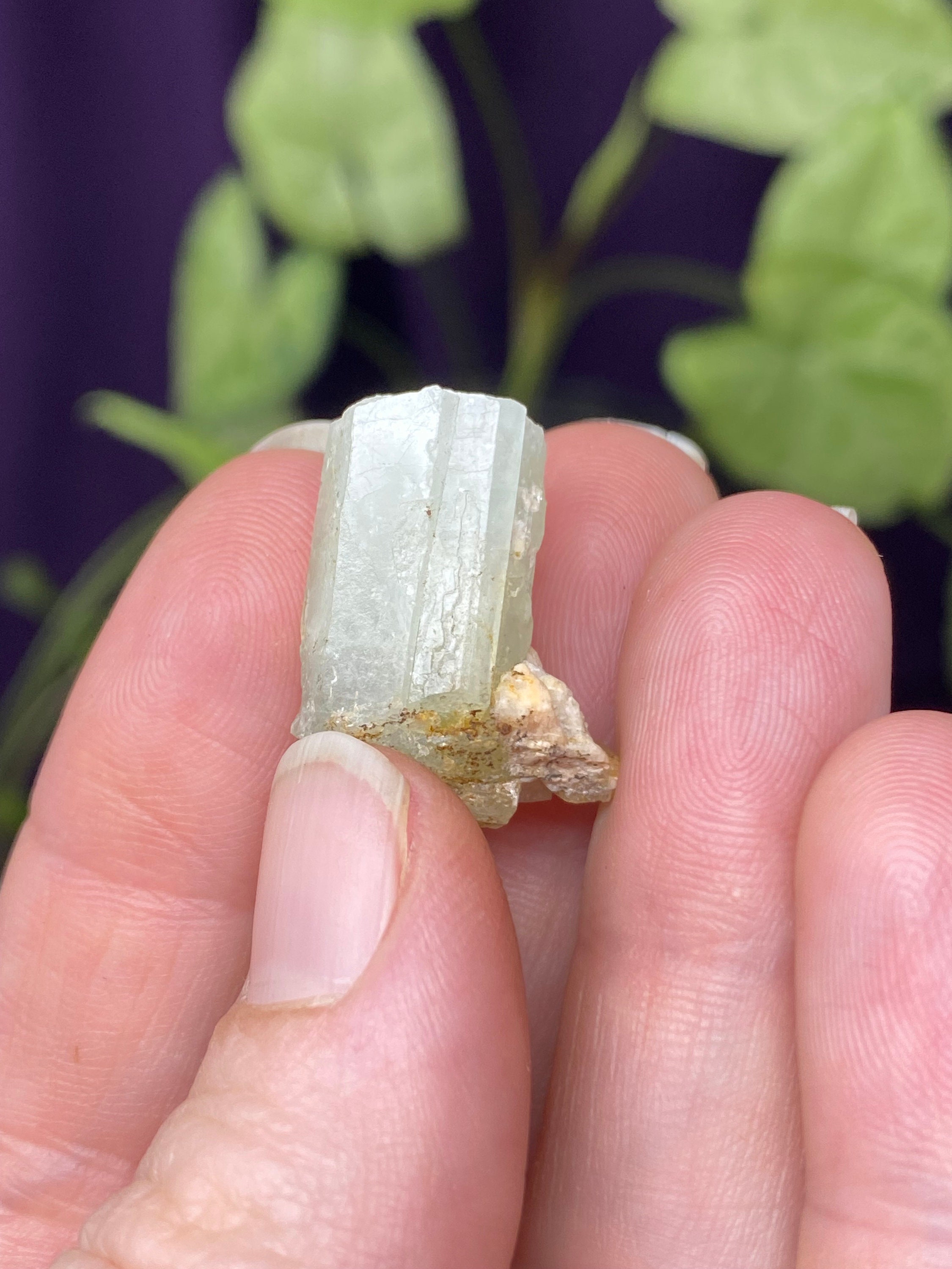 Sweet Beryl var Aquamarine Crystal from Carter's Ridge, Spruce Pine, NC. Now closed location. Old Find. This location is known for Beryl that will cats eye when cut. From the Luther Thomas Collection and Comes with a mineral card.