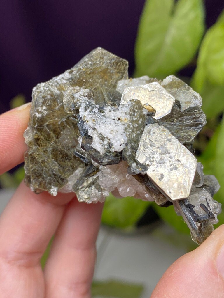 Lustrous Calcite and Chromium Mica from North American Emerald Mine, Hiddenite, NC. Collected by Terry Ledford. This piece has awesome aesthetics with luster.