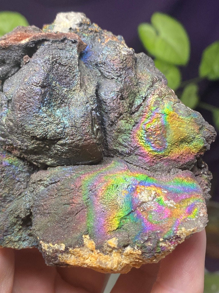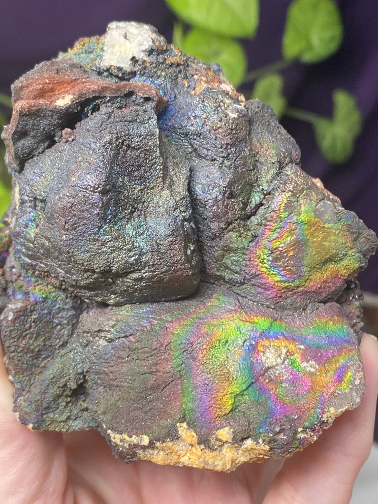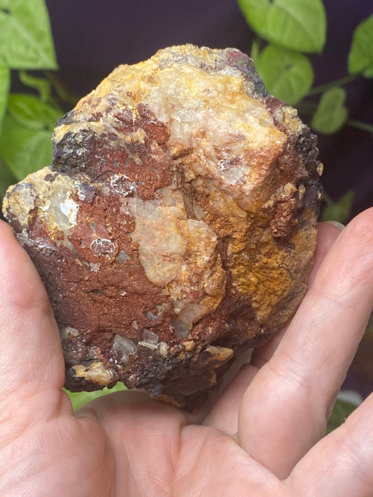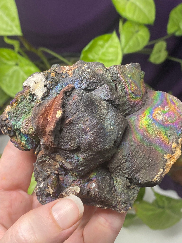 Quartz with colorful Iridescent Hematite from Graves Mountain Mine in GA. This piece has great color! Collected by the Late Terry Ledford.Make sure to check your piece to see if it changes color with your breath!!9 x 5cm