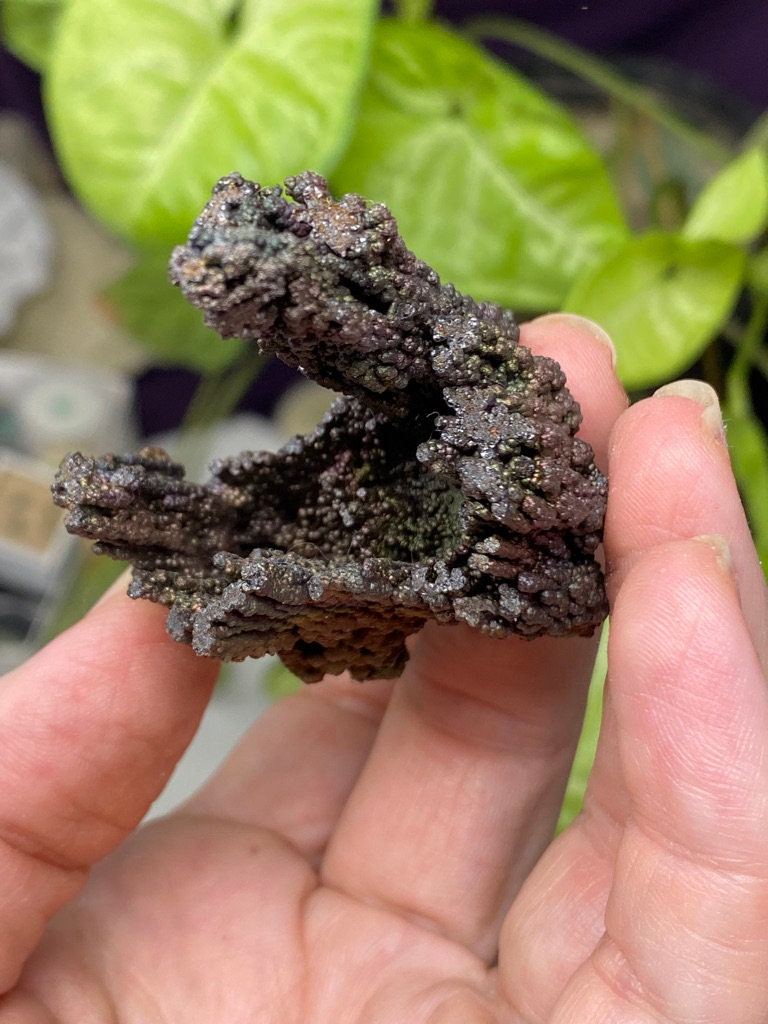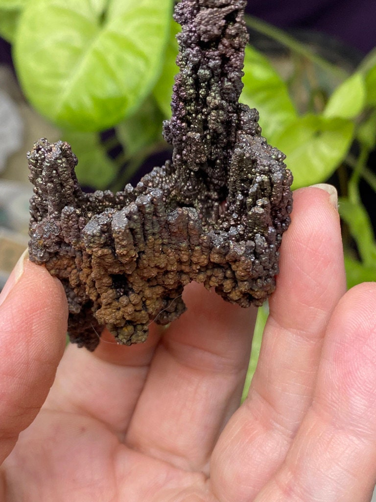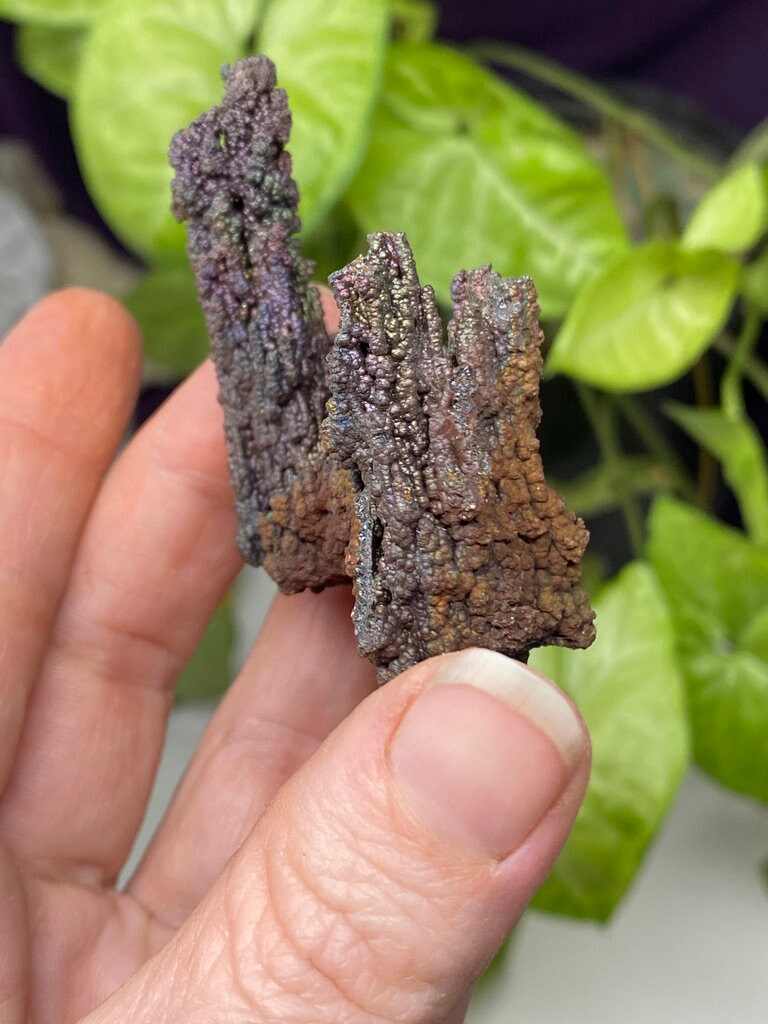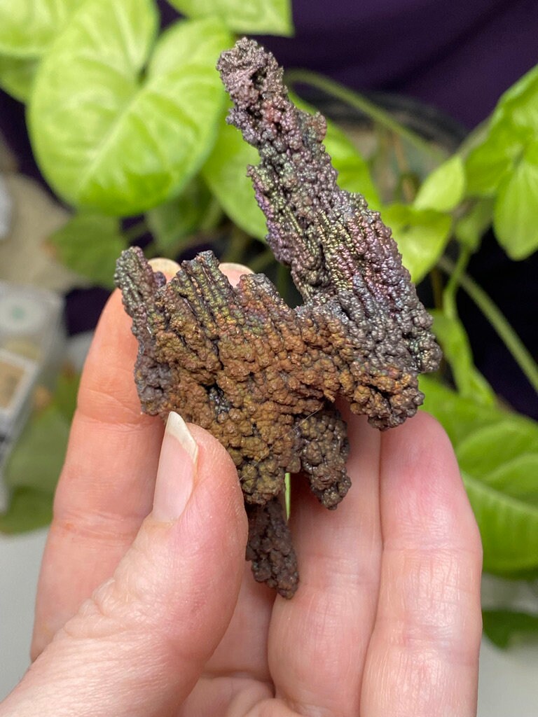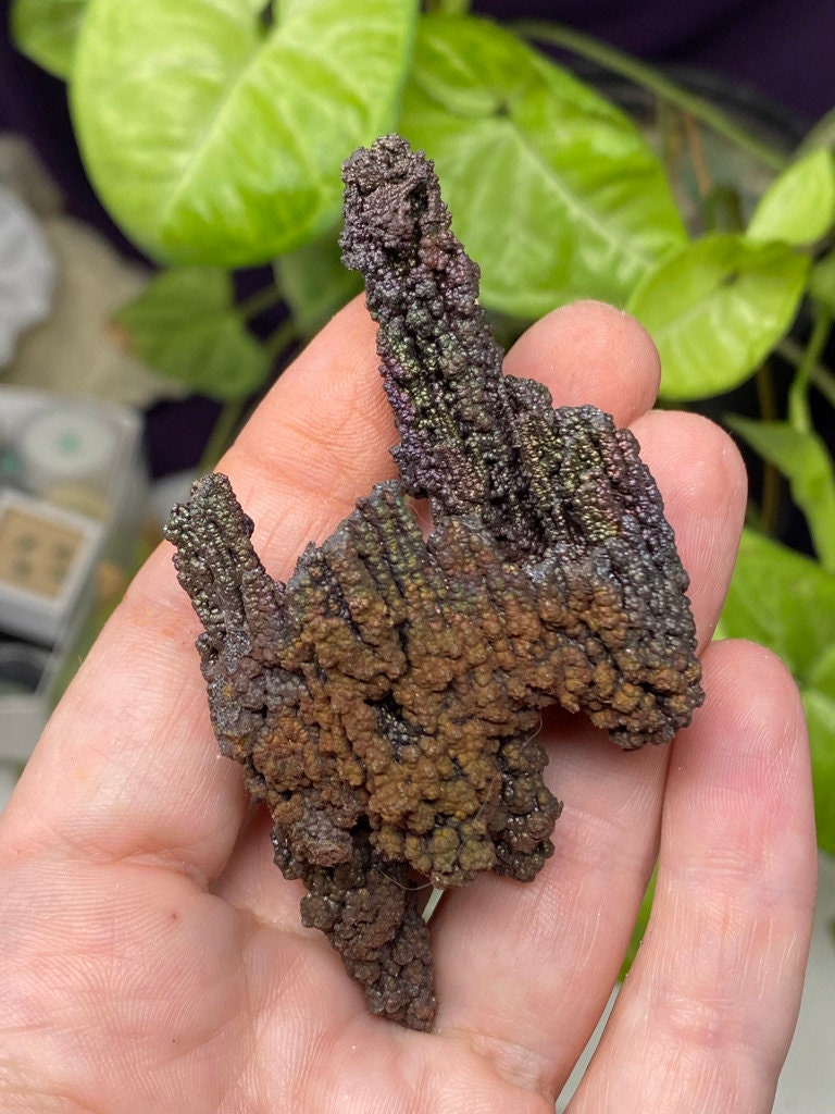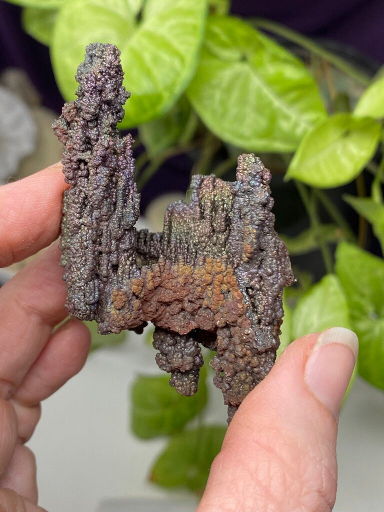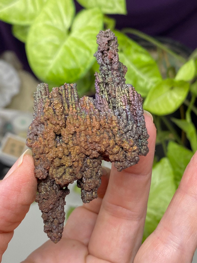Colorful Iridescent Hematite Stalactite from Graves Mountain GA. This piece has great color and size! Mined by the Late Terry Ledford. All minerals come with a mineral card.