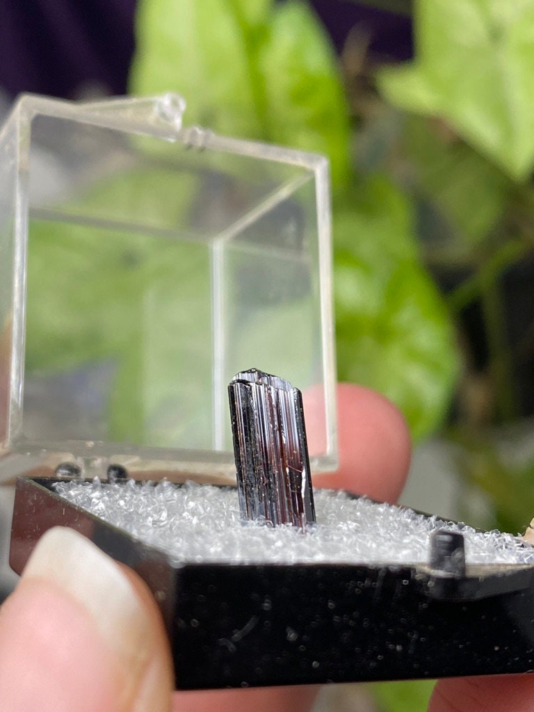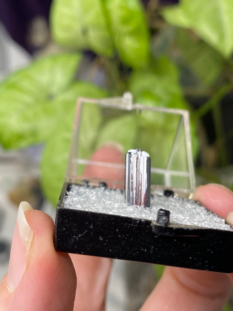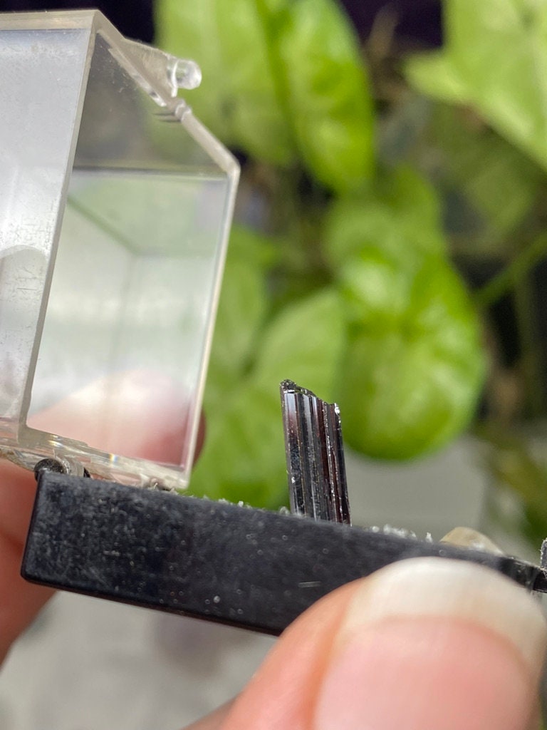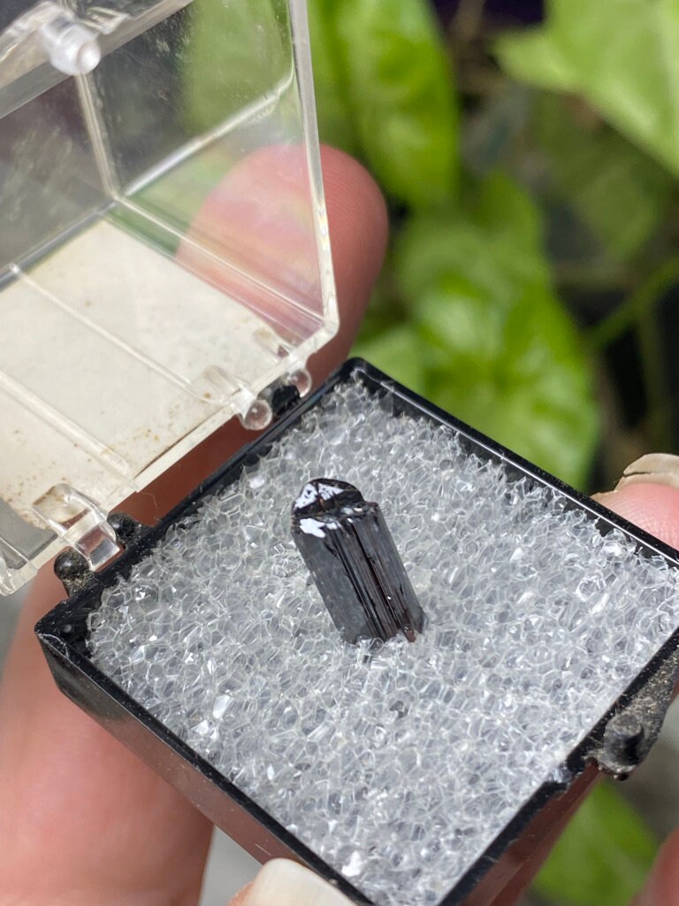 Chunky Red Rutile Thumbnail with great termination, luster, and color from Adams Farm, Hiddenite NC. Collected by Terry Ledford. Found in 2007.