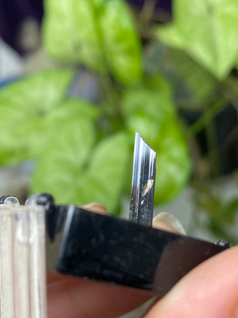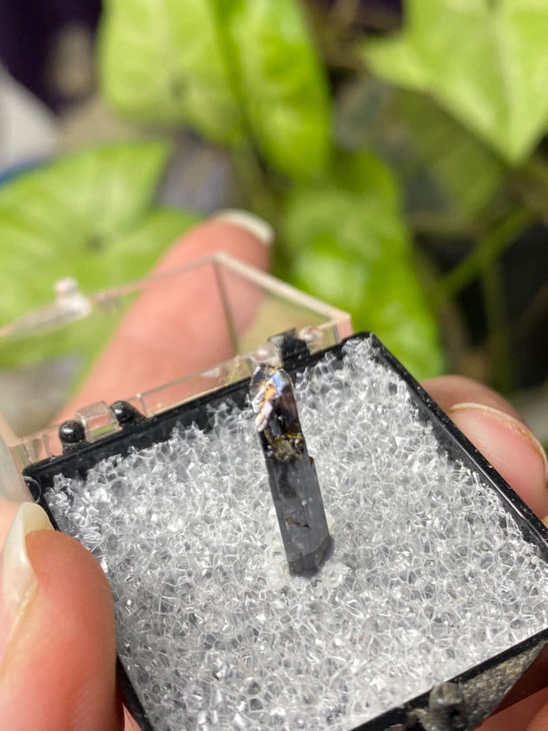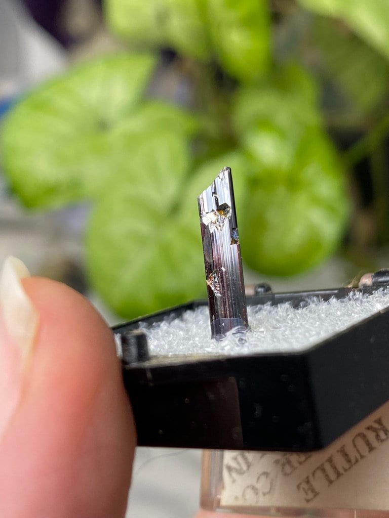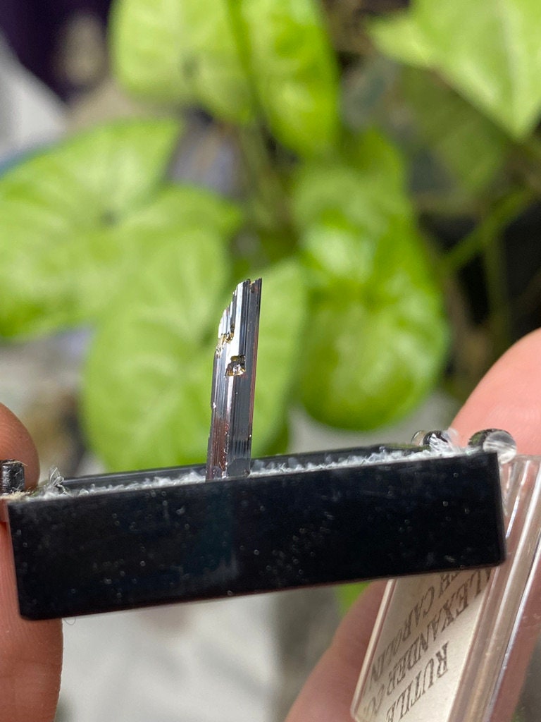 Chunky Red Rutile Thumbnail with great termination, luster, and color from Adams Farm, Hiddenite NC. Collected by Terry Ledford. Found in 2007.All minerals come with a collection card.