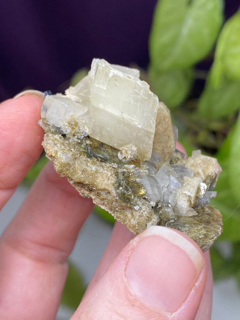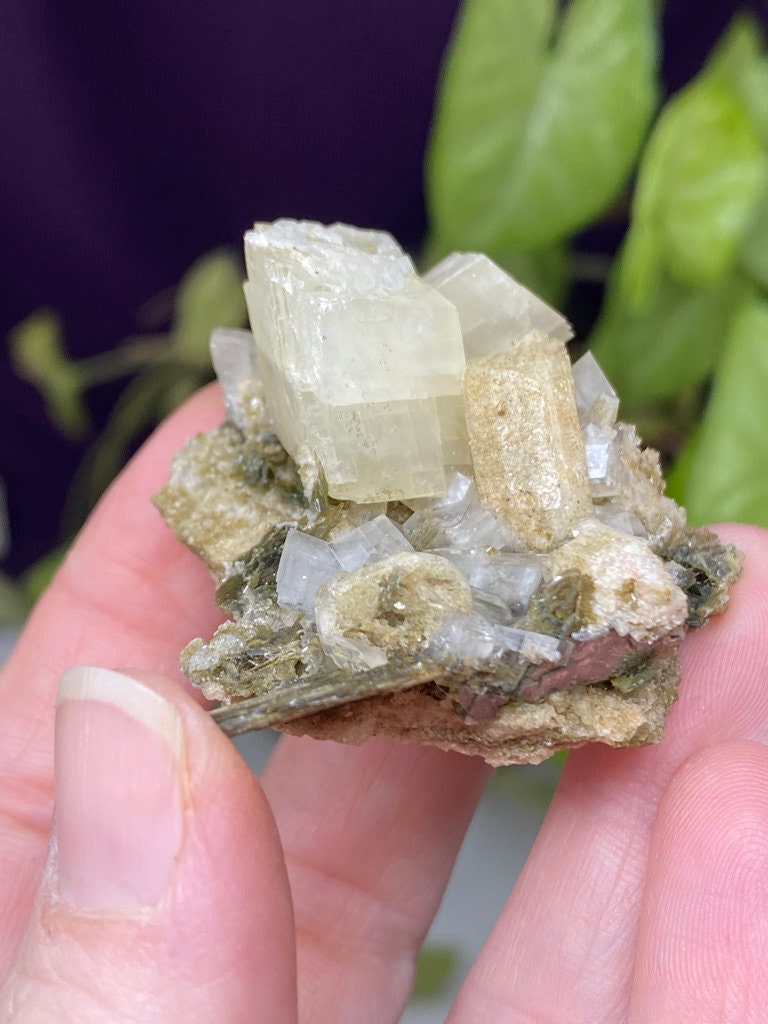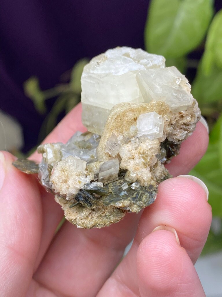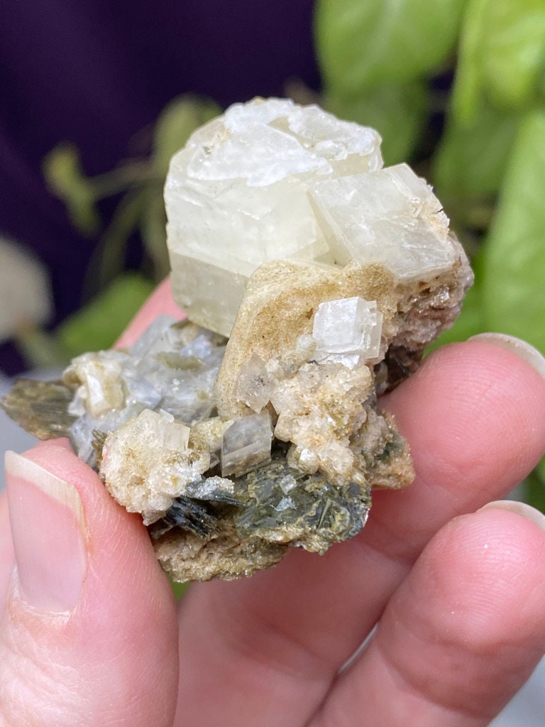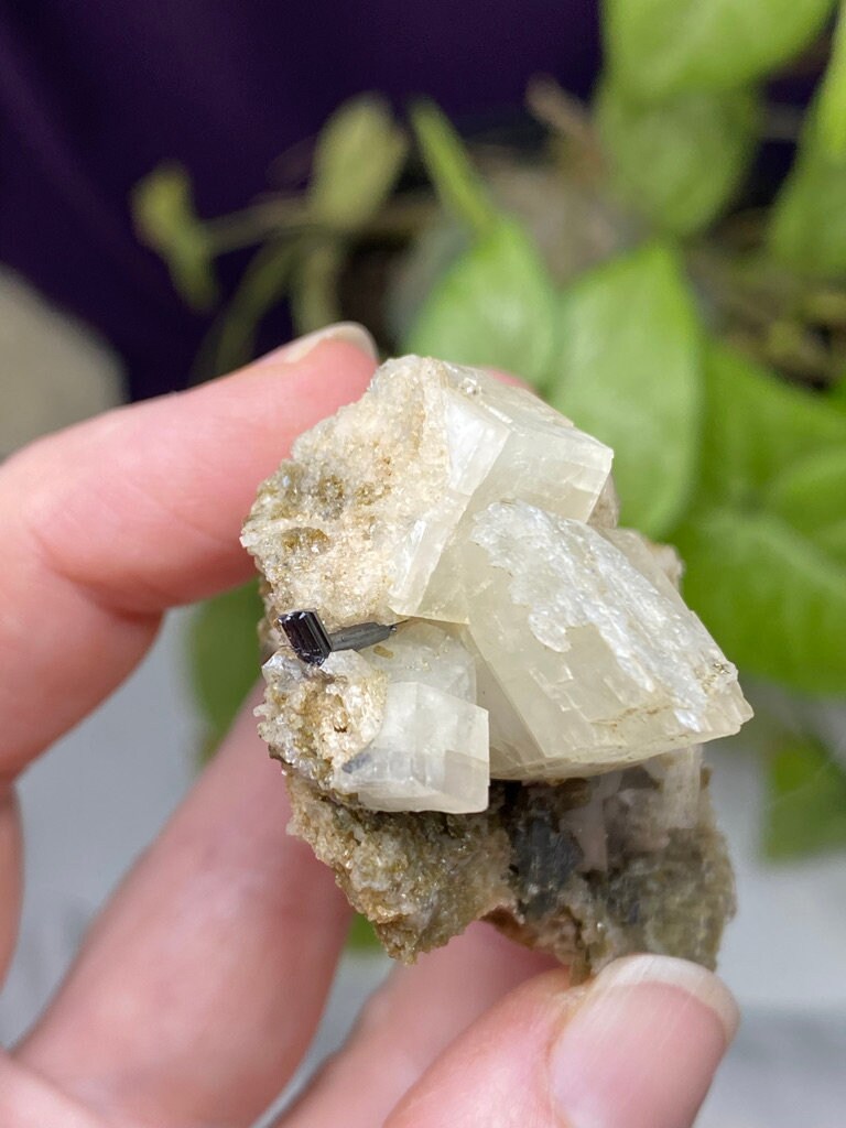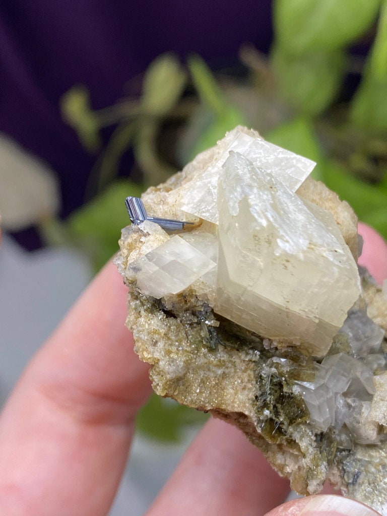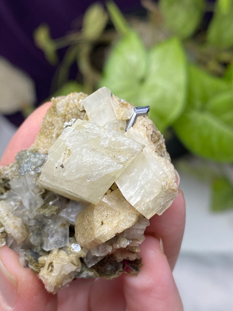 Lustrous Calcite and Feldspar with Rutile and Mica from North American Emerald Mine, Hiddenite, NC. Collected by Terry Ledford. This piece has awesome aesthetics with luster.4.5 x 4.5cm