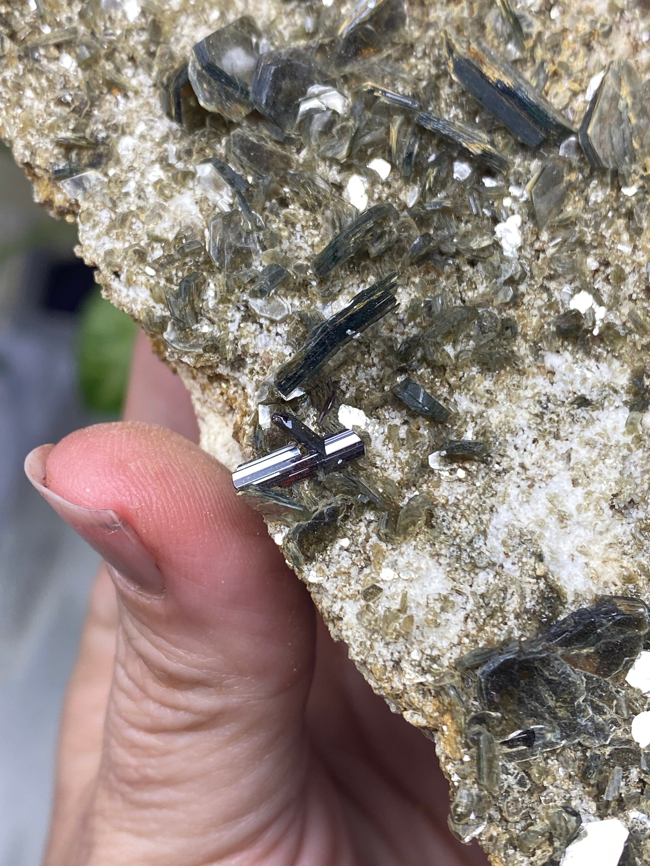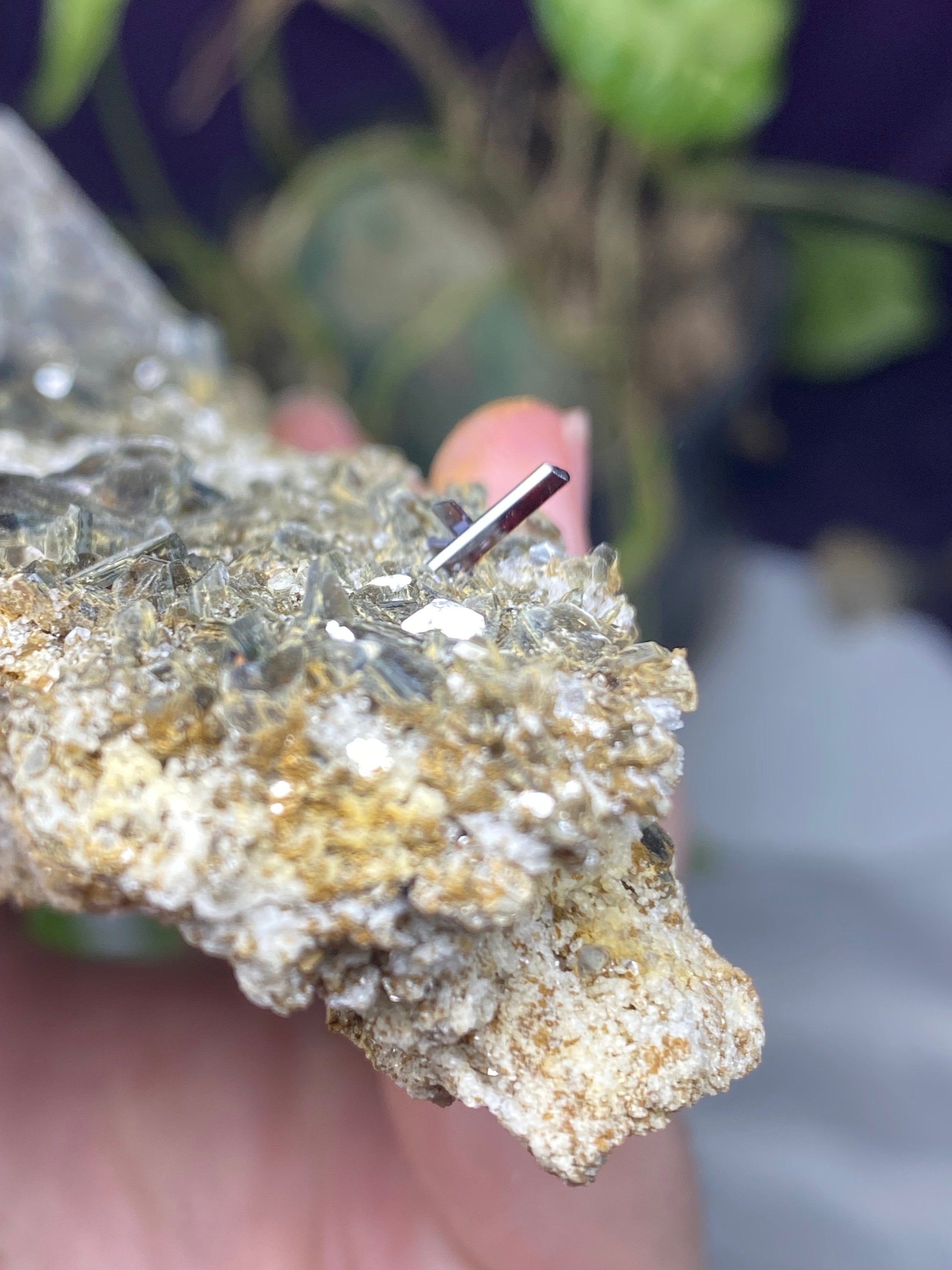 Green Mica with Red Rutile from North American Emerald Mine, Hiddenite, NC. Collected by Terry Ledford. This piece has awesome contrast and aesthetics.All minerals come with collection card.