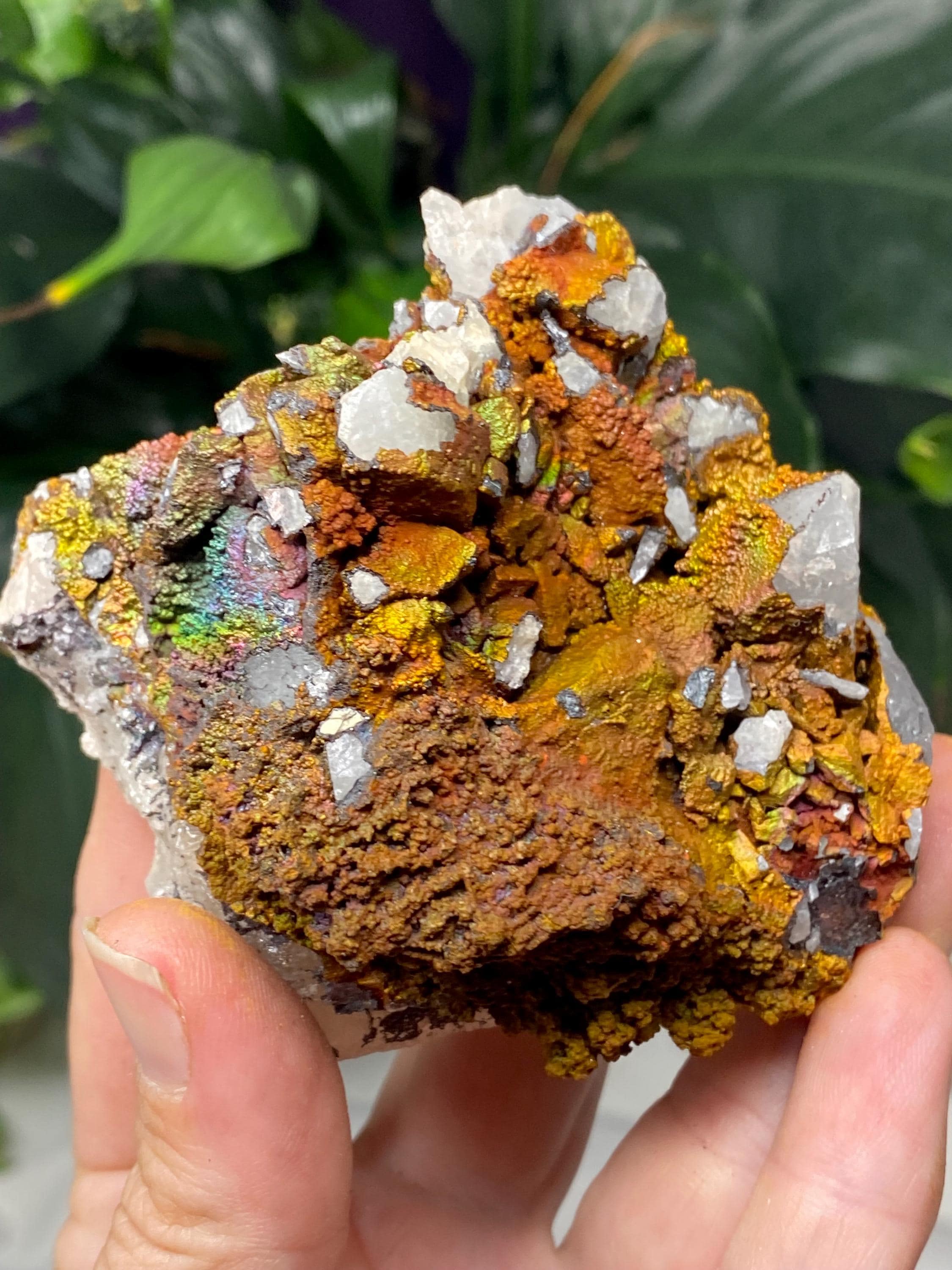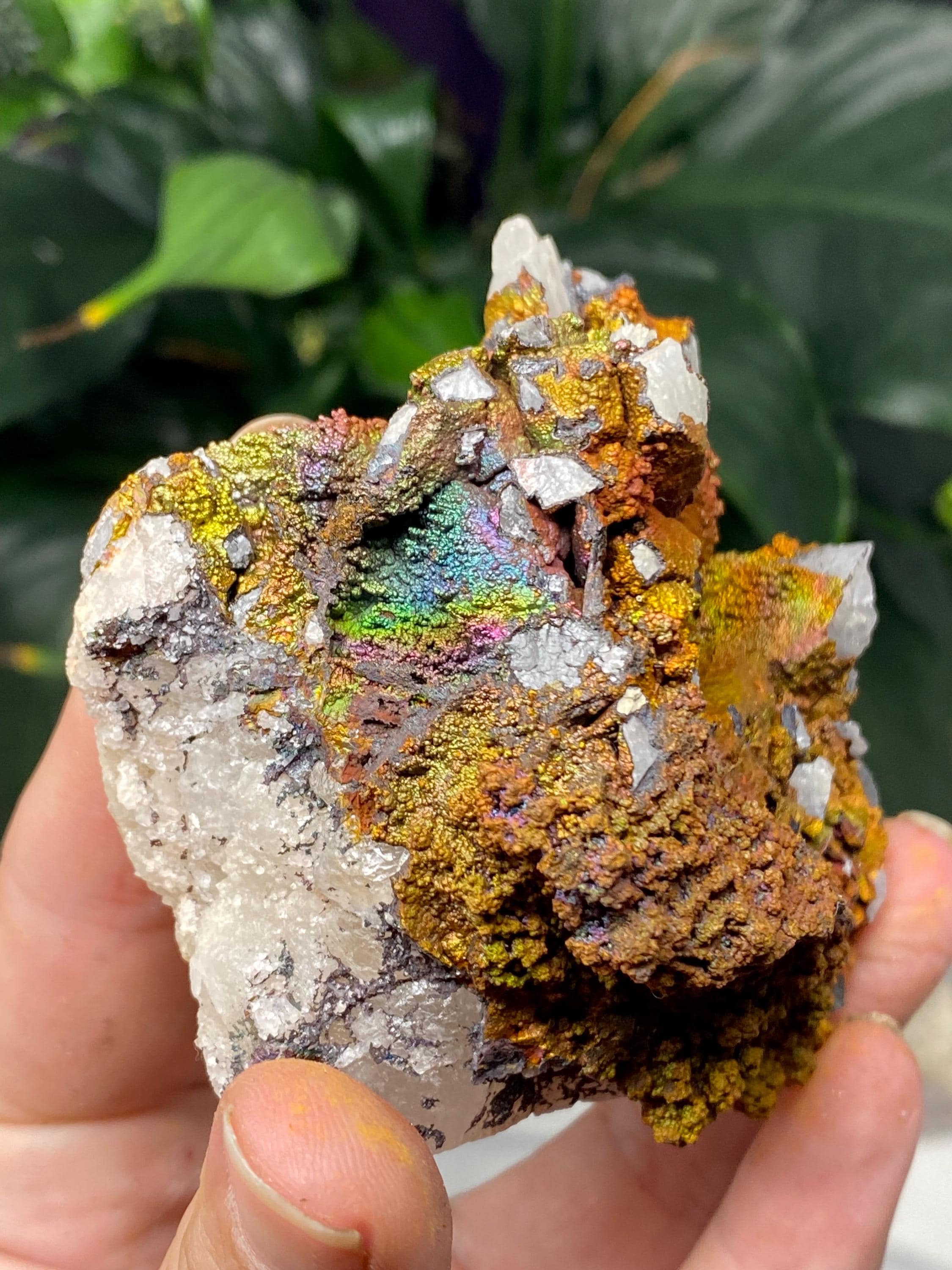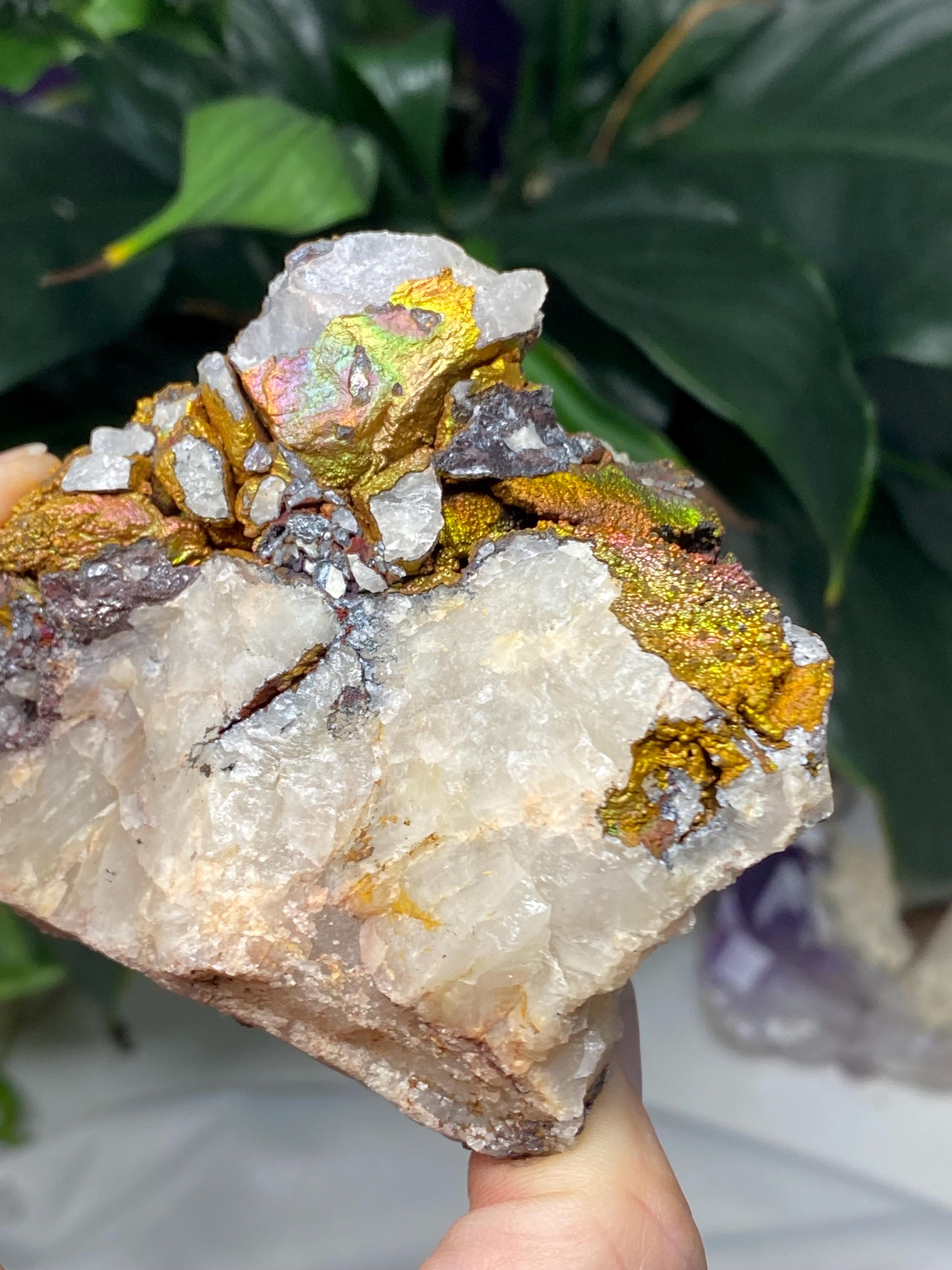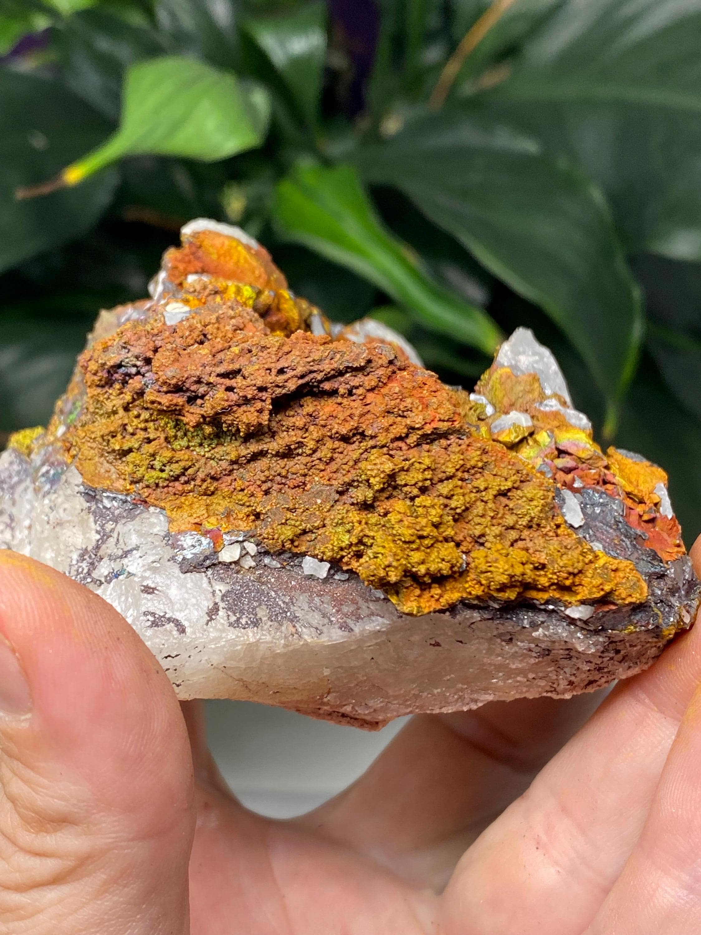 Colorful Quartz with Golden Iridescent Hematite from Graves Mountain GA. This piece has great color and contrast! Collected by Terry Ledford around 2000.All minerals come with a collection card.