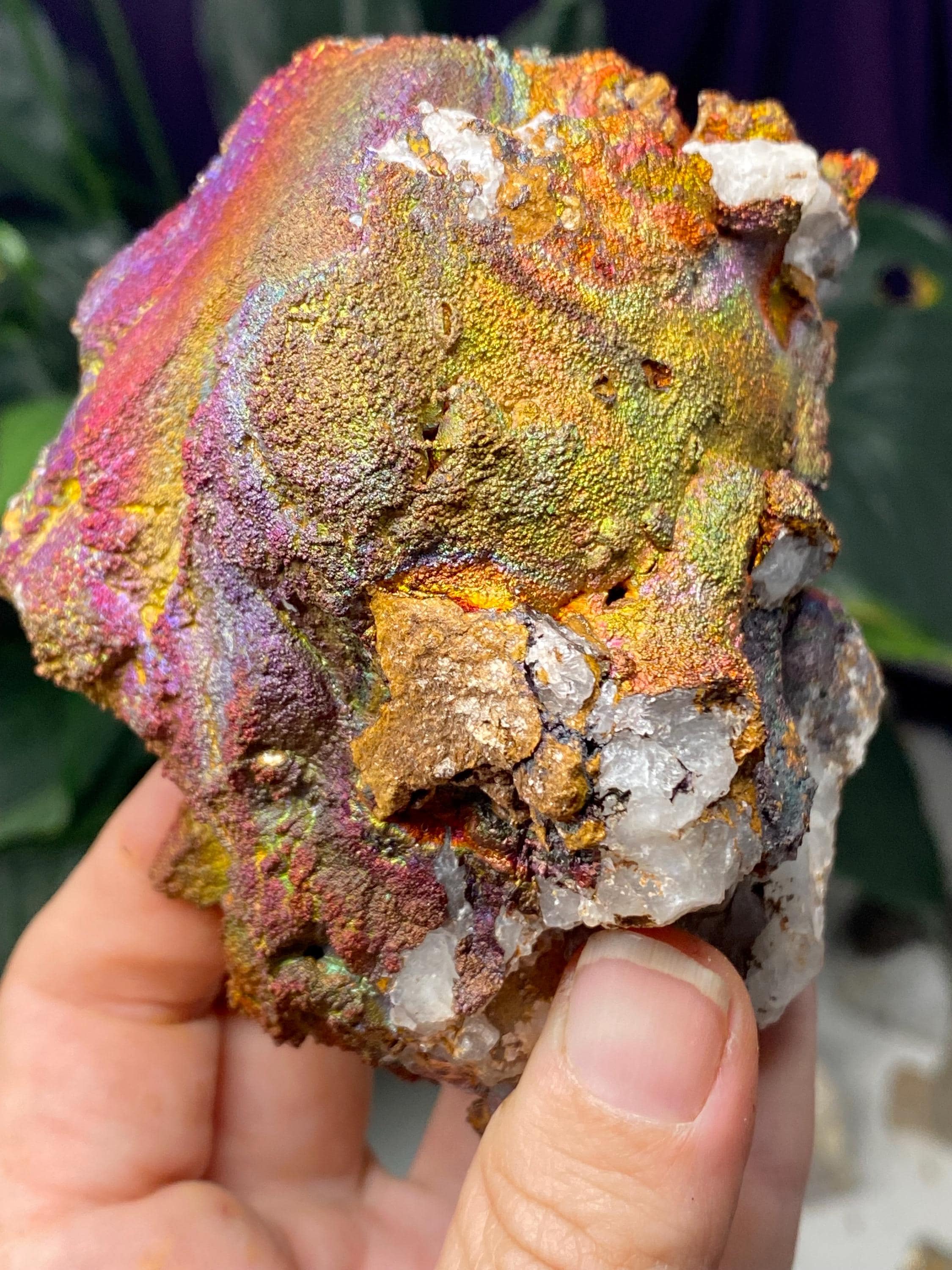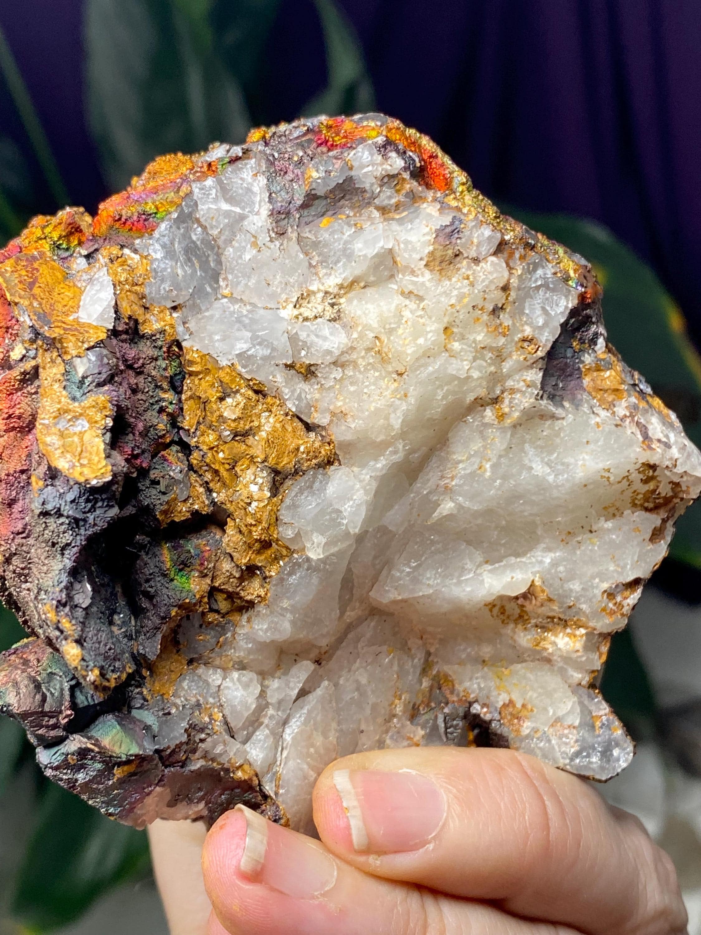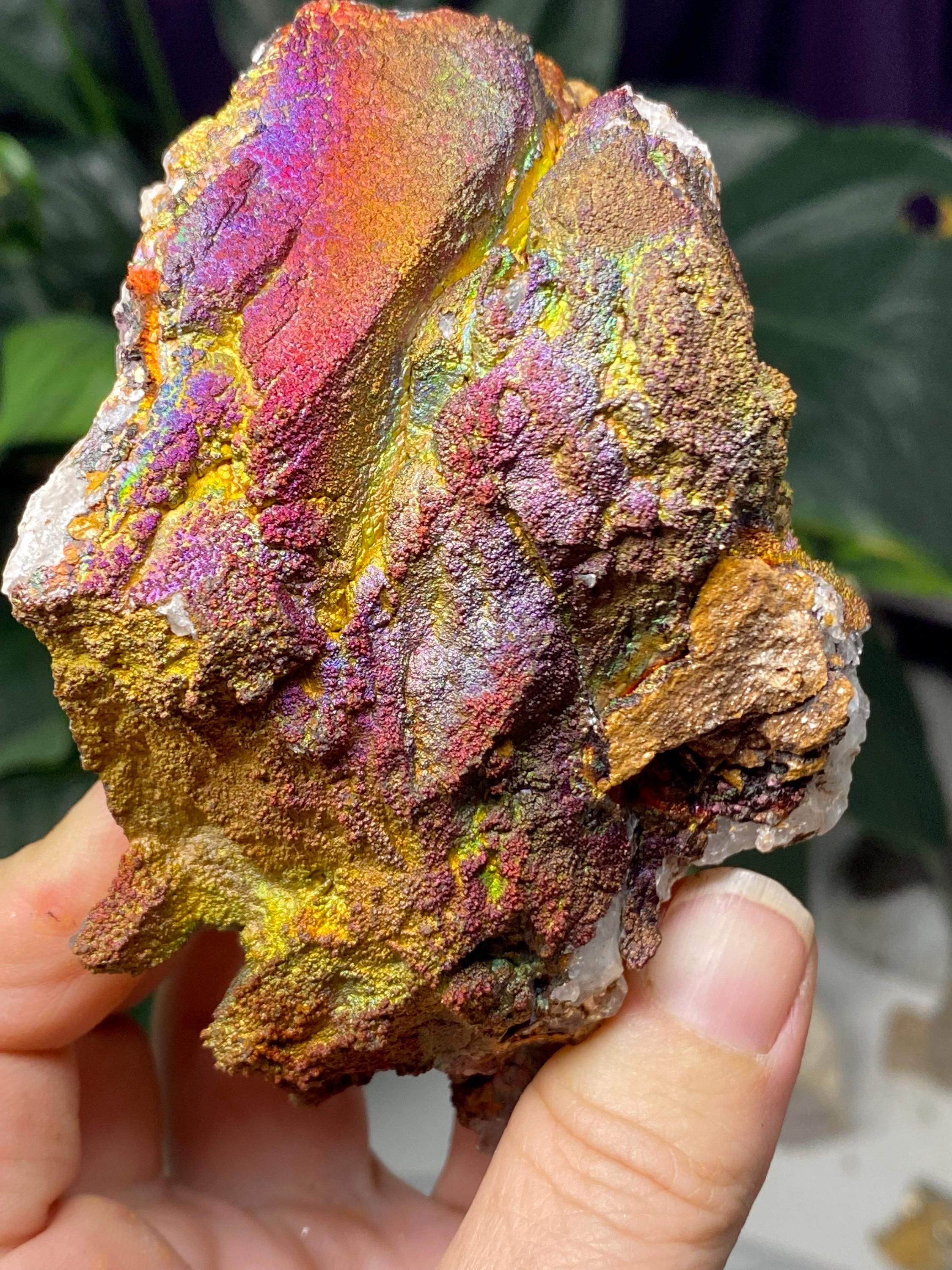 Colorful Quartz with Iridescent Hematite from Graves Mountain GA. This piece has great pink, orange, and yellow colors! Collected by Terry Ledford around 2000.9.5 x 8cmAll minerals come with a collection card.