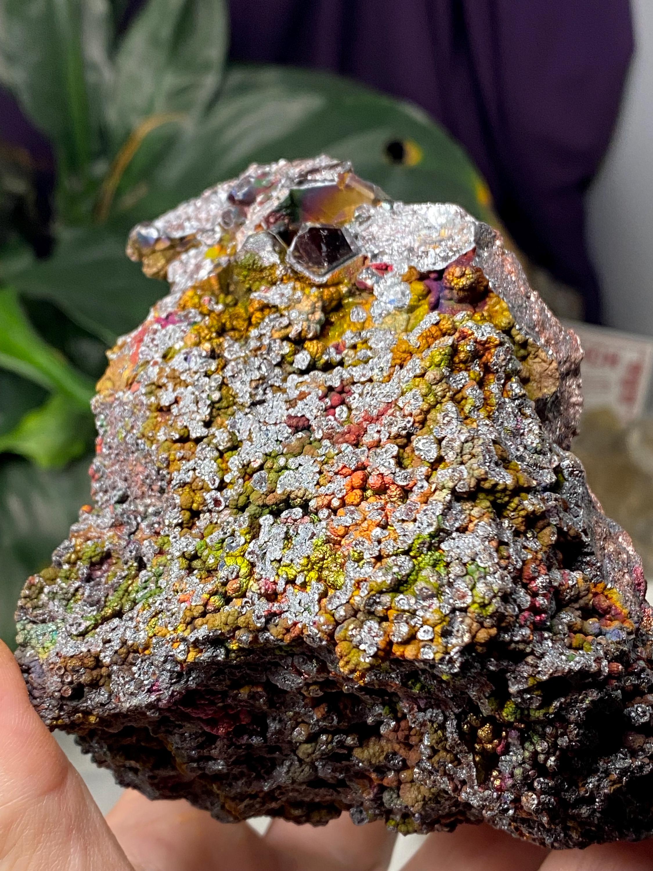Colorful Rainbow Iridescent Hematite with Rutile from Graves Mountain GA. This piece has great color and contrast! Collected by Terry Ledford around 2000.9 x 7cmAll minerals come with a collection card.
