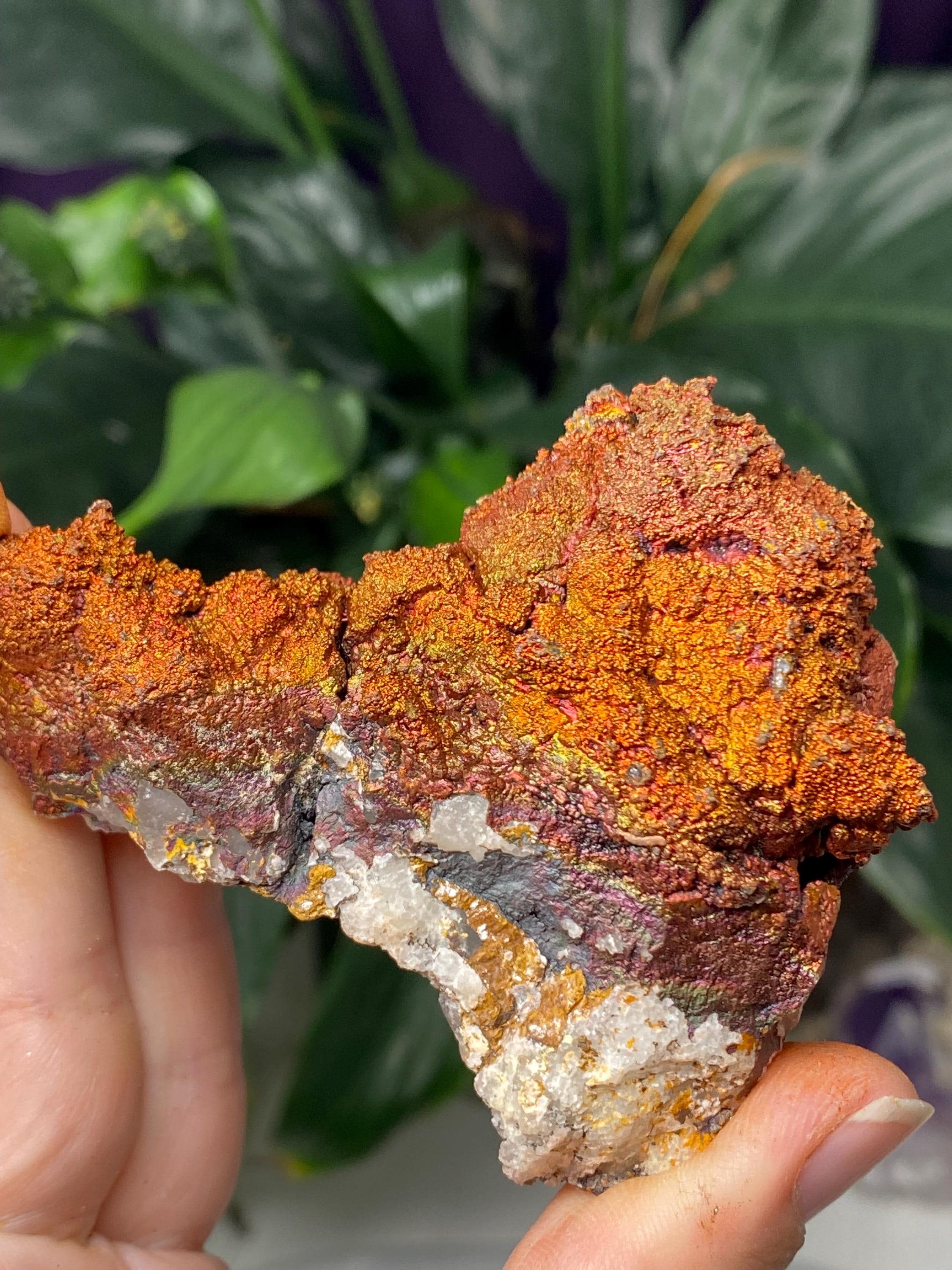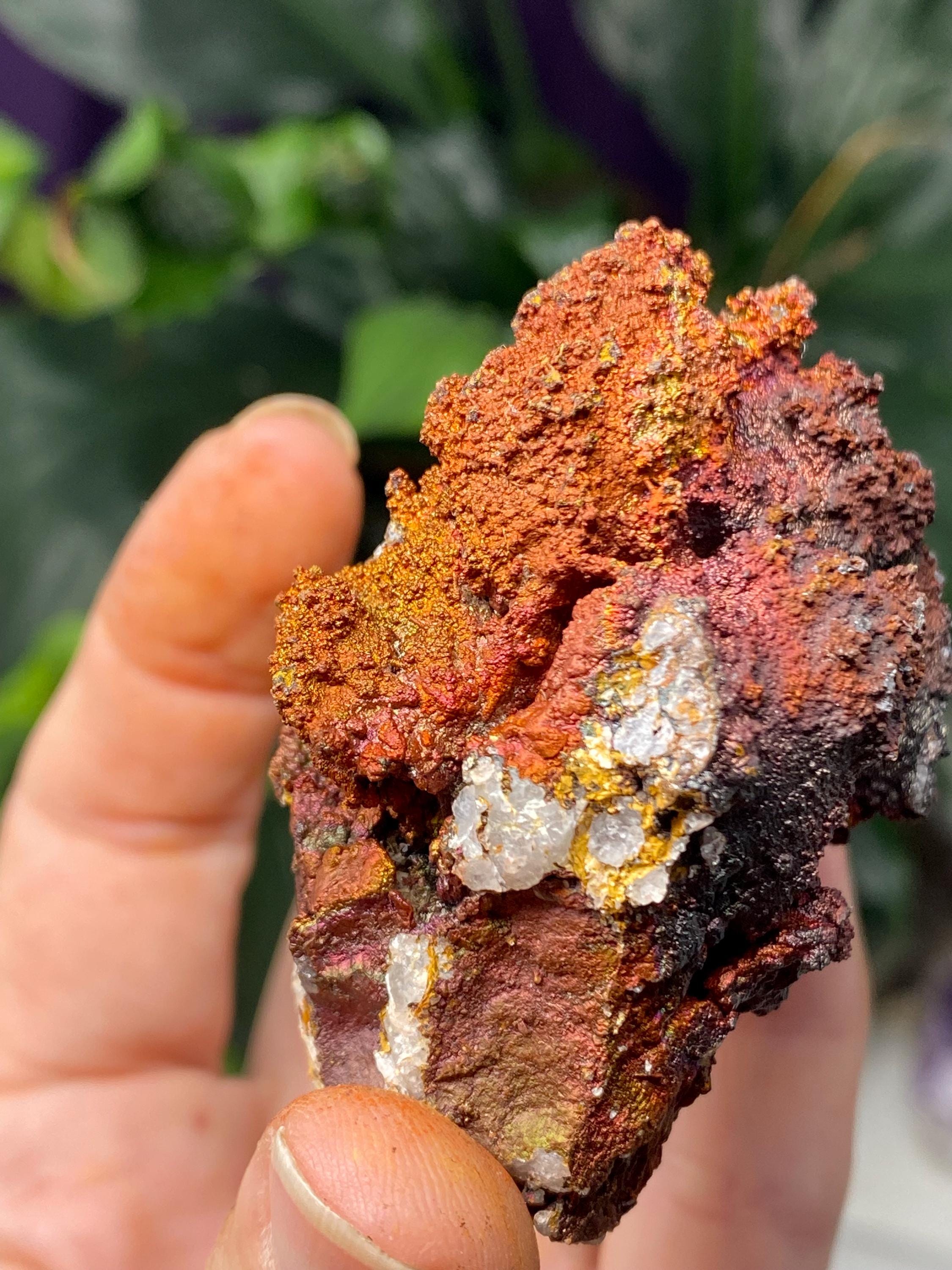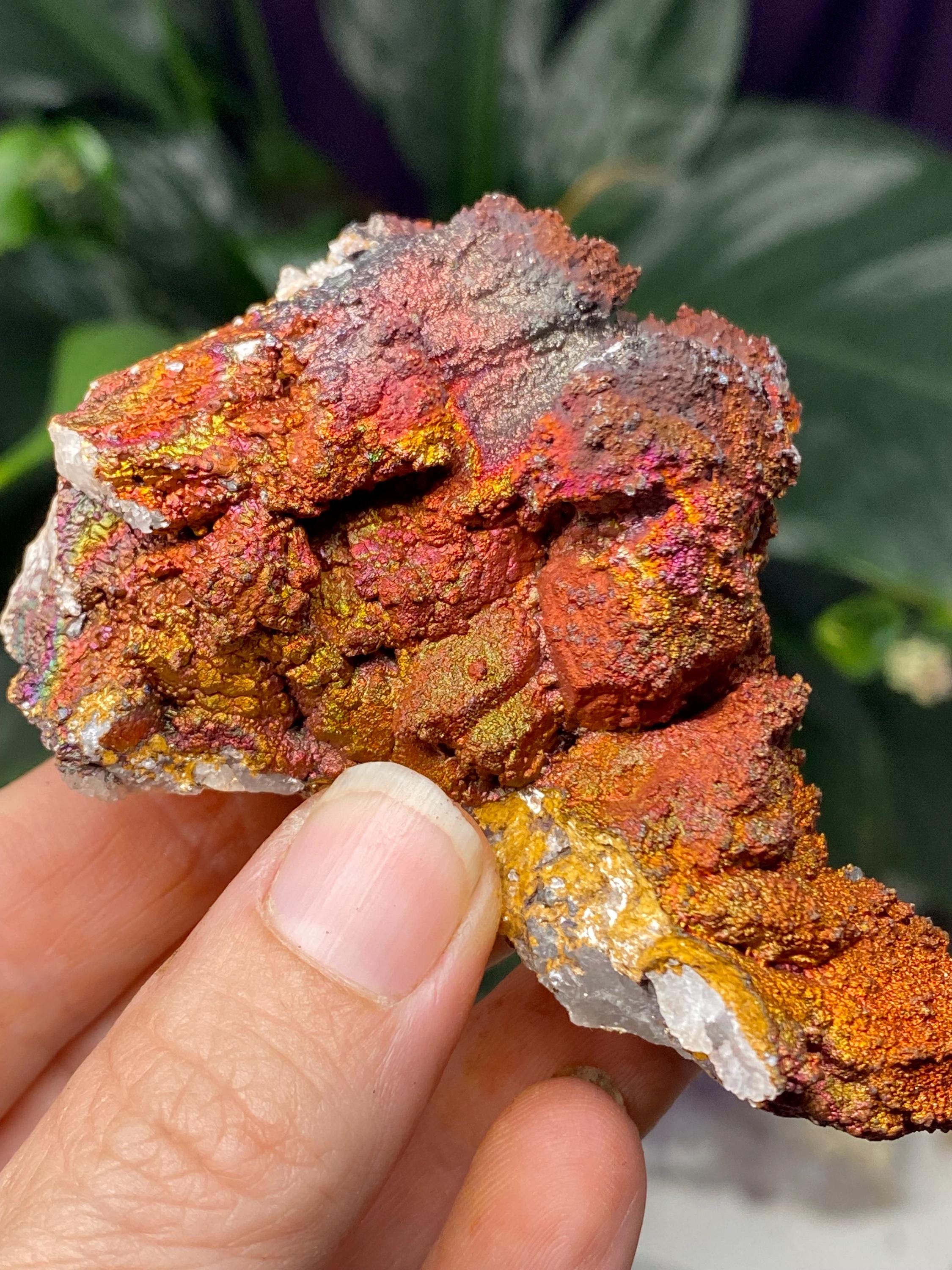 Colorful Quartz with Iridescent Hematite from Graves Mountain GA. This piece has great pink, orange, and red colors! Collected by Terry Ledford around 2000.7.5 x 6.25cmAll minerals to come with a collection card.