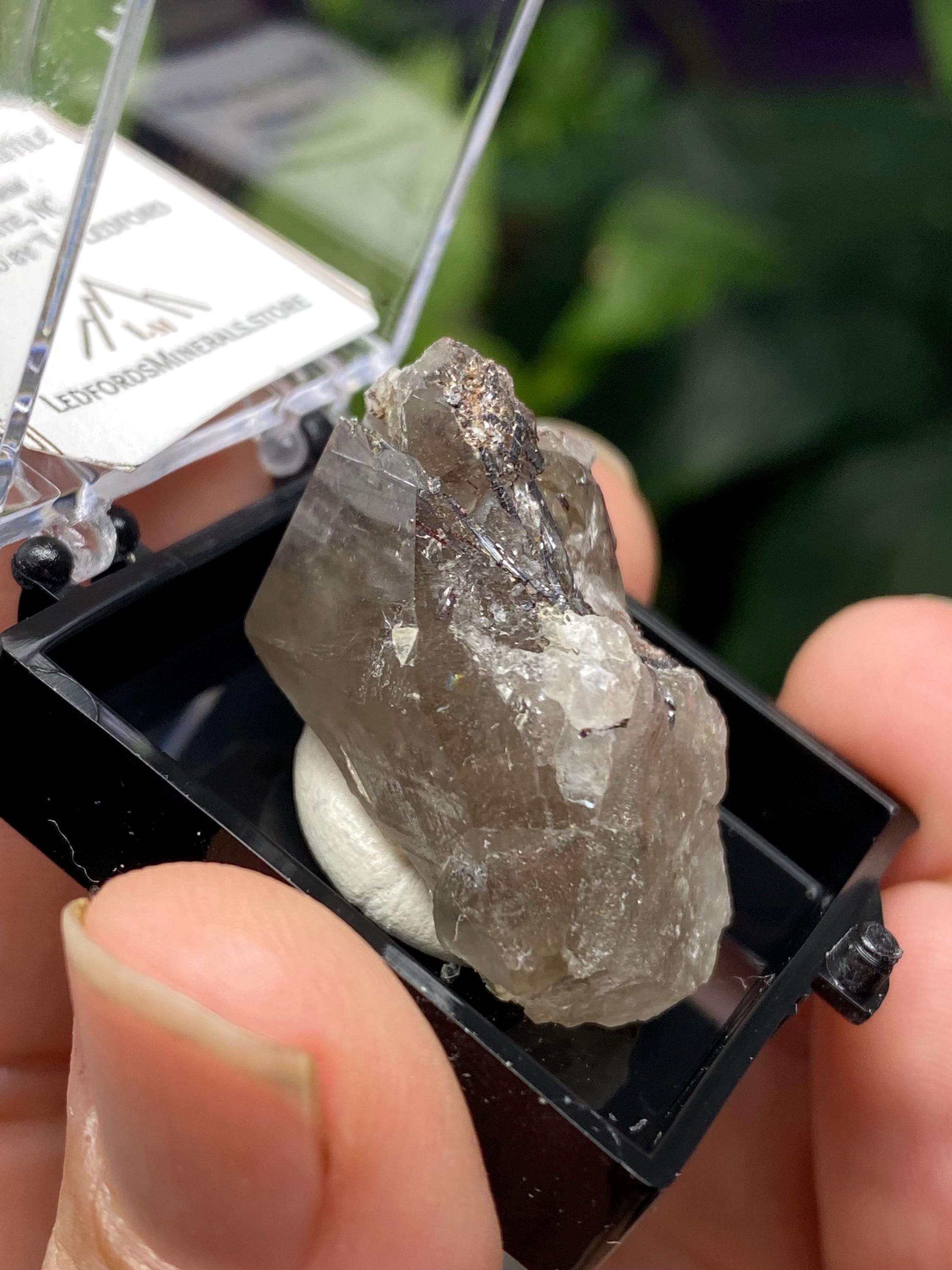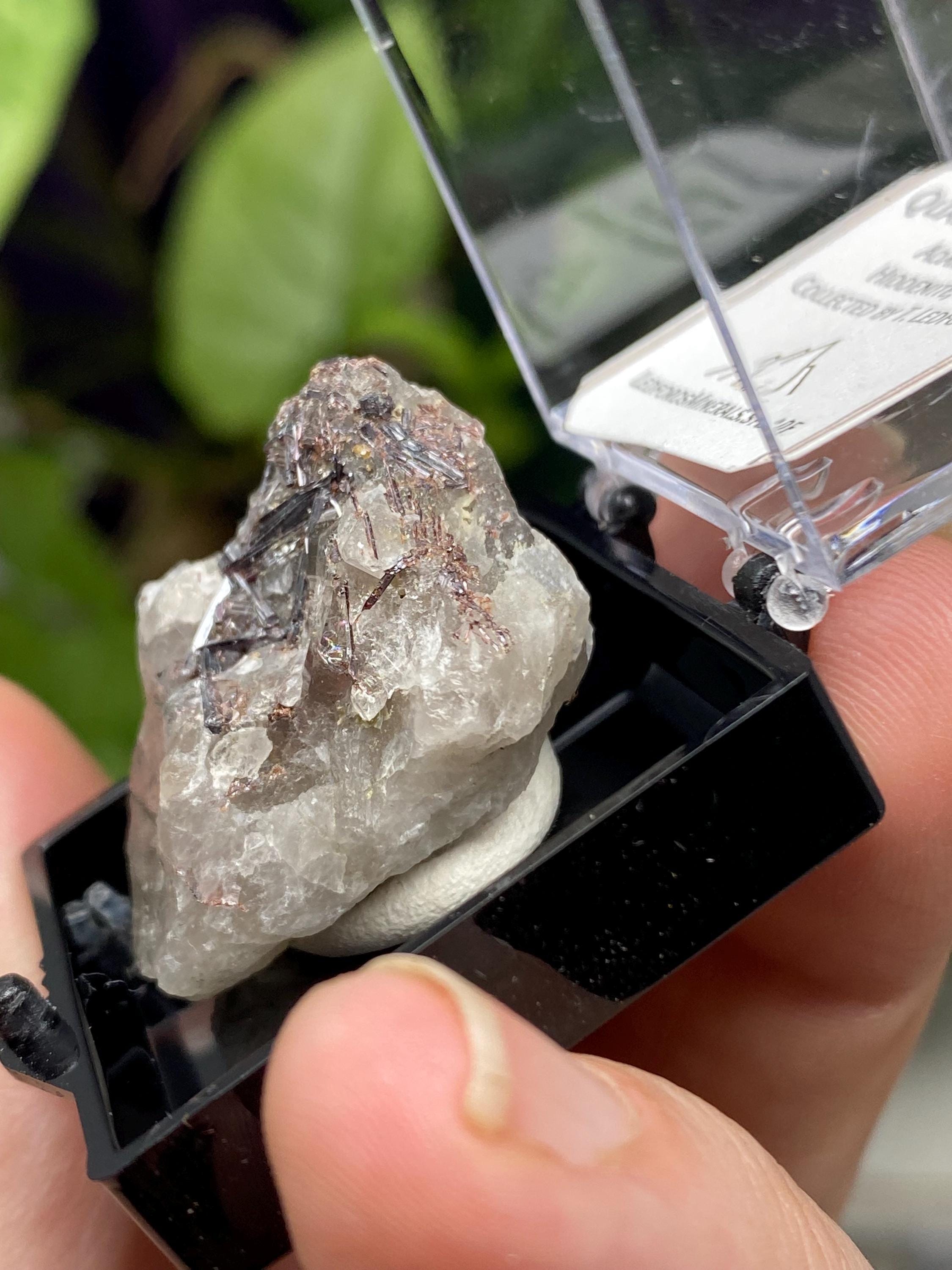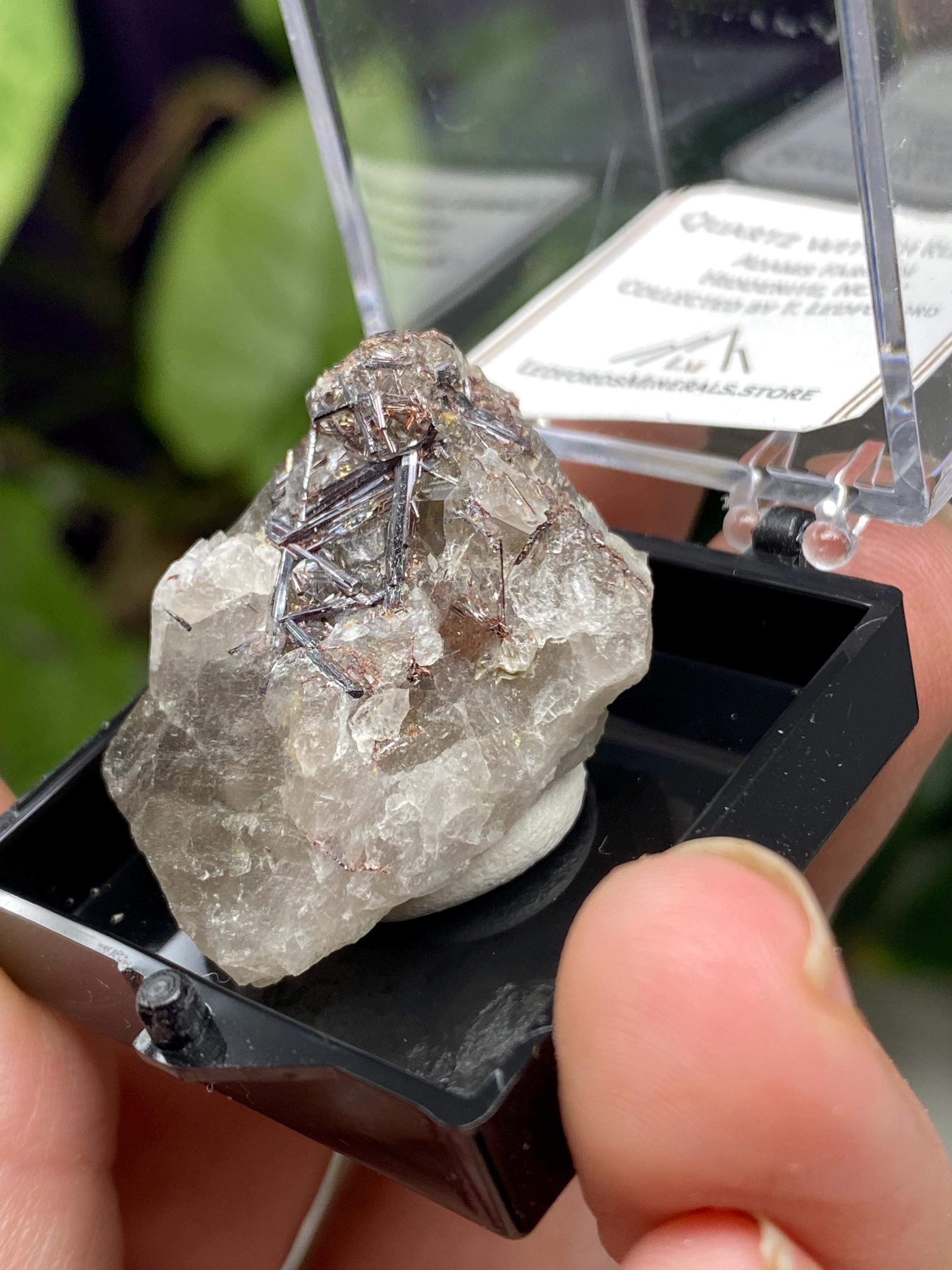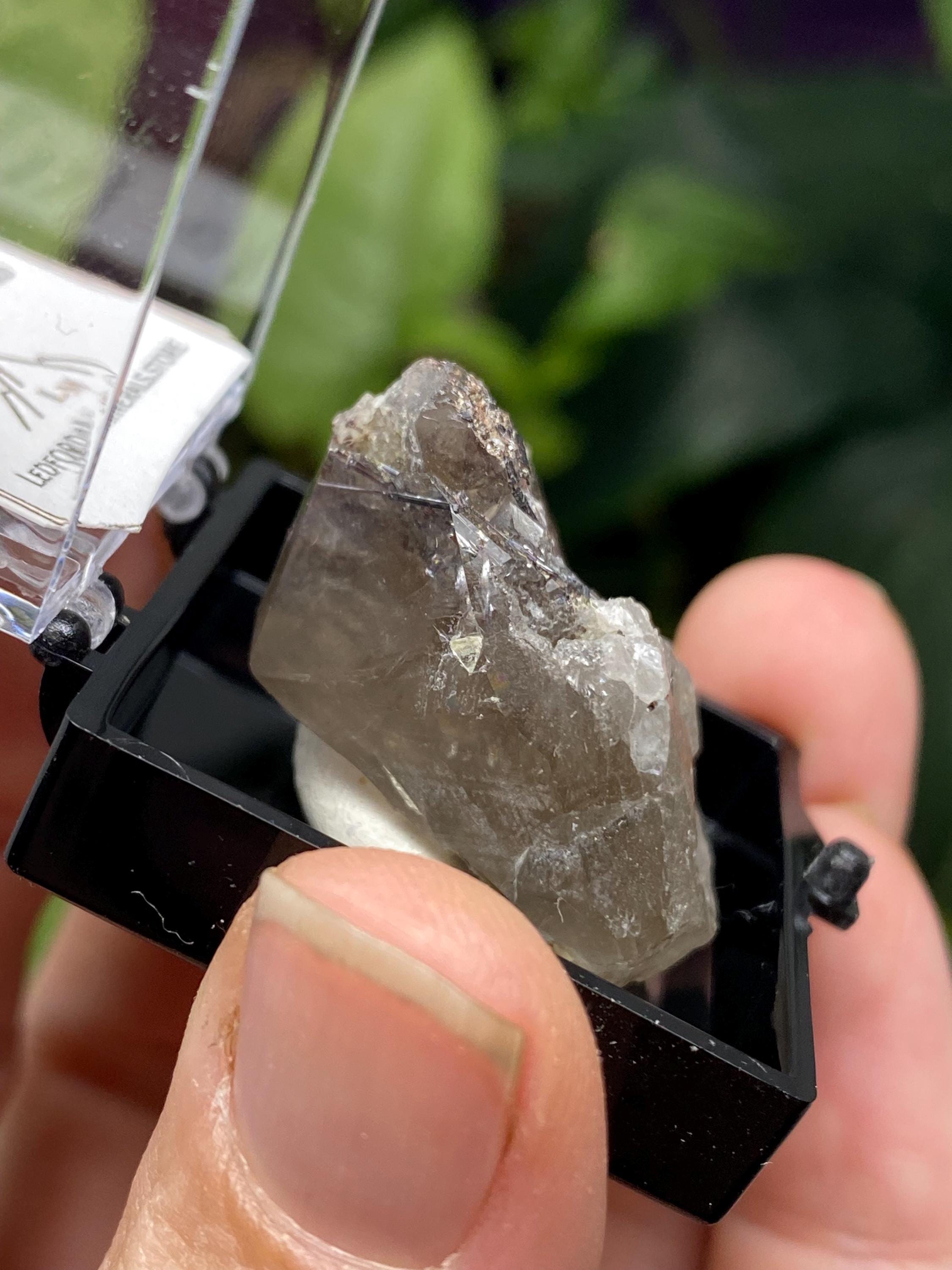 Quartz with Rutile Thumbnail from the North American Emerald Mine in Hiddenite NC. Collected by Terry Ledford and comes with a mineral card. Comes in a 1” perky box. Thumbnail size