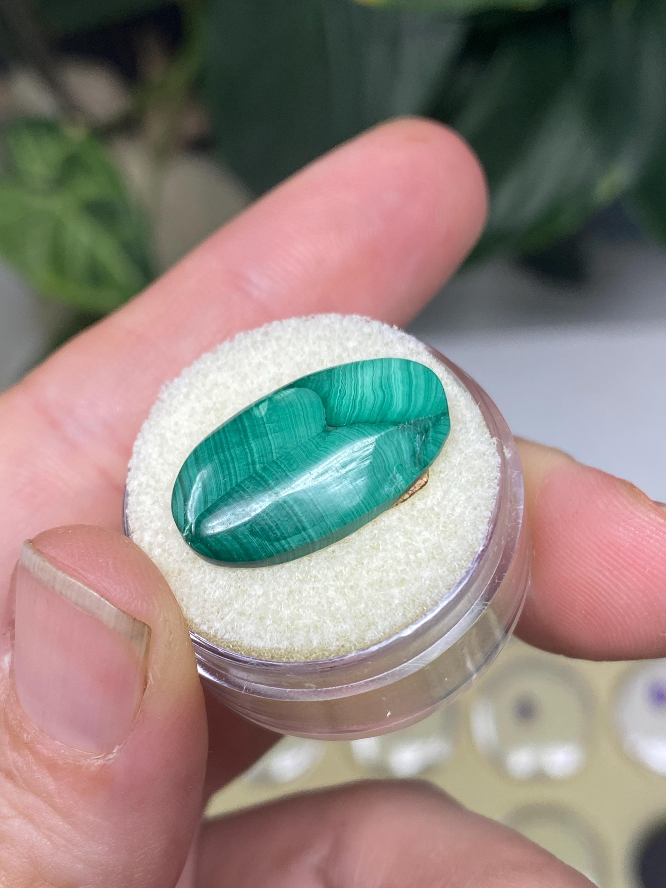 Beautiful Oval Malchite ready to be set in jewelry. This piece has beautiful fiery colors.11.5ct