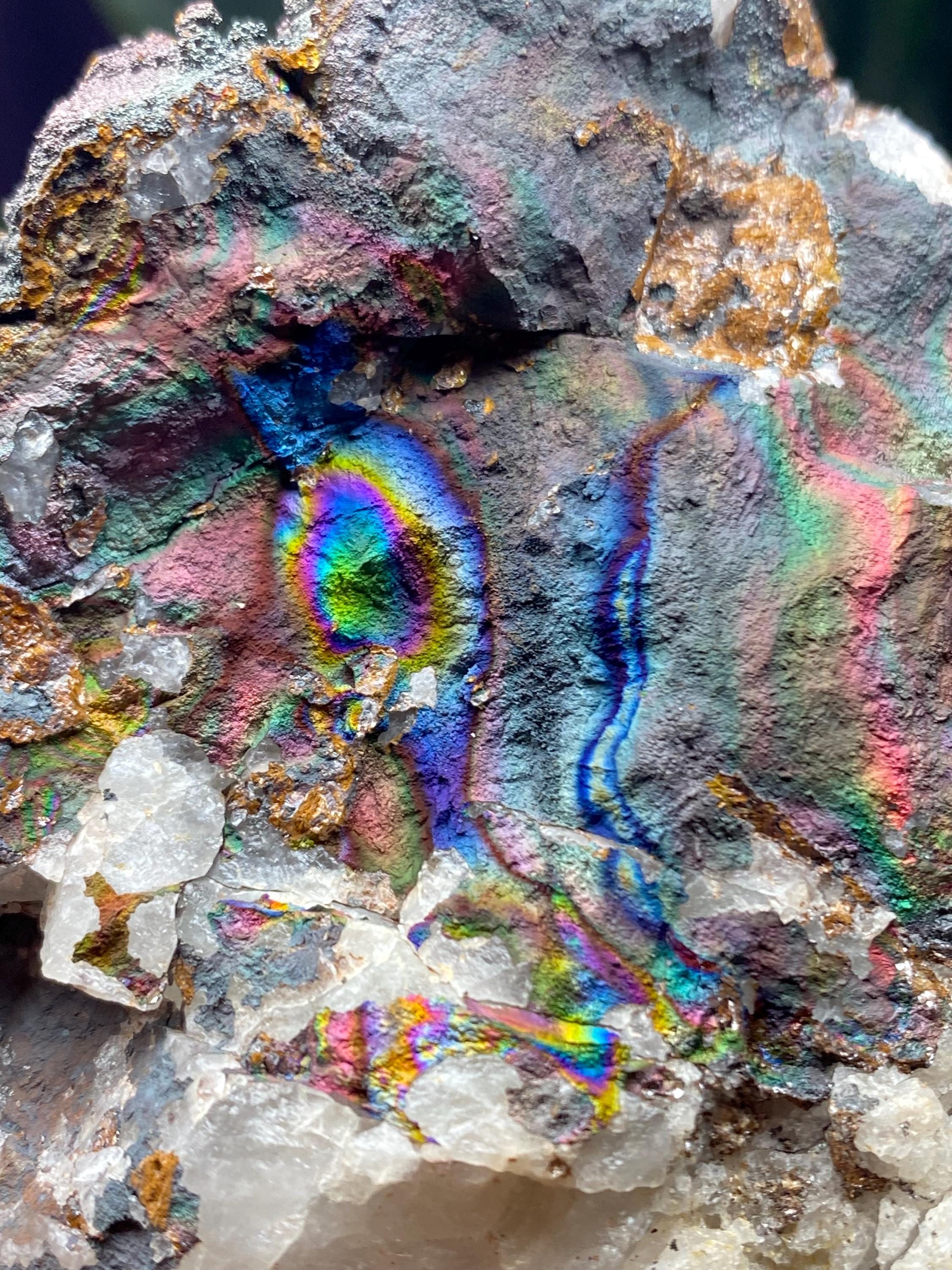 Colorful Quartz with Golden Iridescent Hematite from Graves Mountain GA. This piece has great color and contrast! Collected by Terry Ledford around 2000.7.75 x 6.5cmAll minerals come with a collection card.