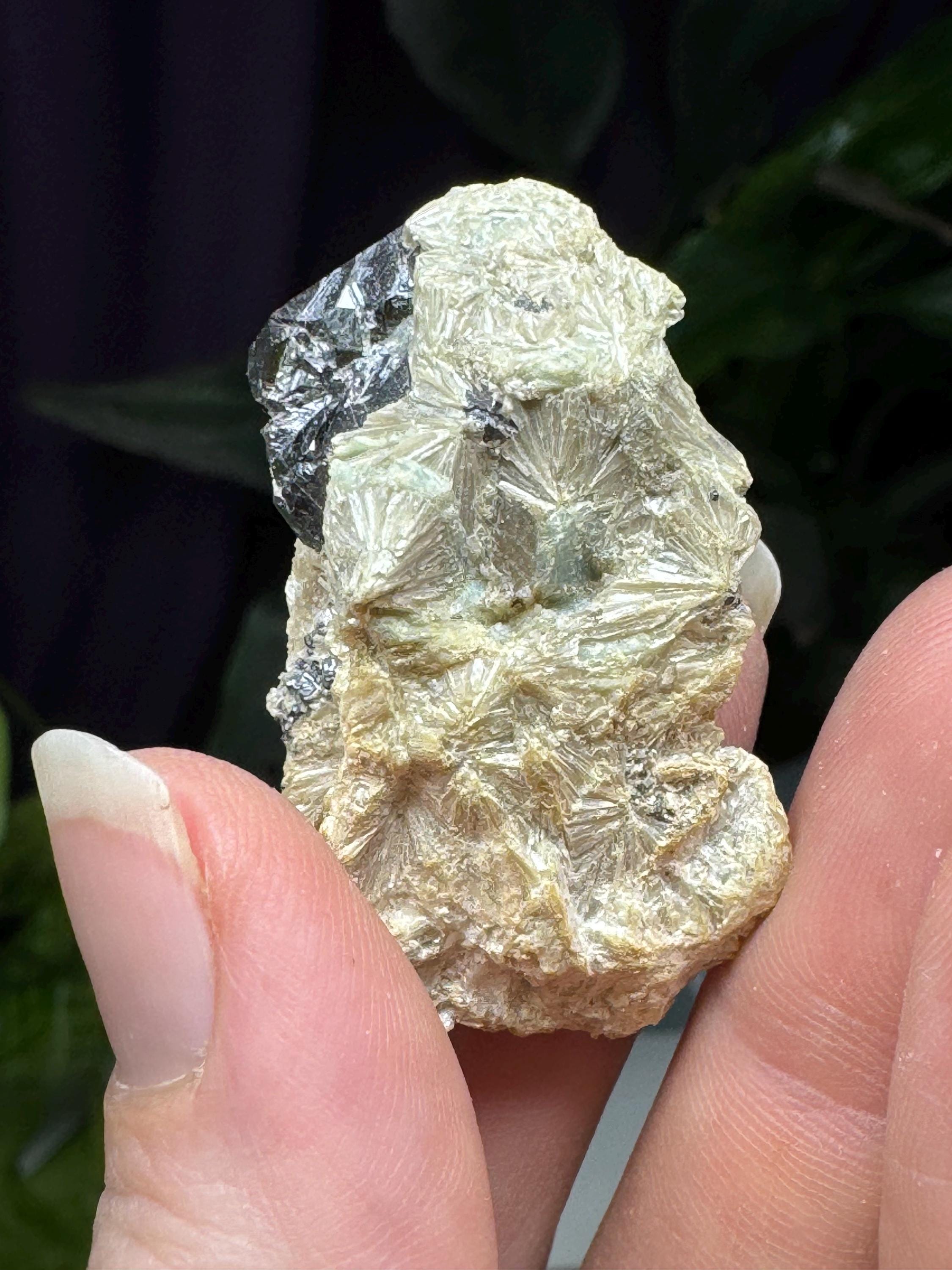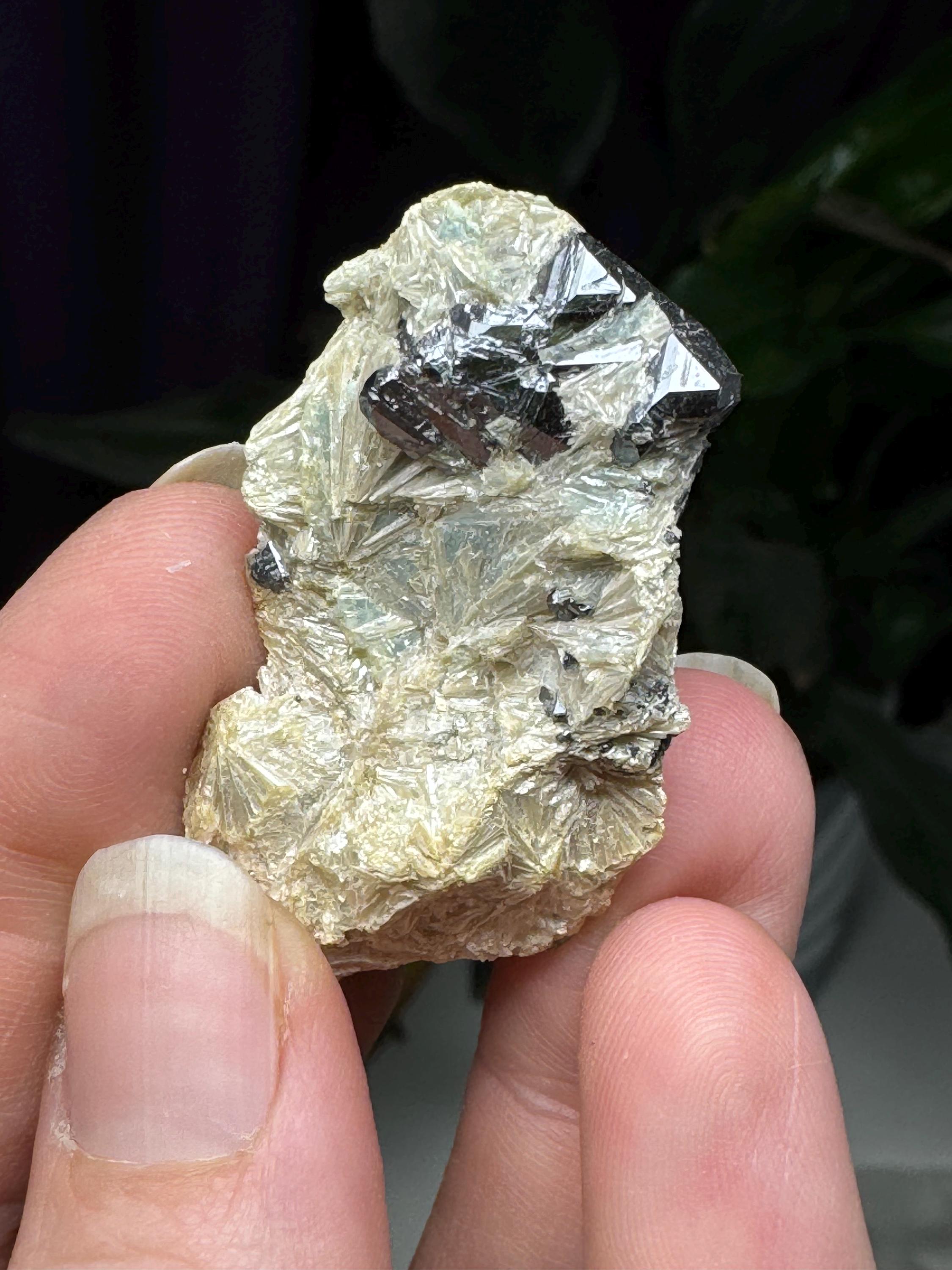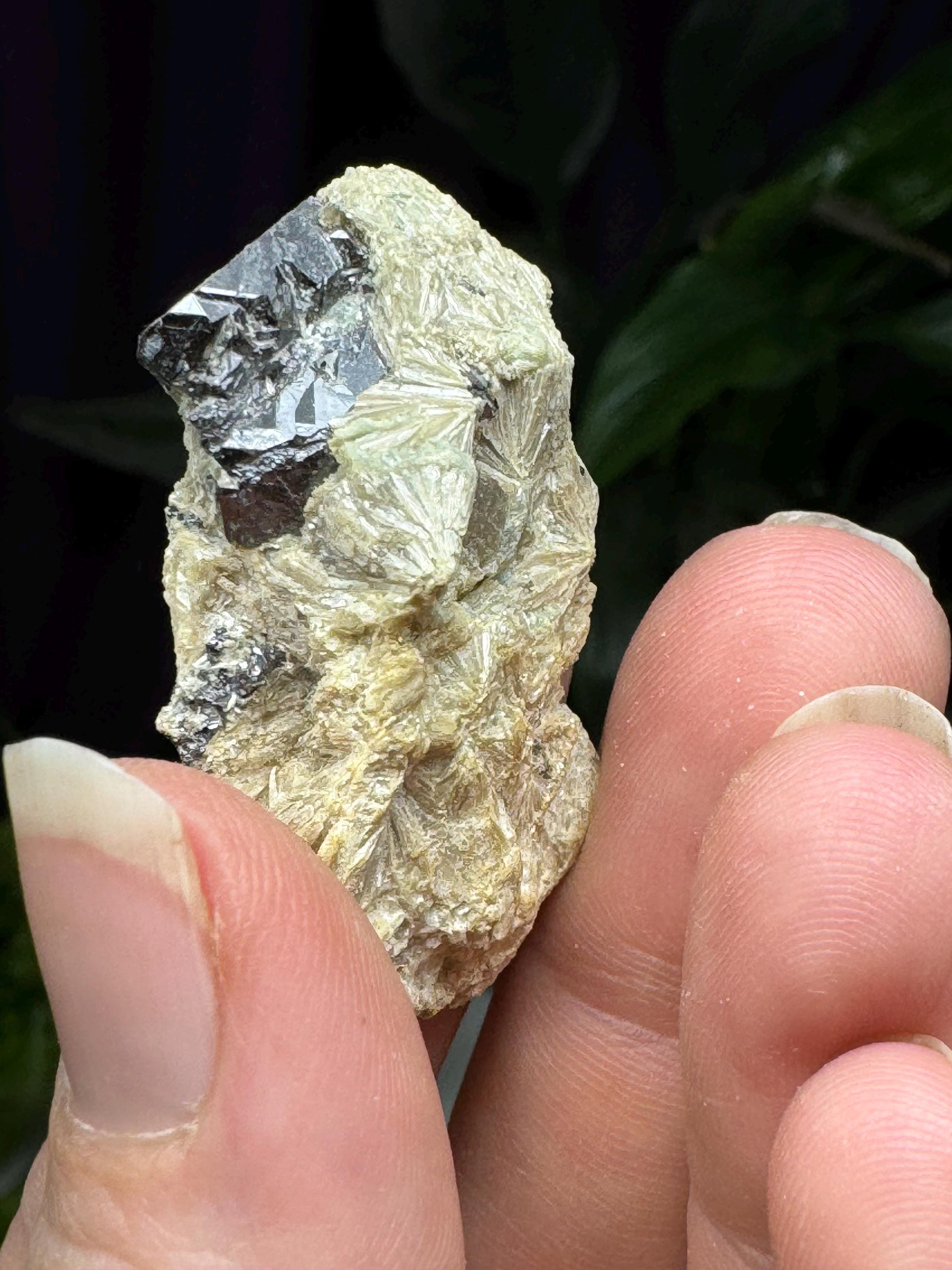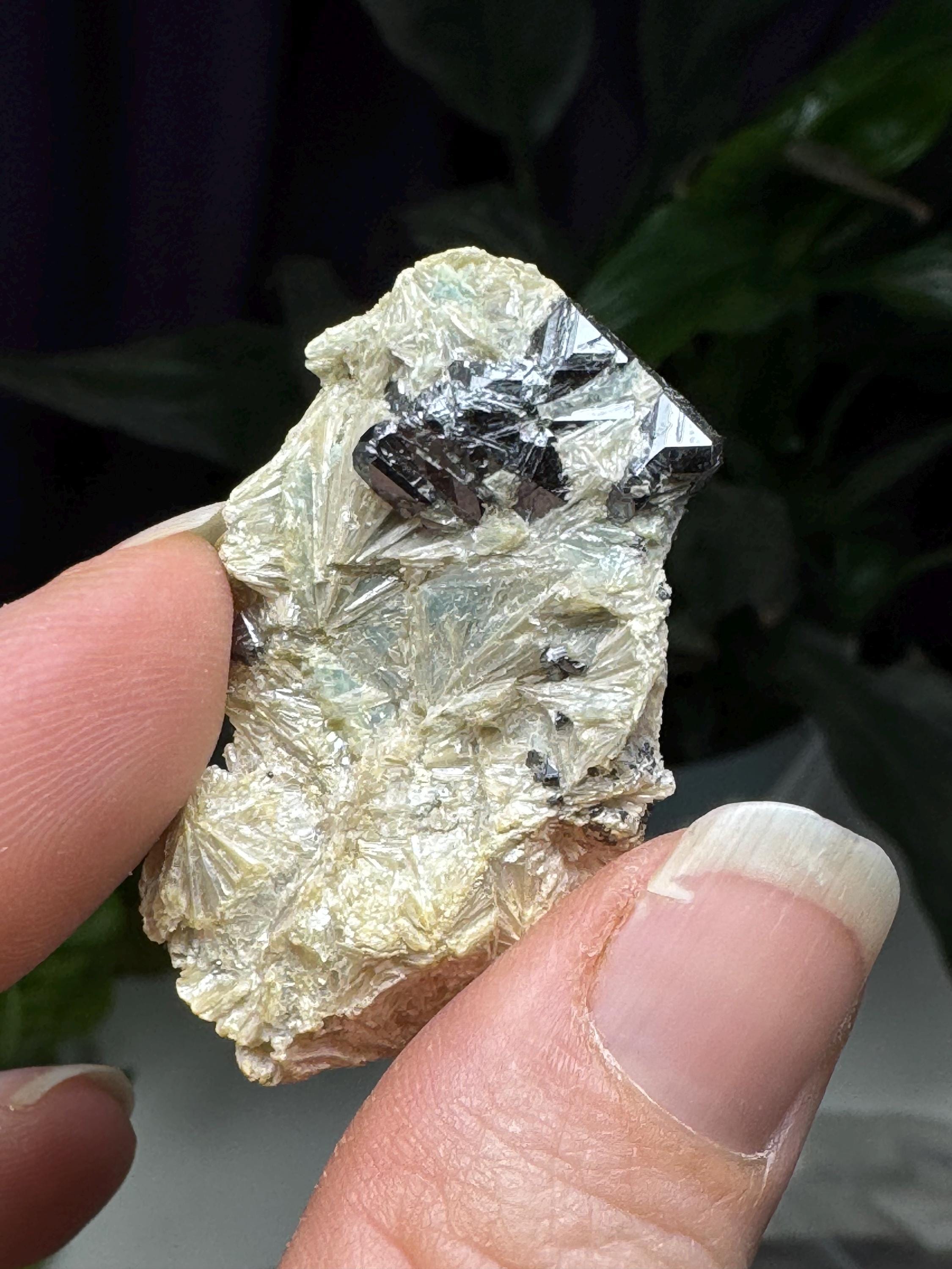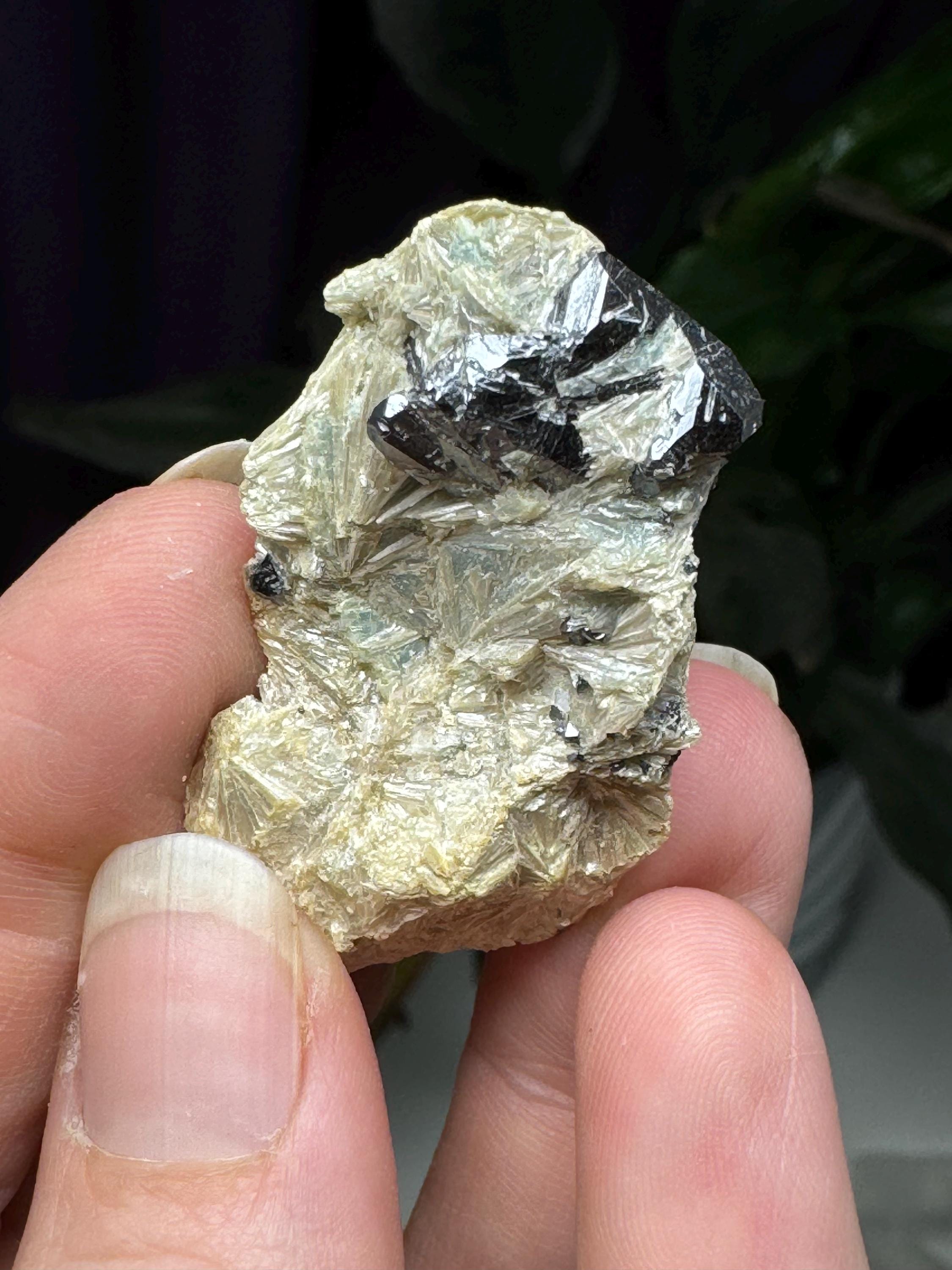 Kyanite with Rutile from Graves Mountain in Lincoln Co., GA. The rutile have great luster and have aesthetically grown on the kyanite matrix.All minerals come with a collection card. Approximately 2”