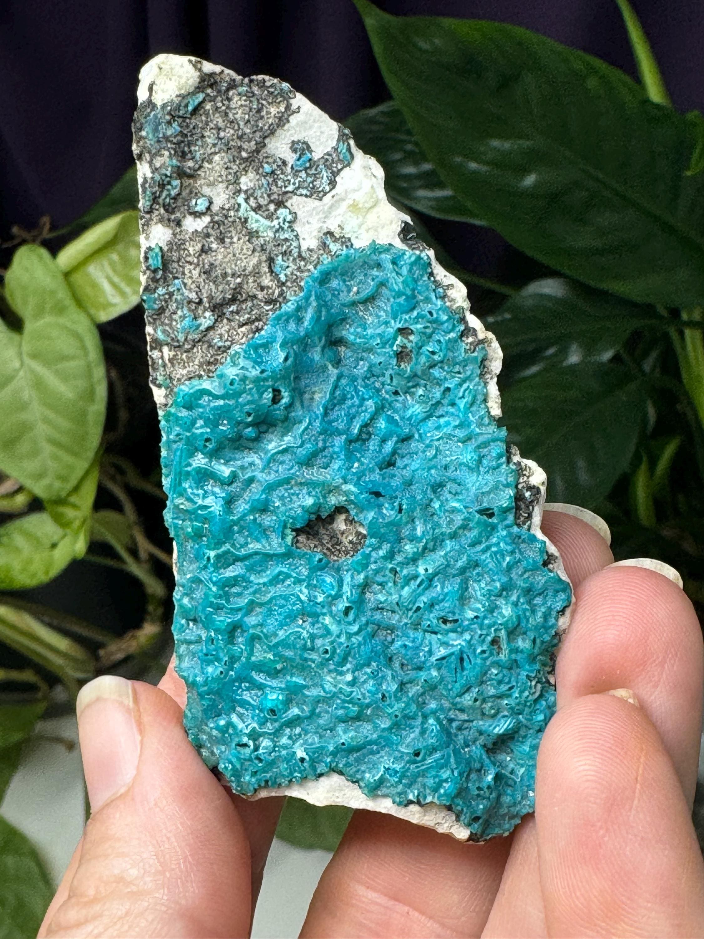 Chrysocolla from Italy. Great color contrast. All minerals come with a mineral card.