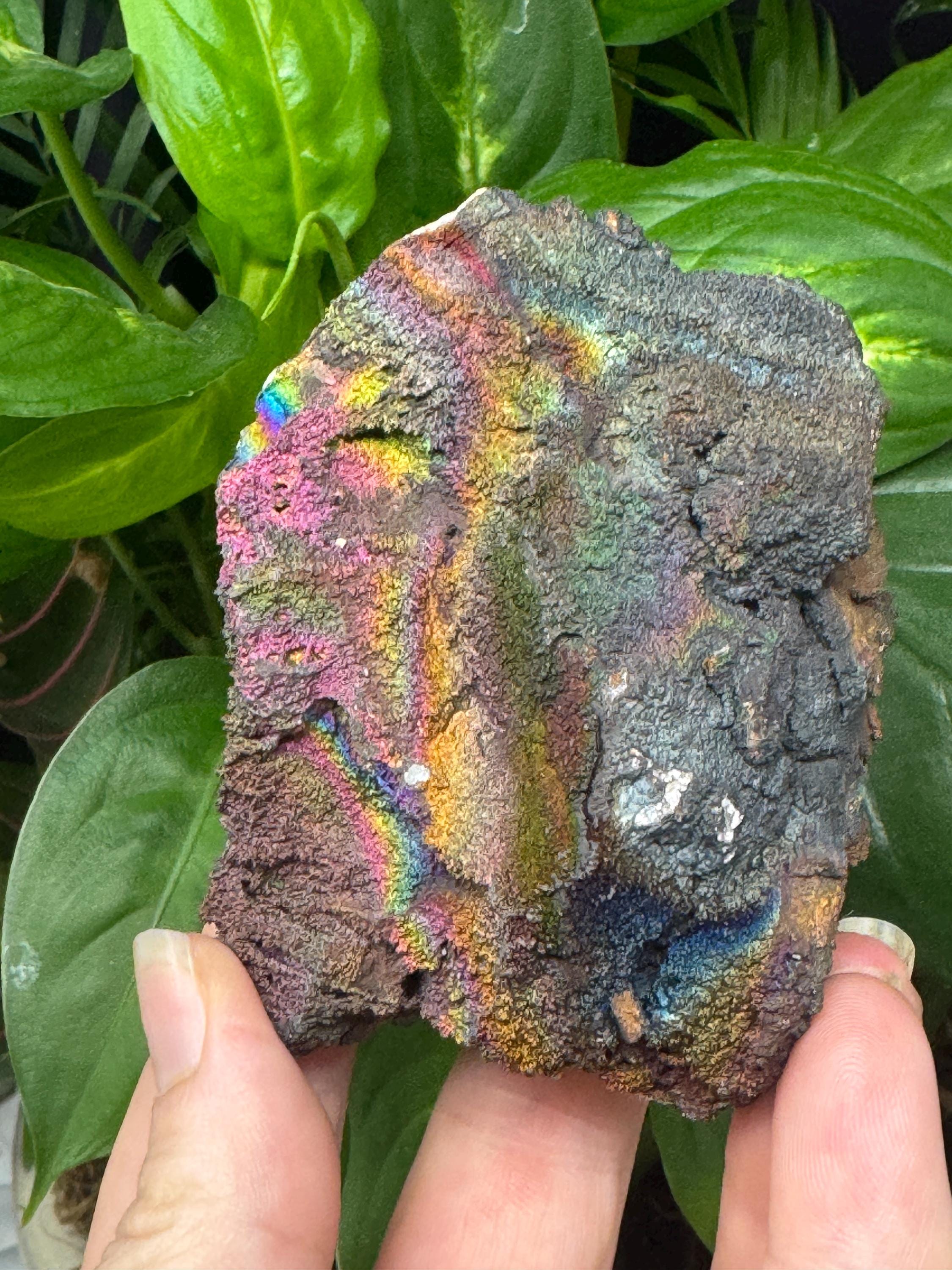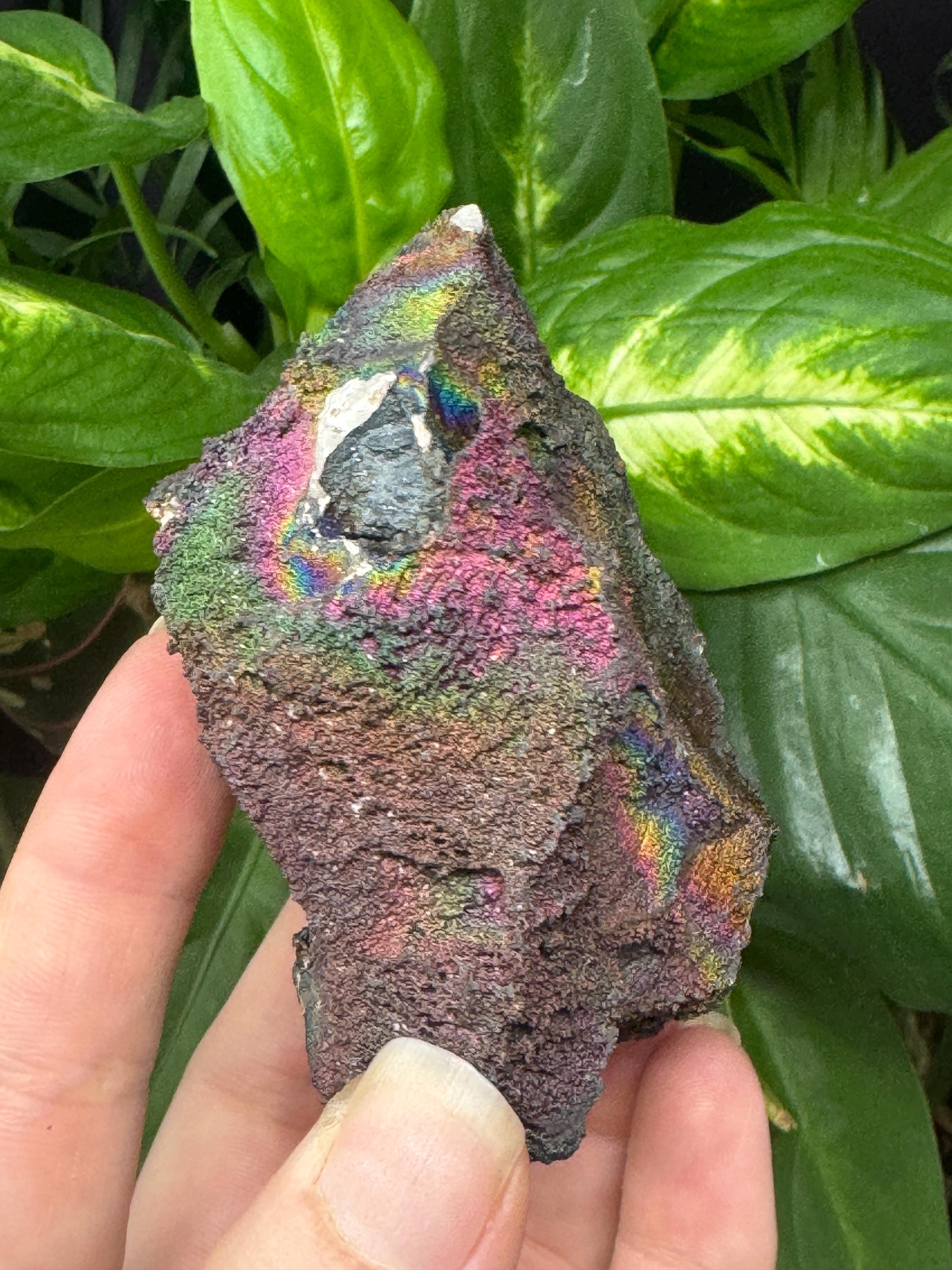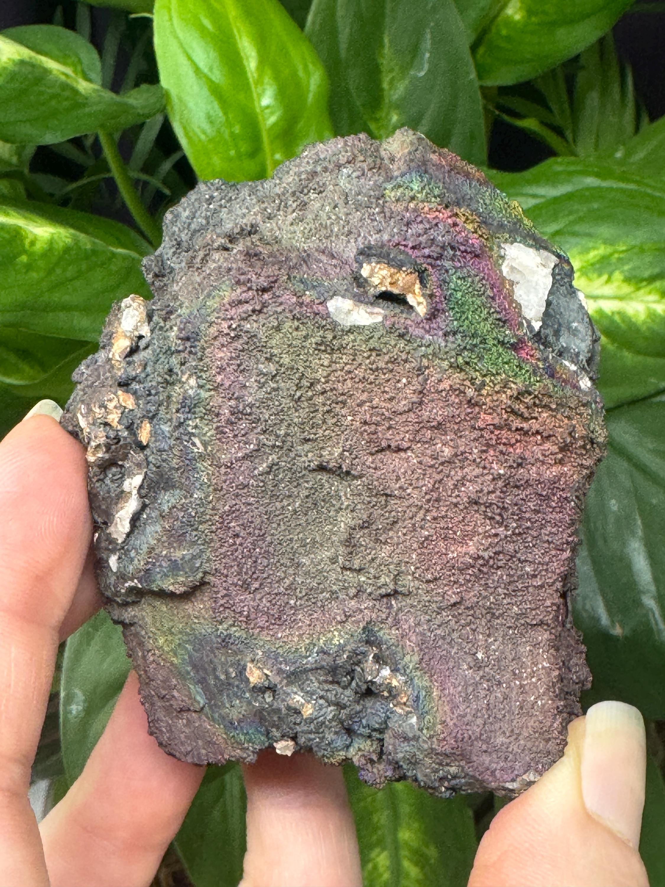 Quartz with Iridescent Hematite from Graves Mountain, GA. Quartz with rainbow iridescent Hematite. Collected by Terry Ledford. All minerals come with a collection card.7.5 x 6cm