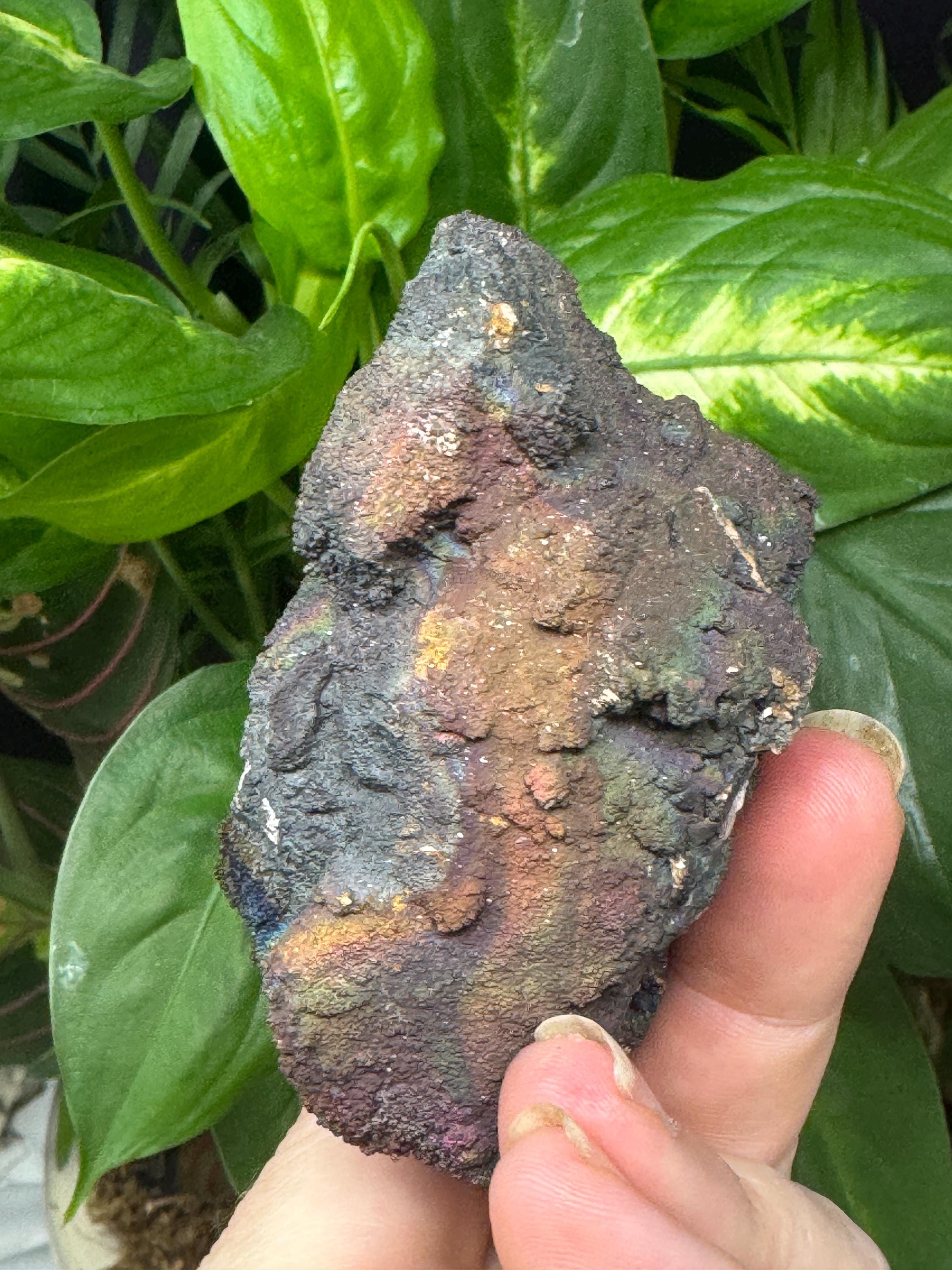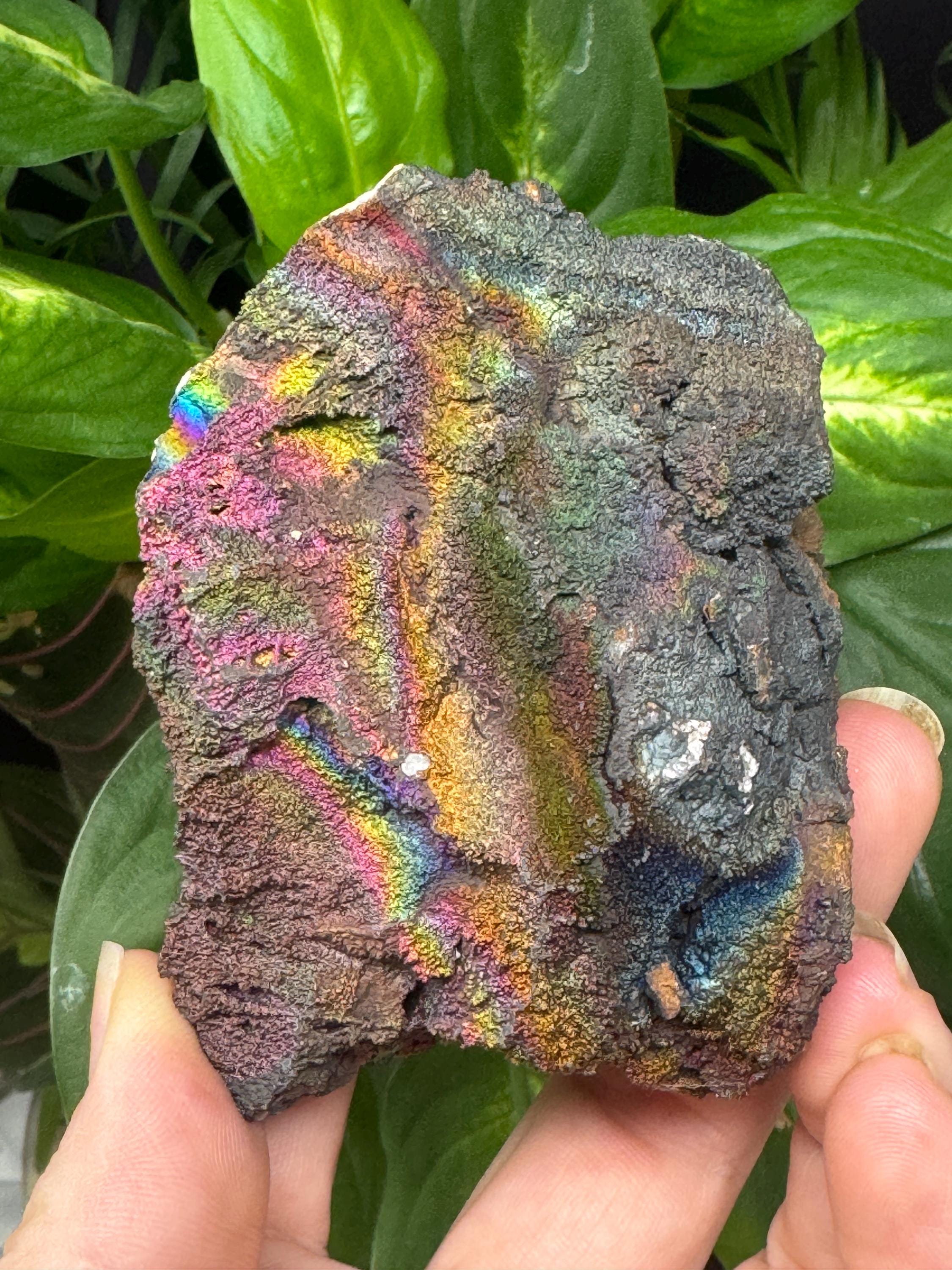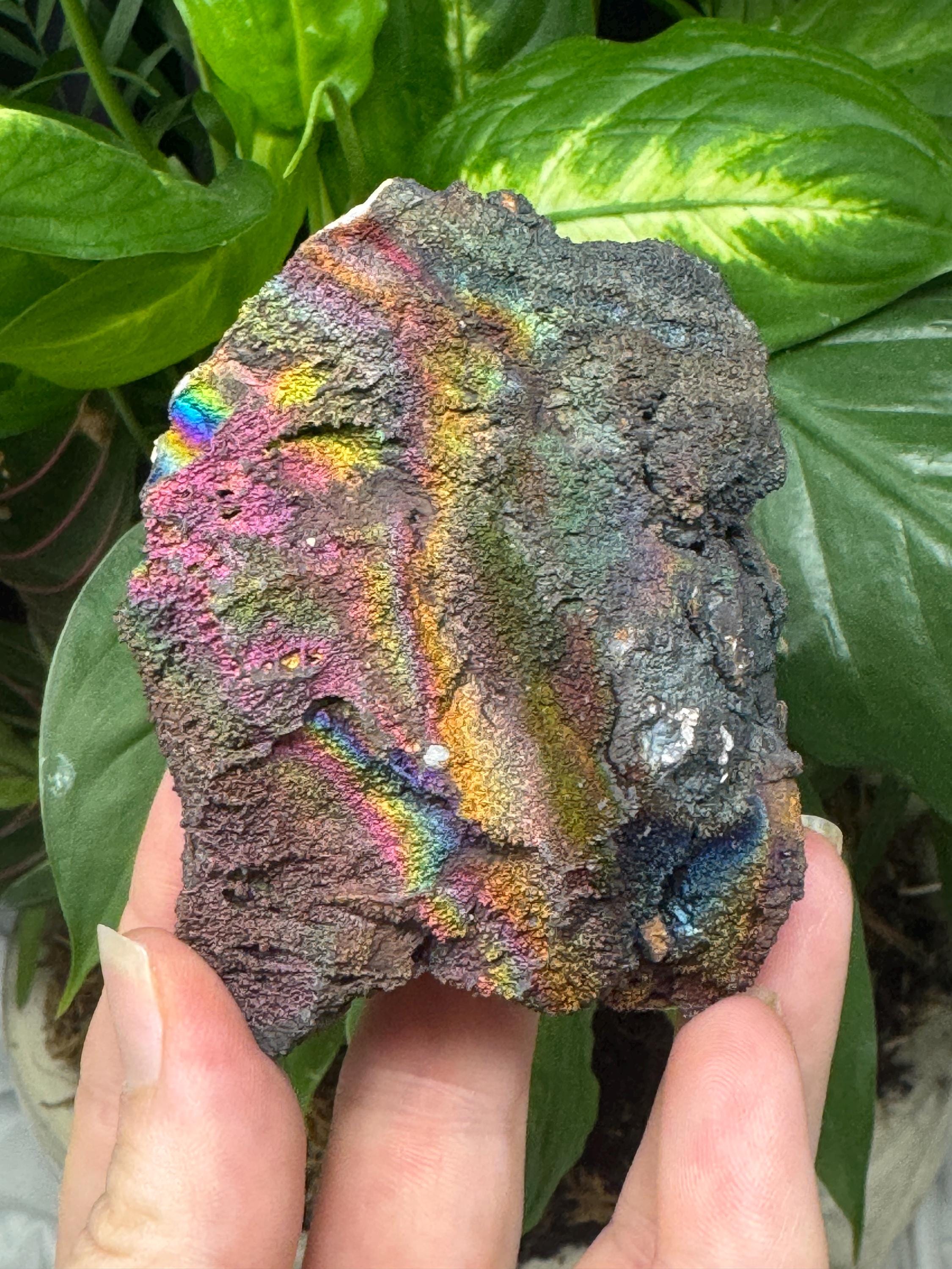 Quartz with Iridescent Hematite from Graves Mountain, GA. Quartz with rainbow iridescent Hematite. Collected by Terry Ledford. All minerals come with a collection card.7.5 x 6cm