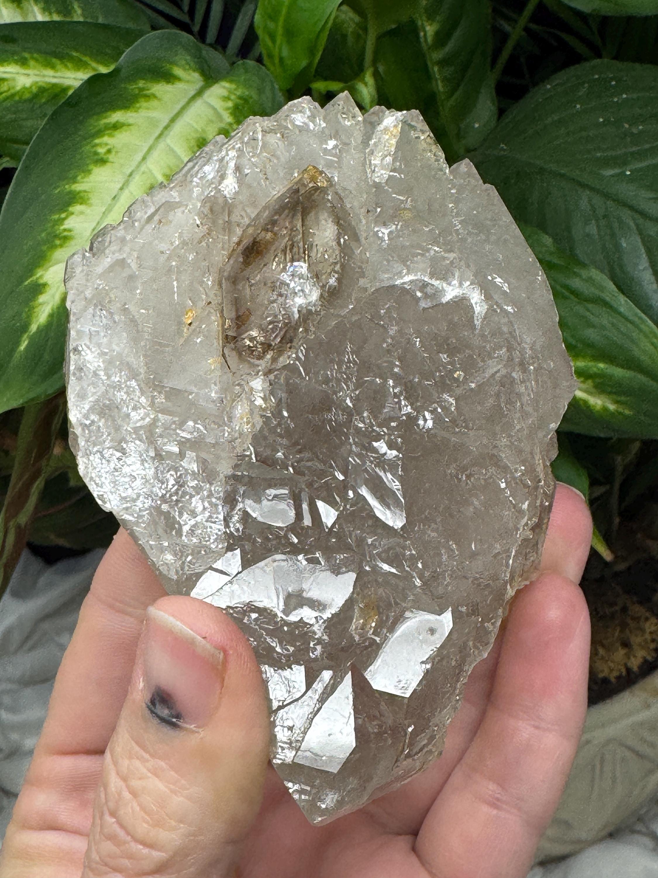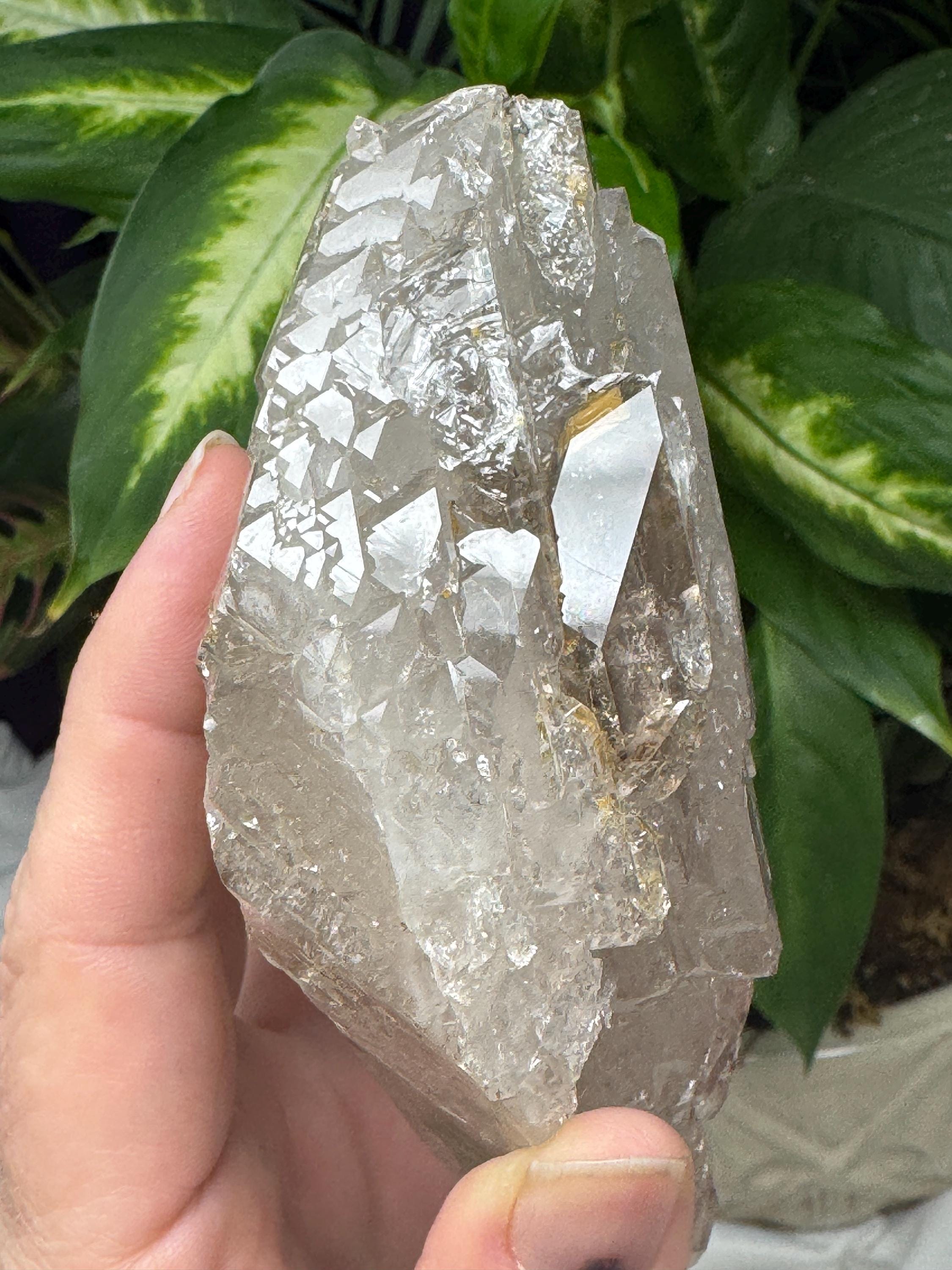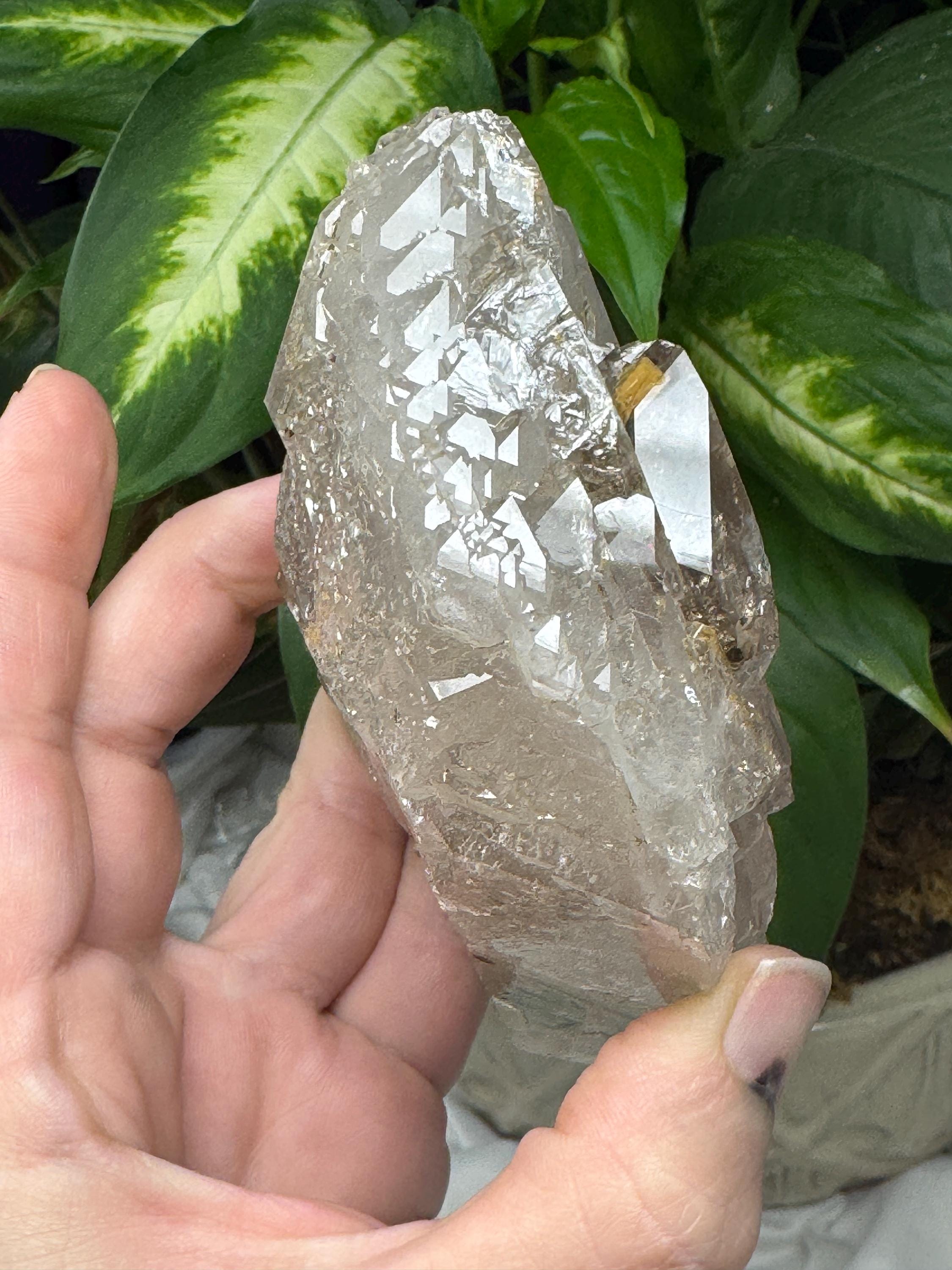 Smoky Elestial Quartz from North American Emerald Mine, Hiddenite, NC. Collected by Terry Ledford. Great collection piece! 10.3 x 9cmAll minerals come with a collection card.j