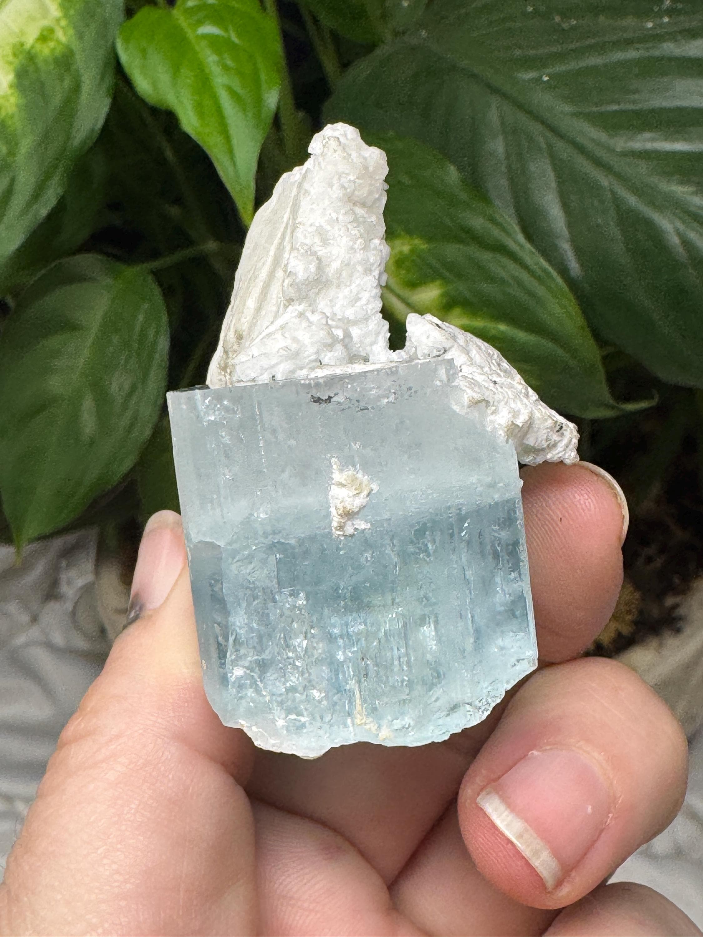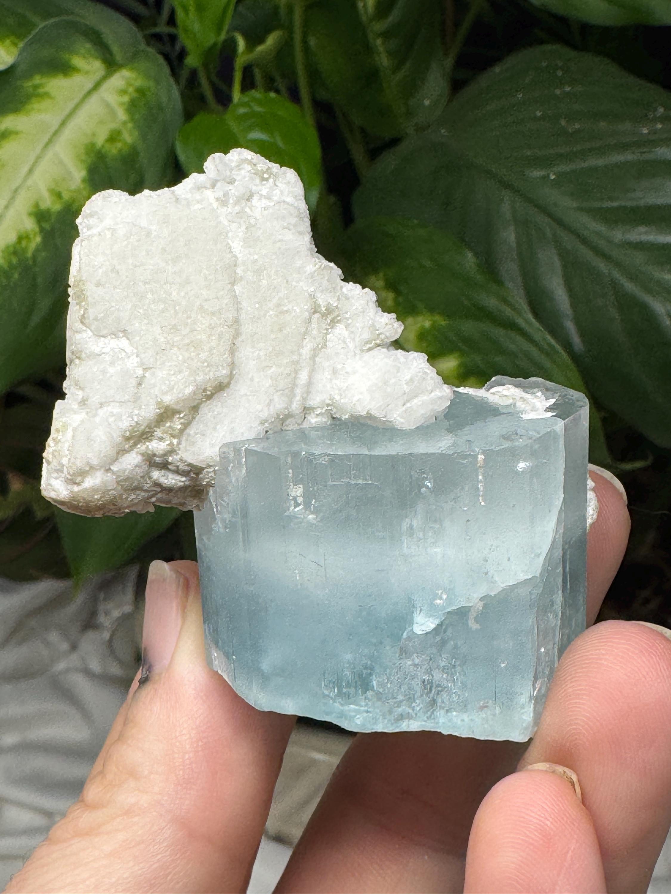 Aquamarine from Pakistan. Great aesthetic specimen.5.5 x 4 x 4.5cmAll minerals come with a mineral card.
