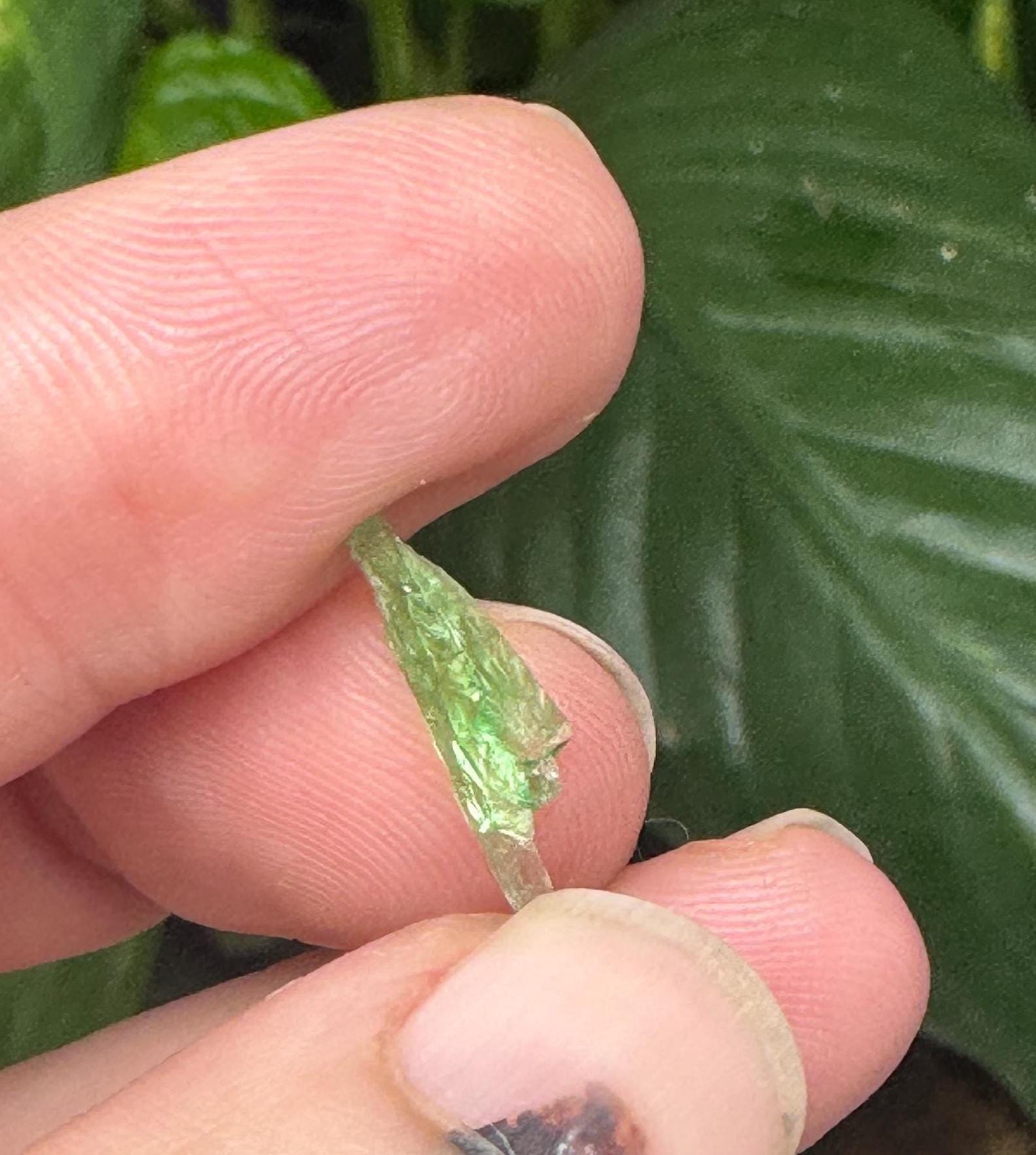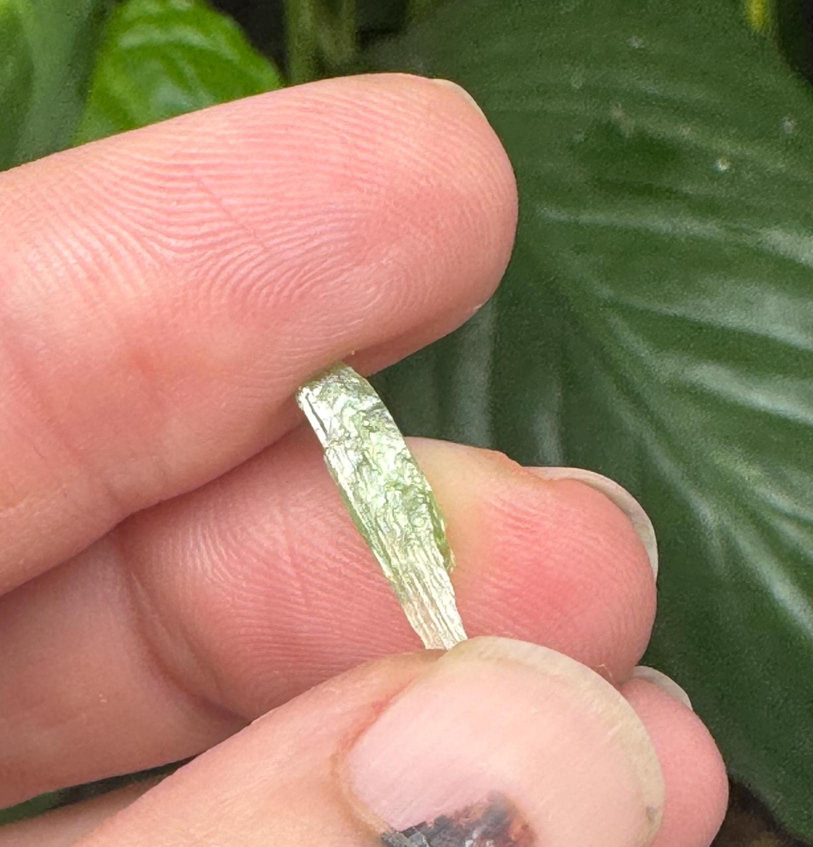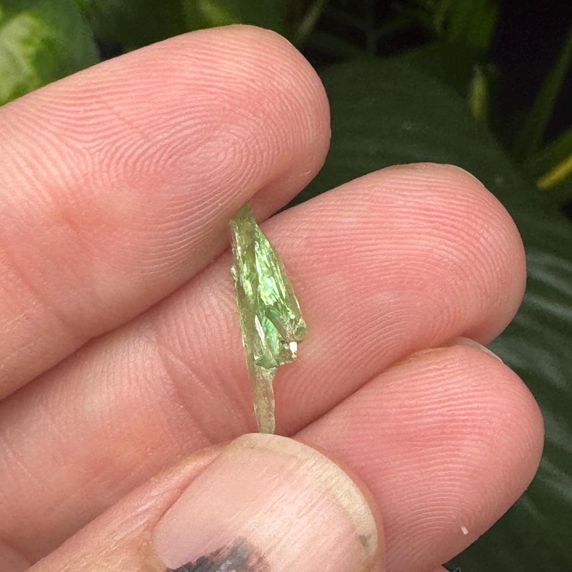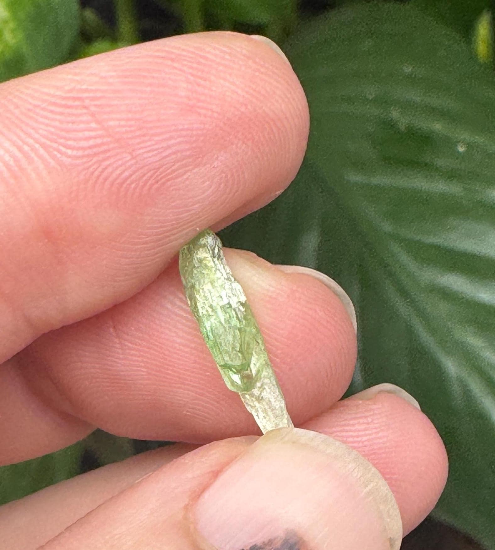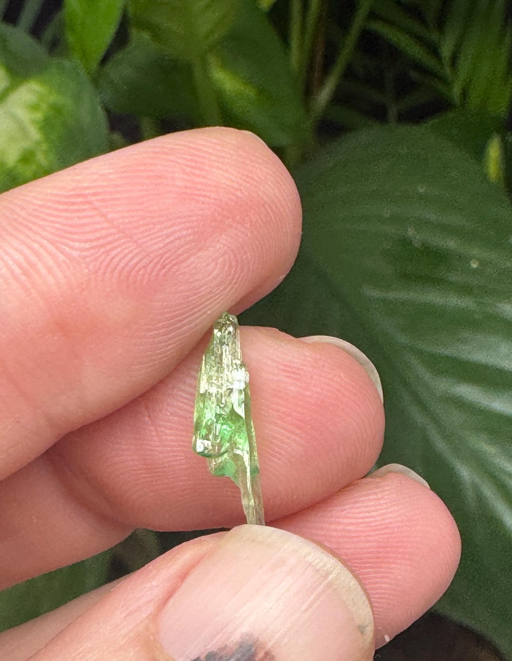 Beautiful Rare Hiddenite from Hiddenite NC, Adams Farm. Good size, color, and good terminations. Mined by Terry Ledford with Mr Adams in 2006. All minerals come with a collection card.1.7 cm1.3 carats