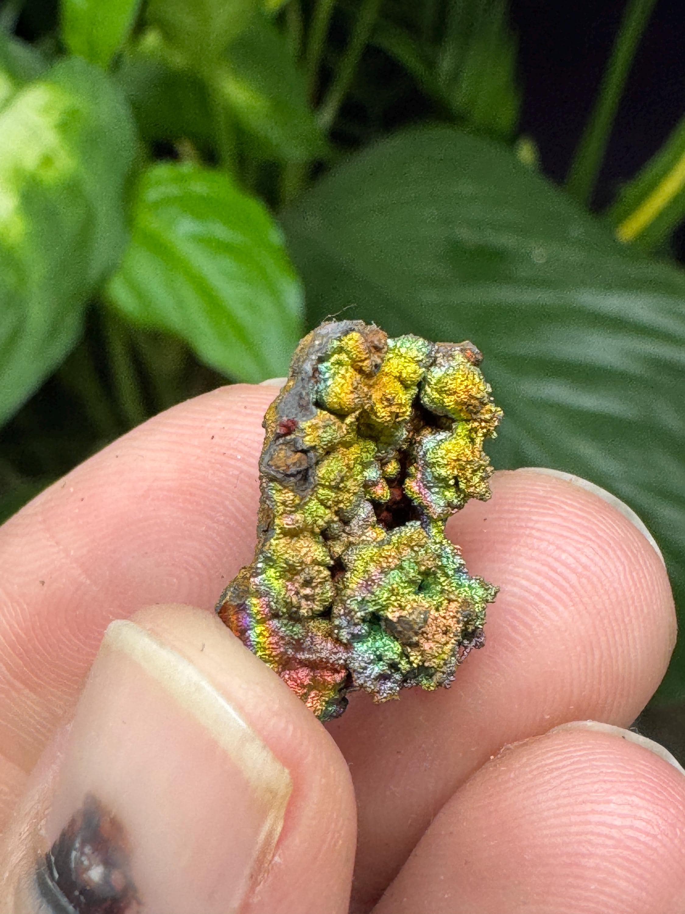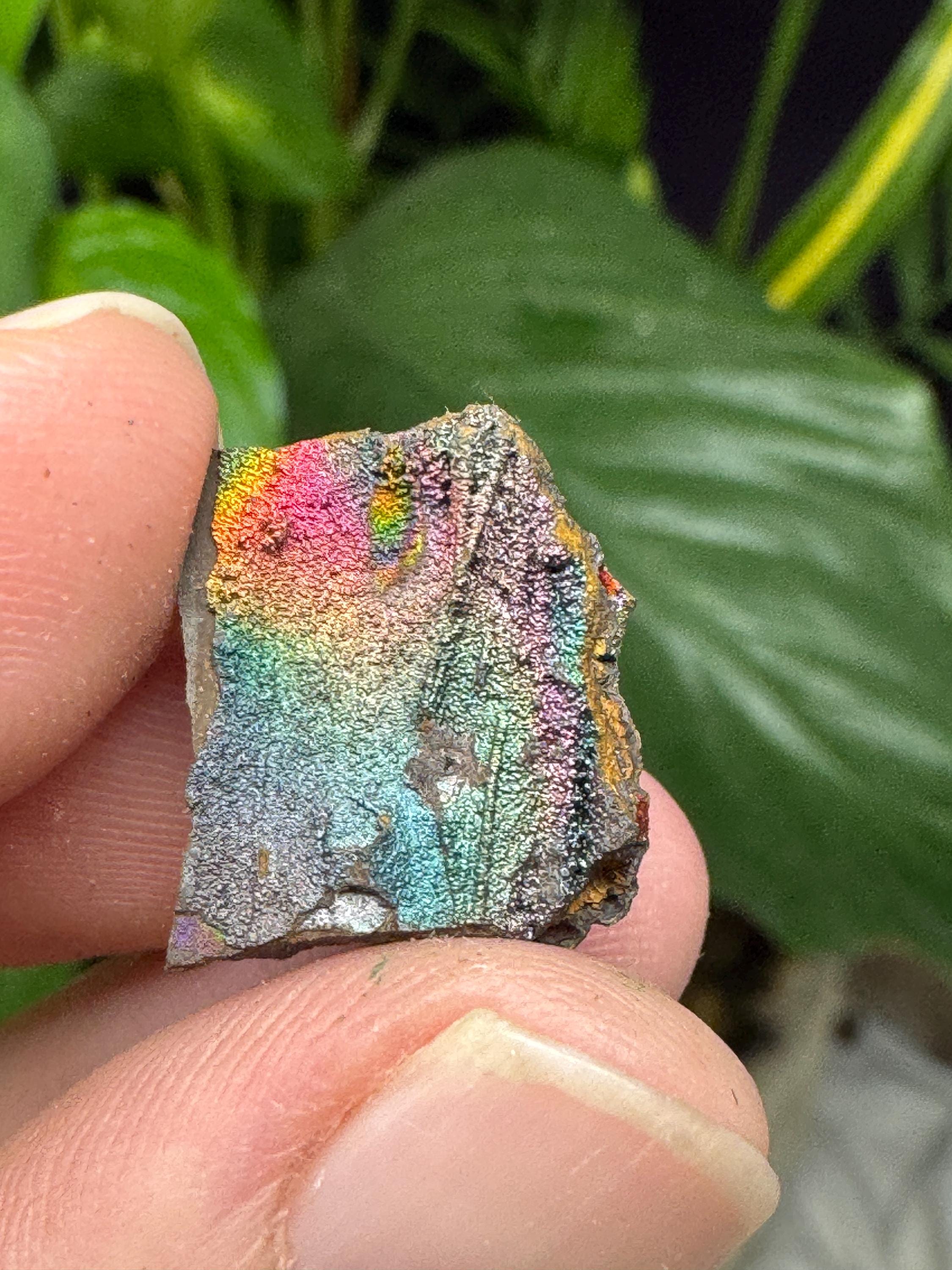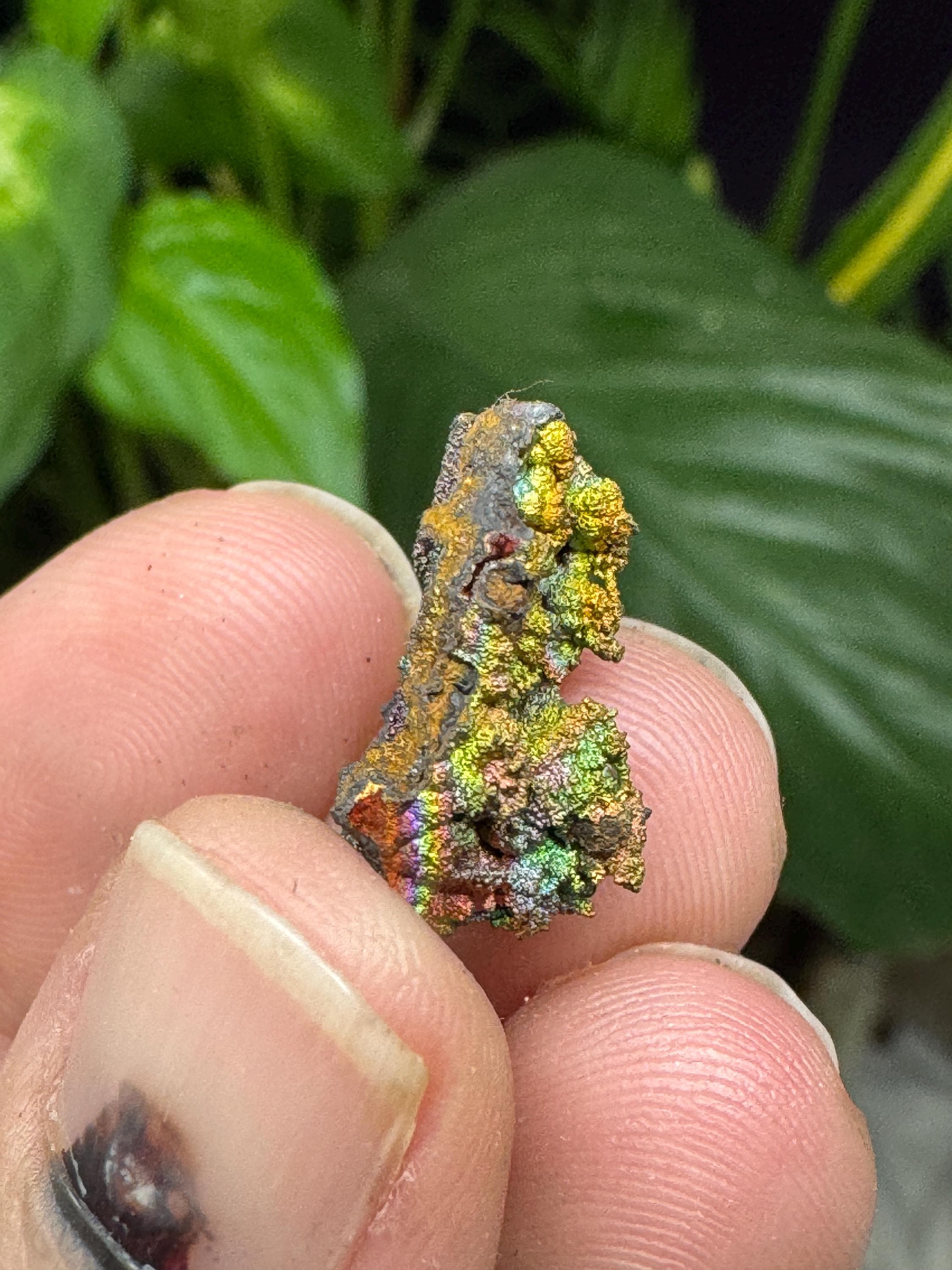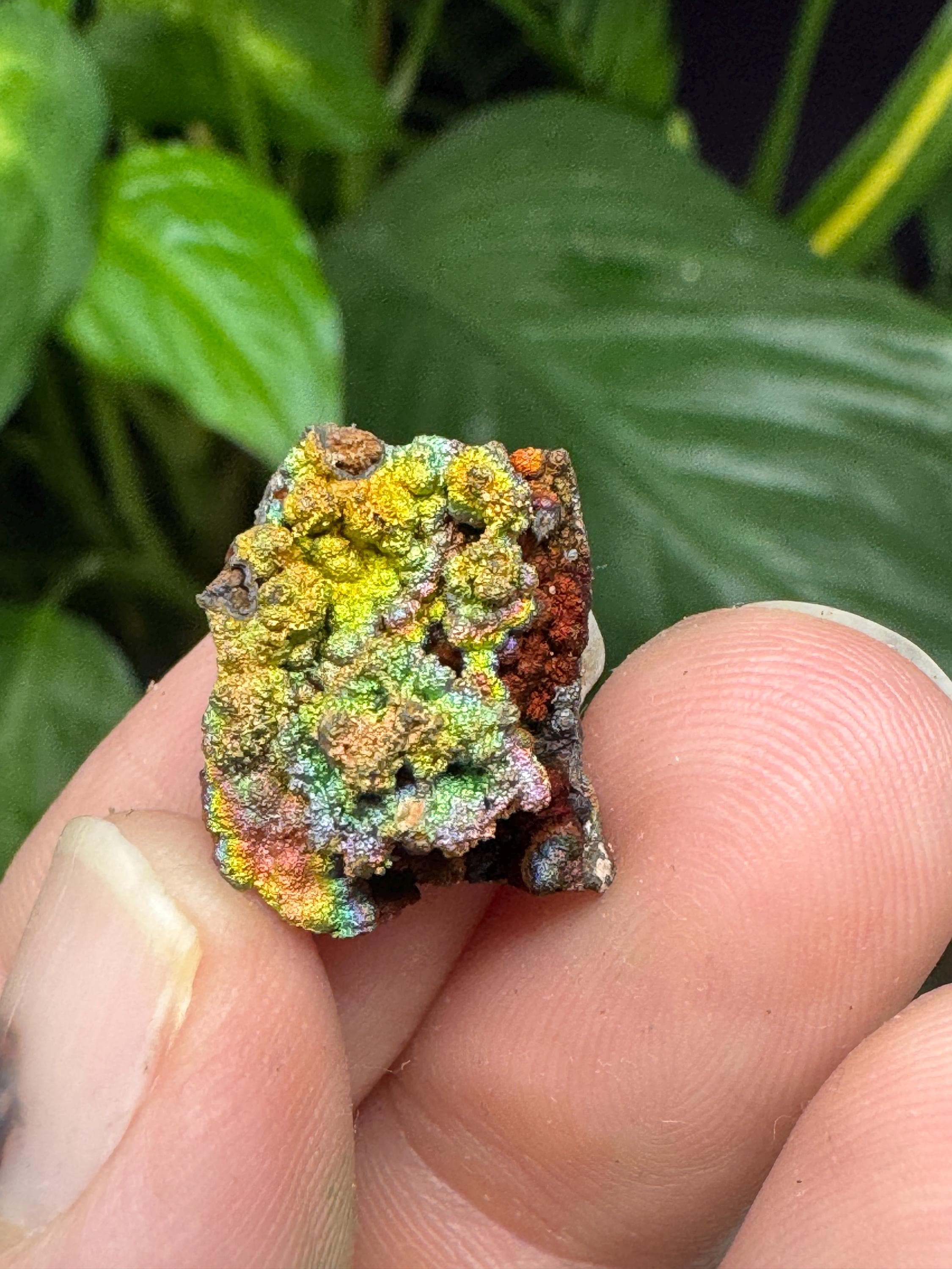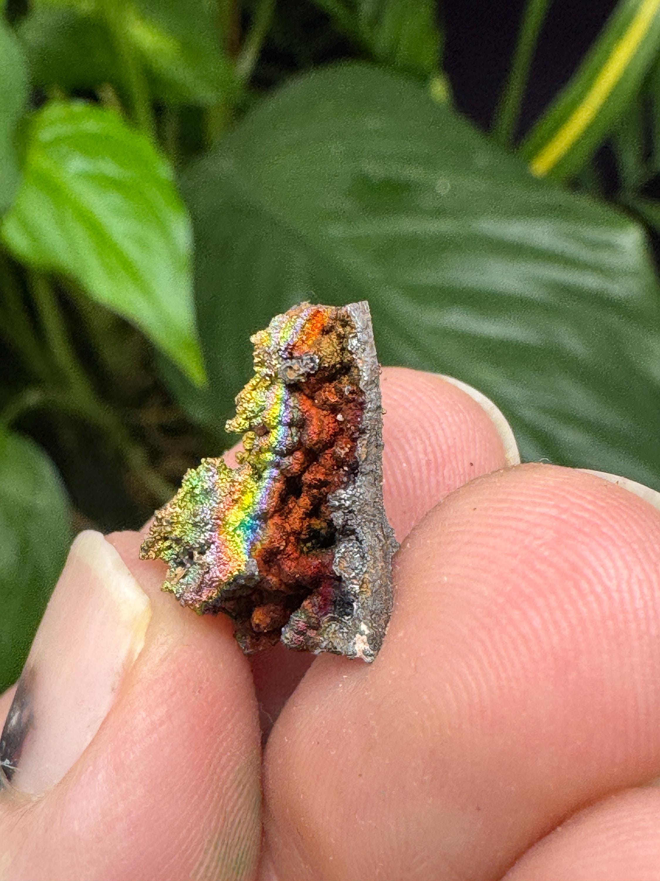 Colorful Turgite with Iridescent Hematite from Graves Mountain GA. Collected by Terry Ledford around 2000.1.9 x 1.6cmAll mineral come with a collection card.