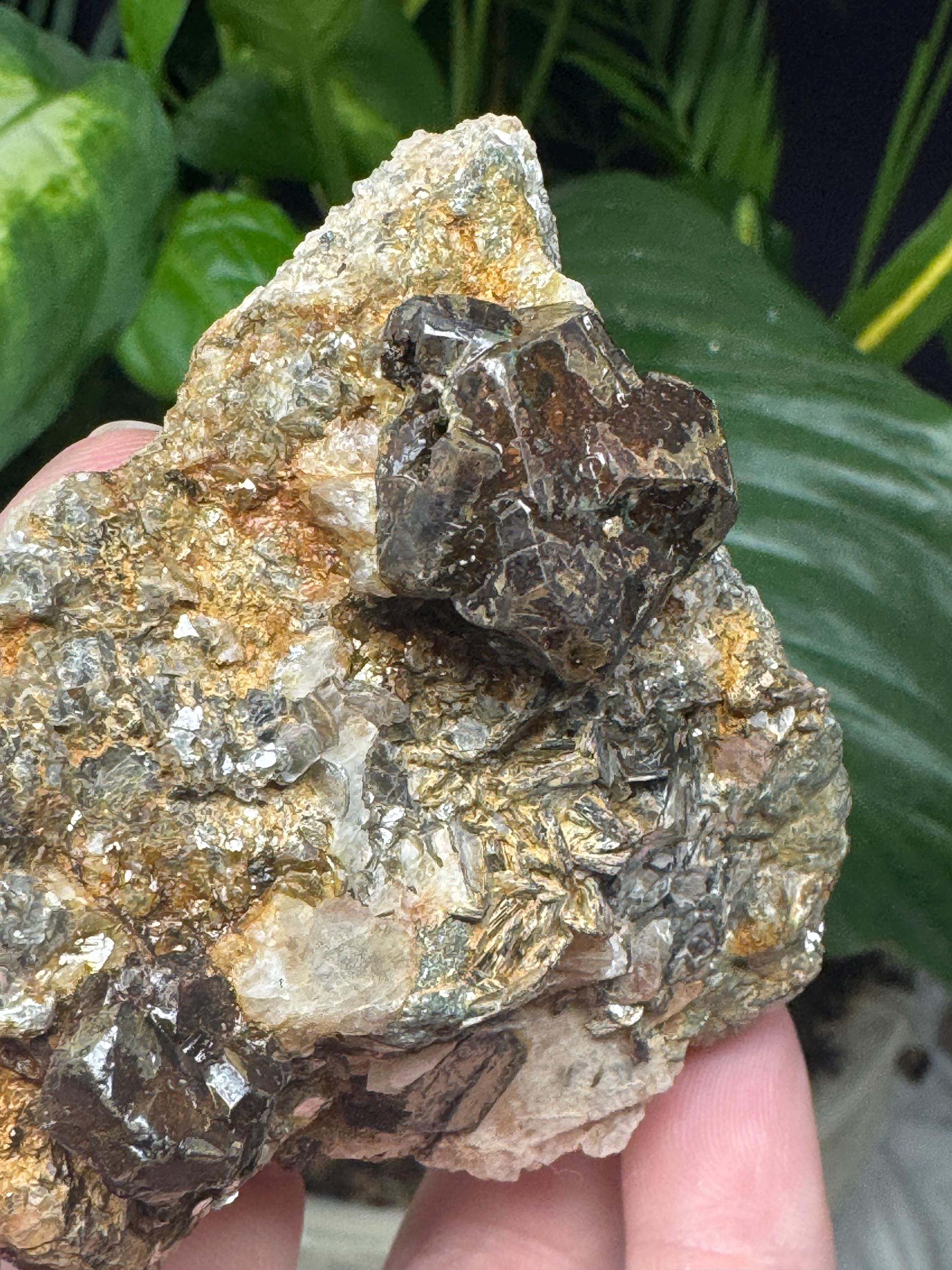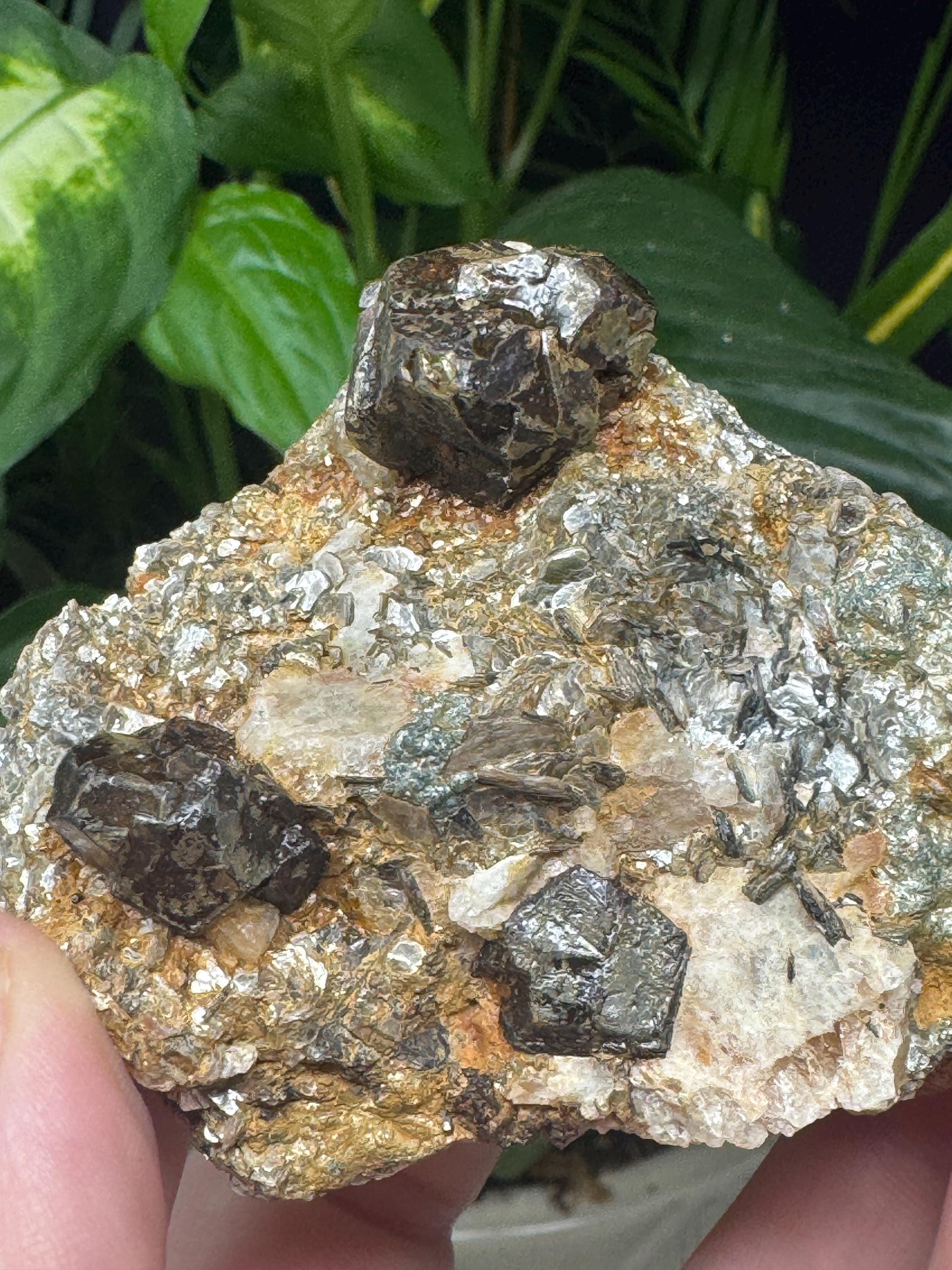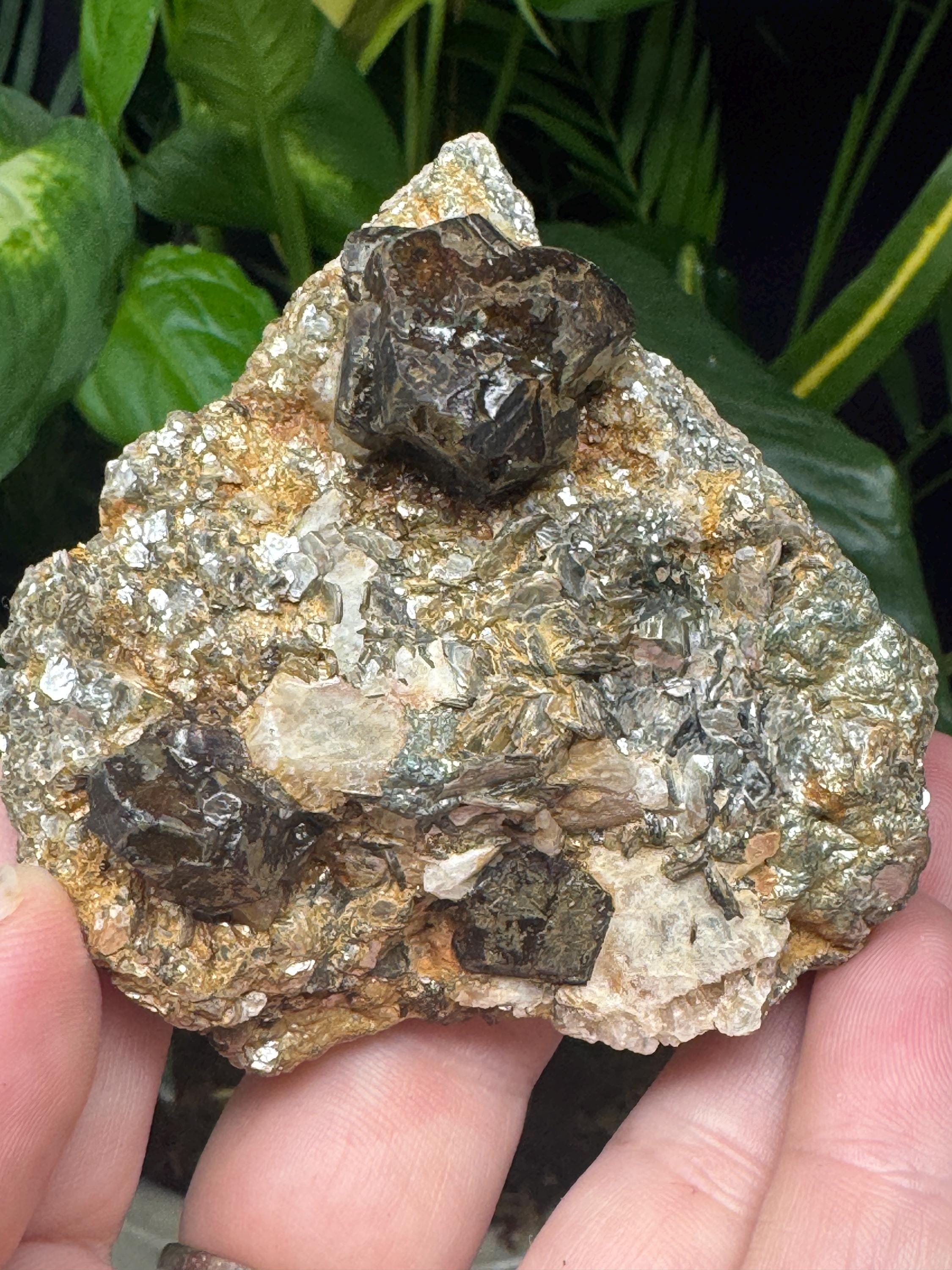 Almandine Garnet in Mica from Mitchell Ciuhty, North Carolina. Collected by Terry Ledford and comes with a mineral card.