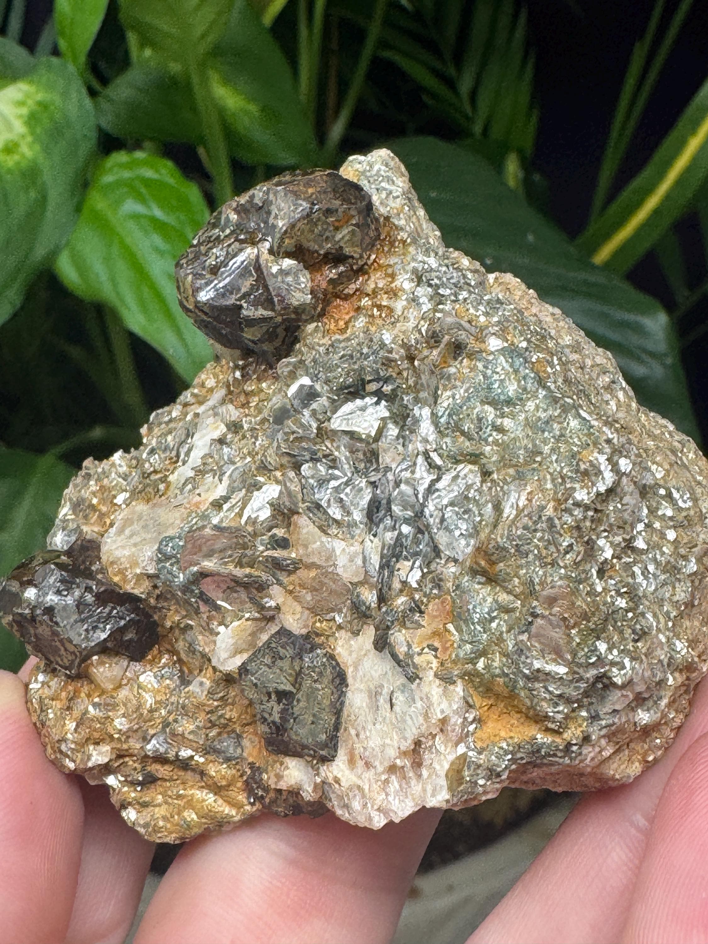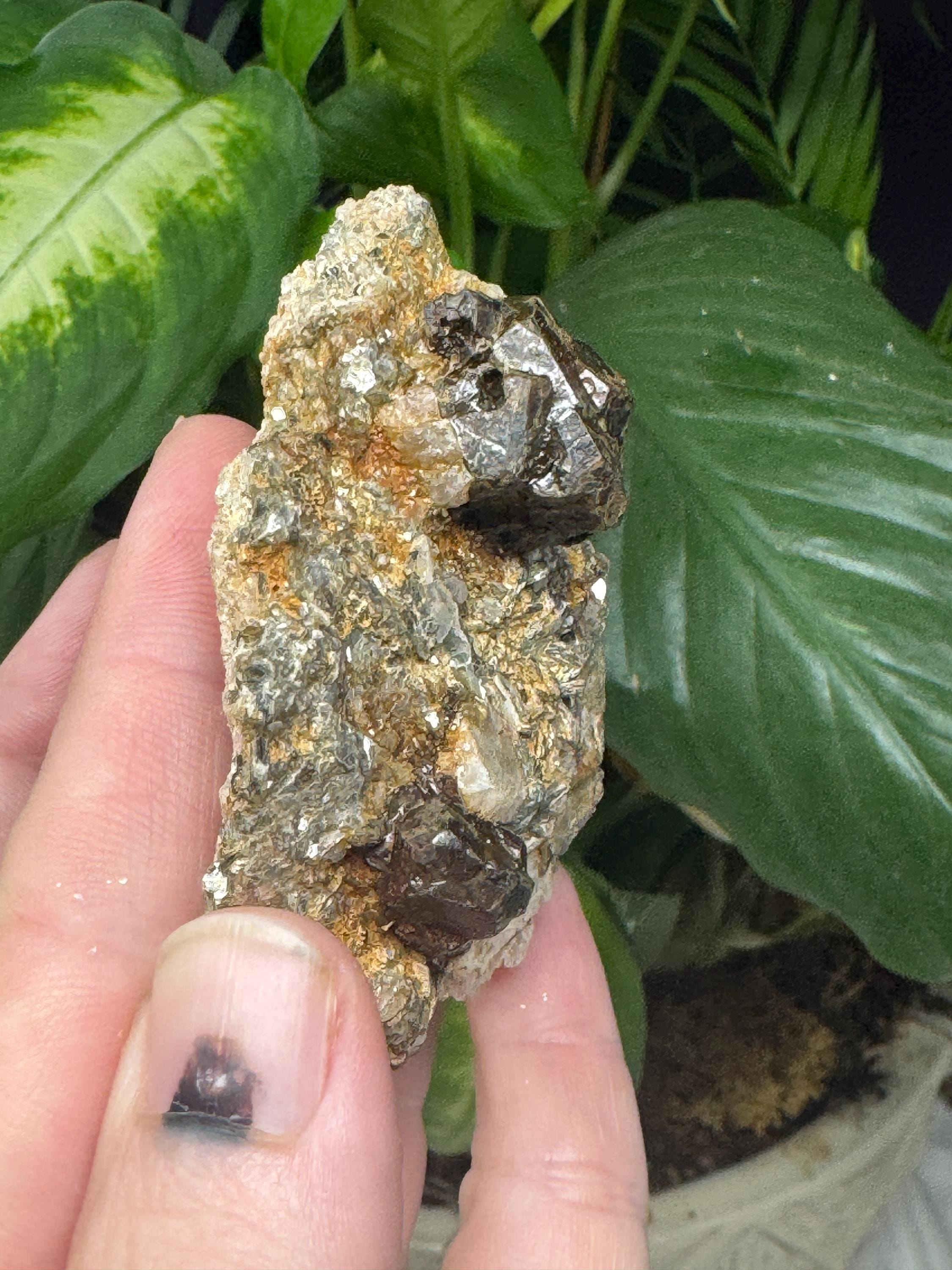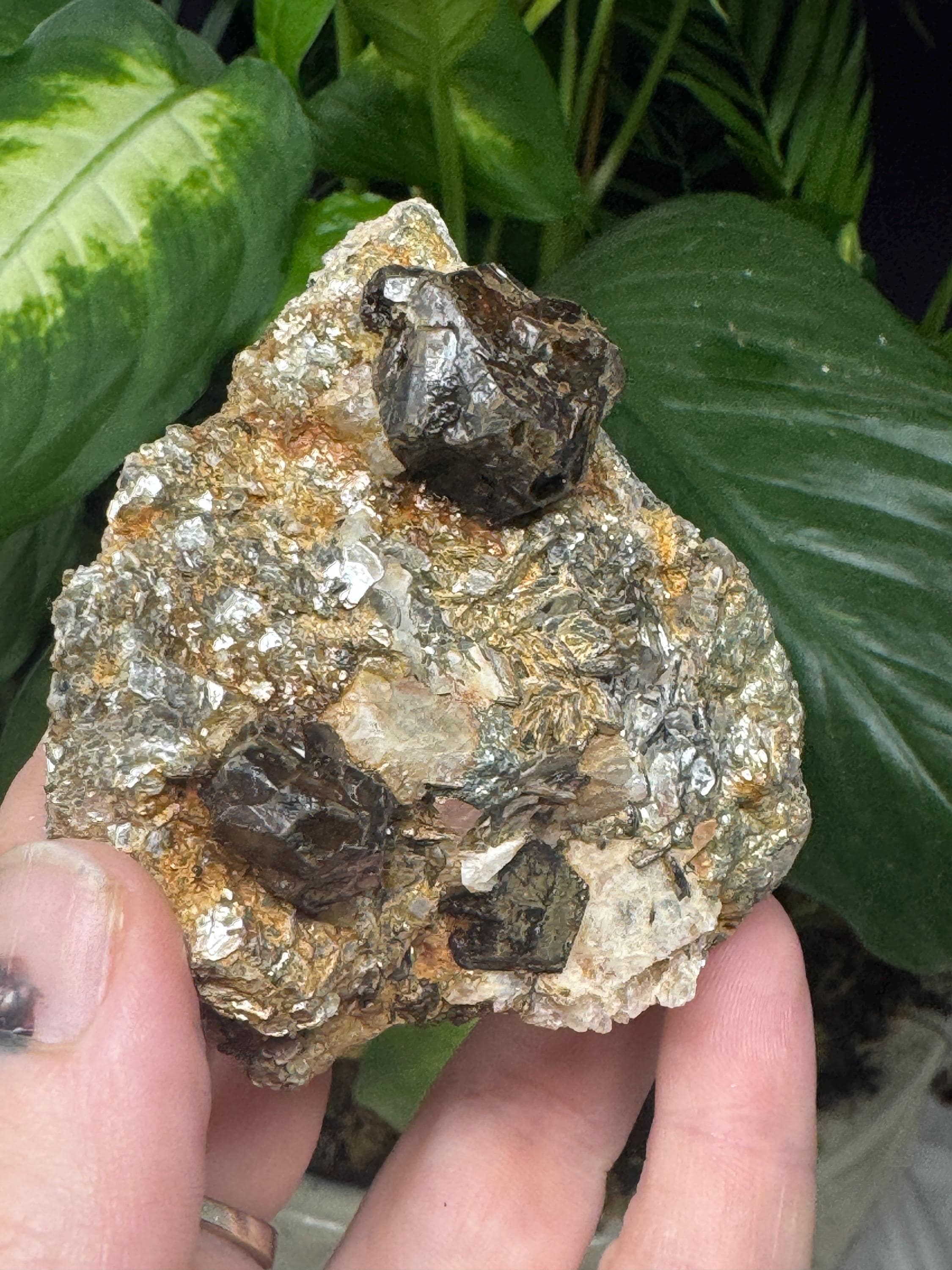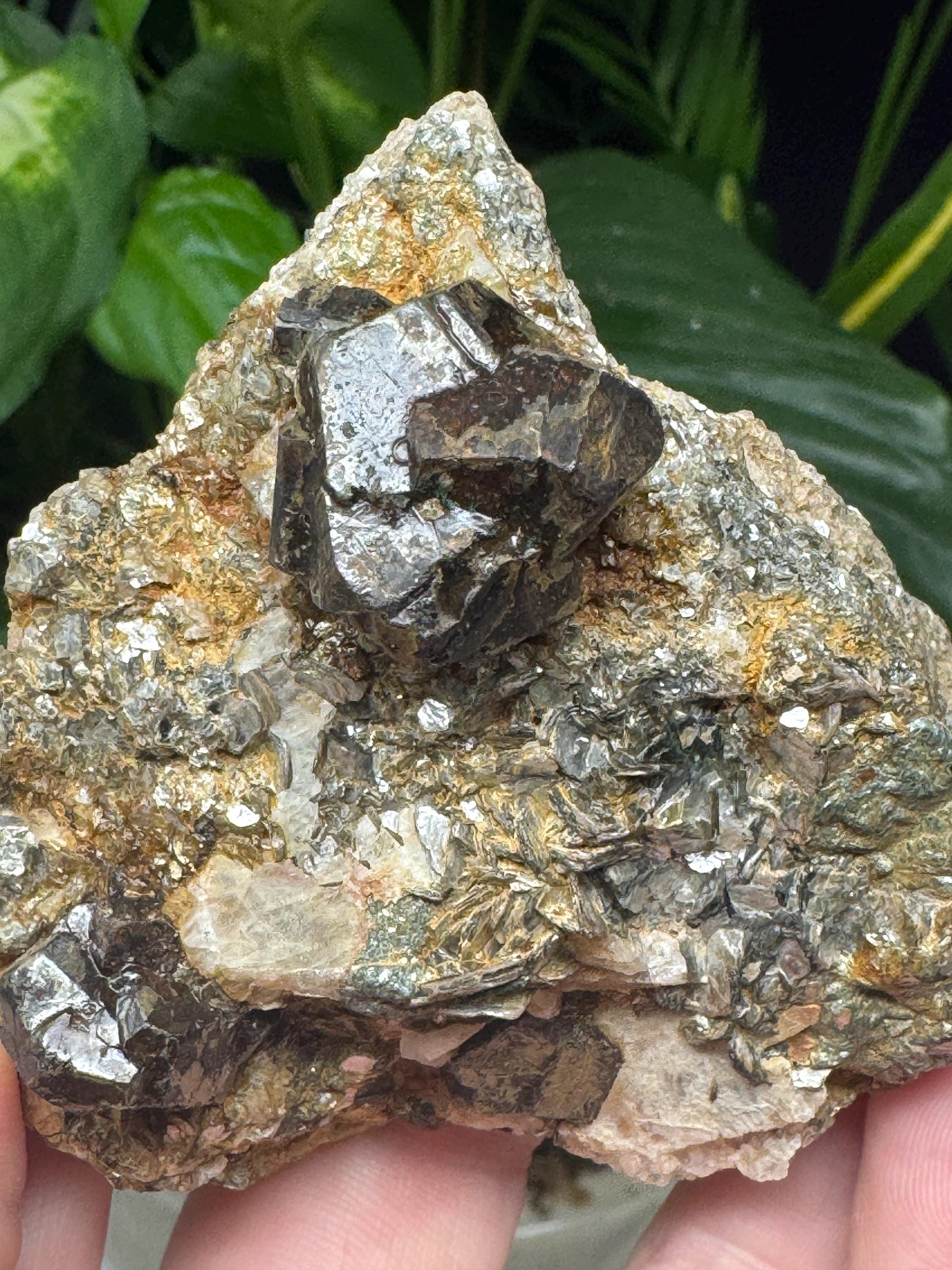 Almandine Garnet in Mica from Mitchell Ciuhty, North Carolina. Collected by Terry Ledford and comes with a mineral card.