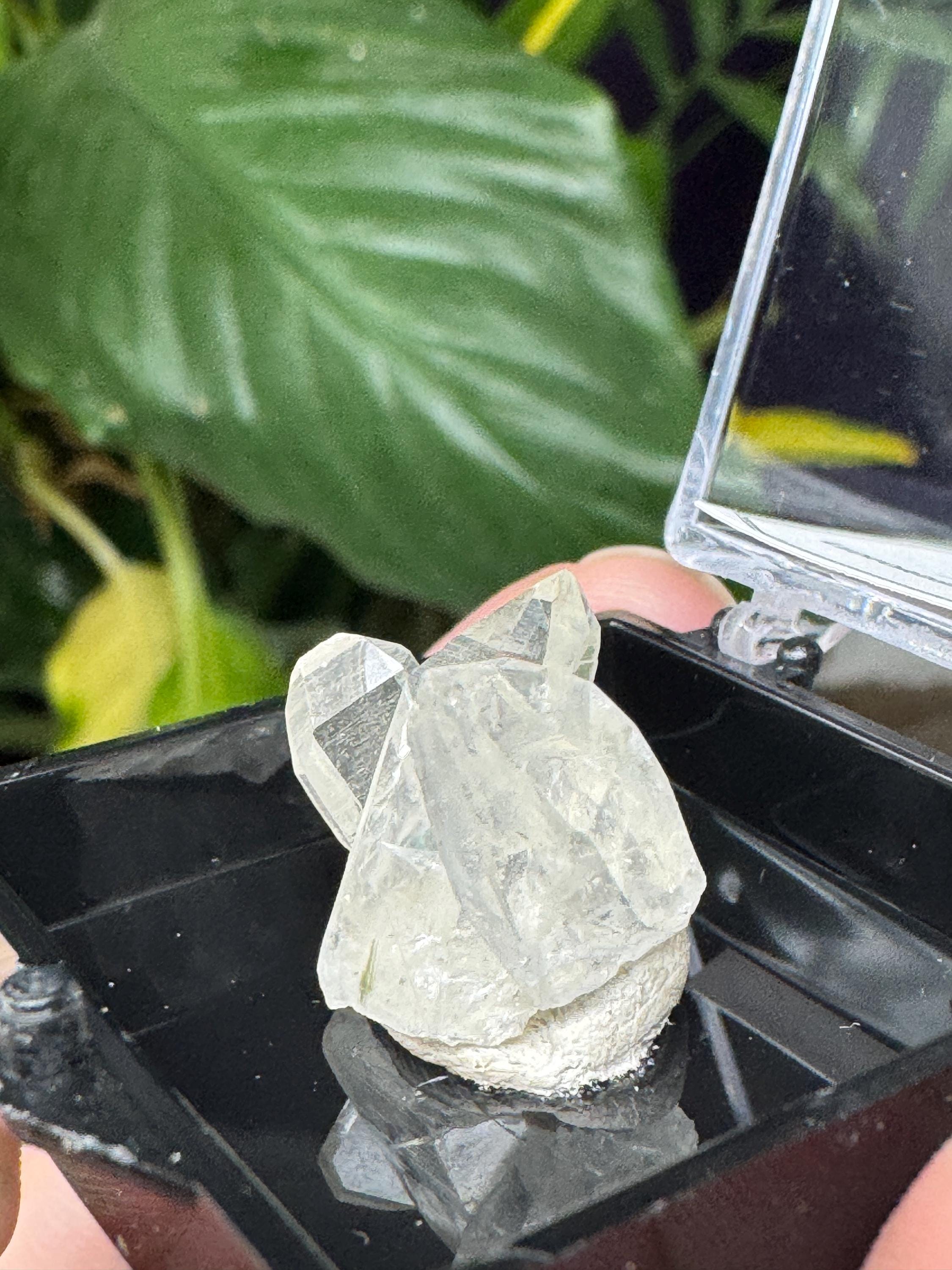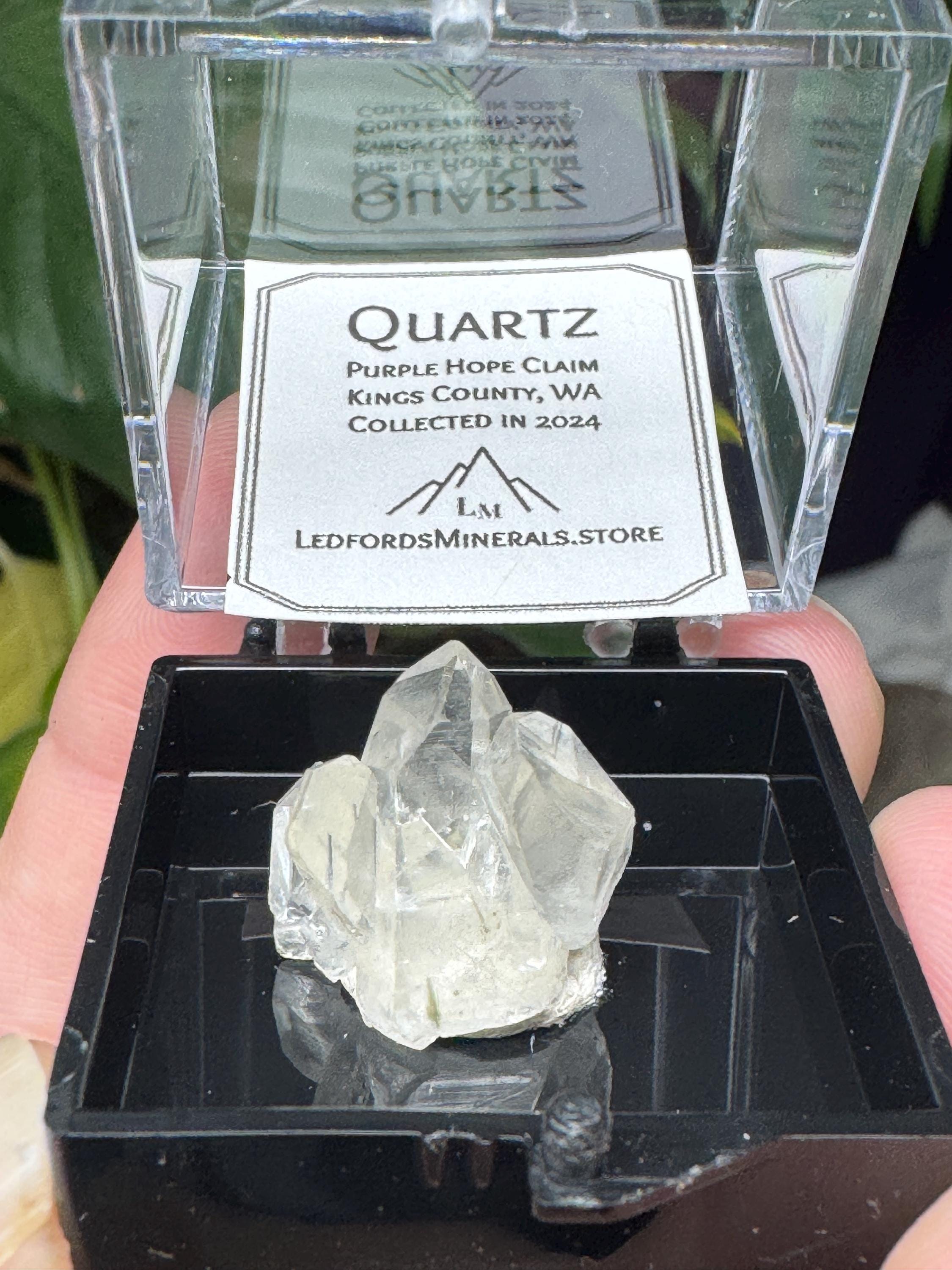Quartz with Pyrite Inclusions Thumbnail from Purple Hope Claim Kings County, WA. This piece has a perfect pyrite crystal suspended in top portion of the crystal. One of my favorites!