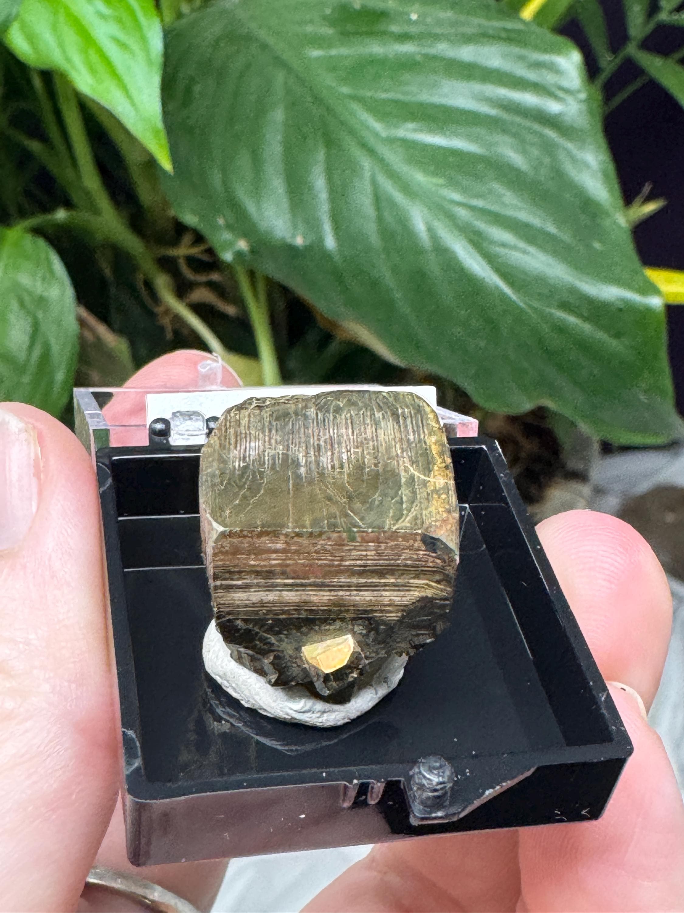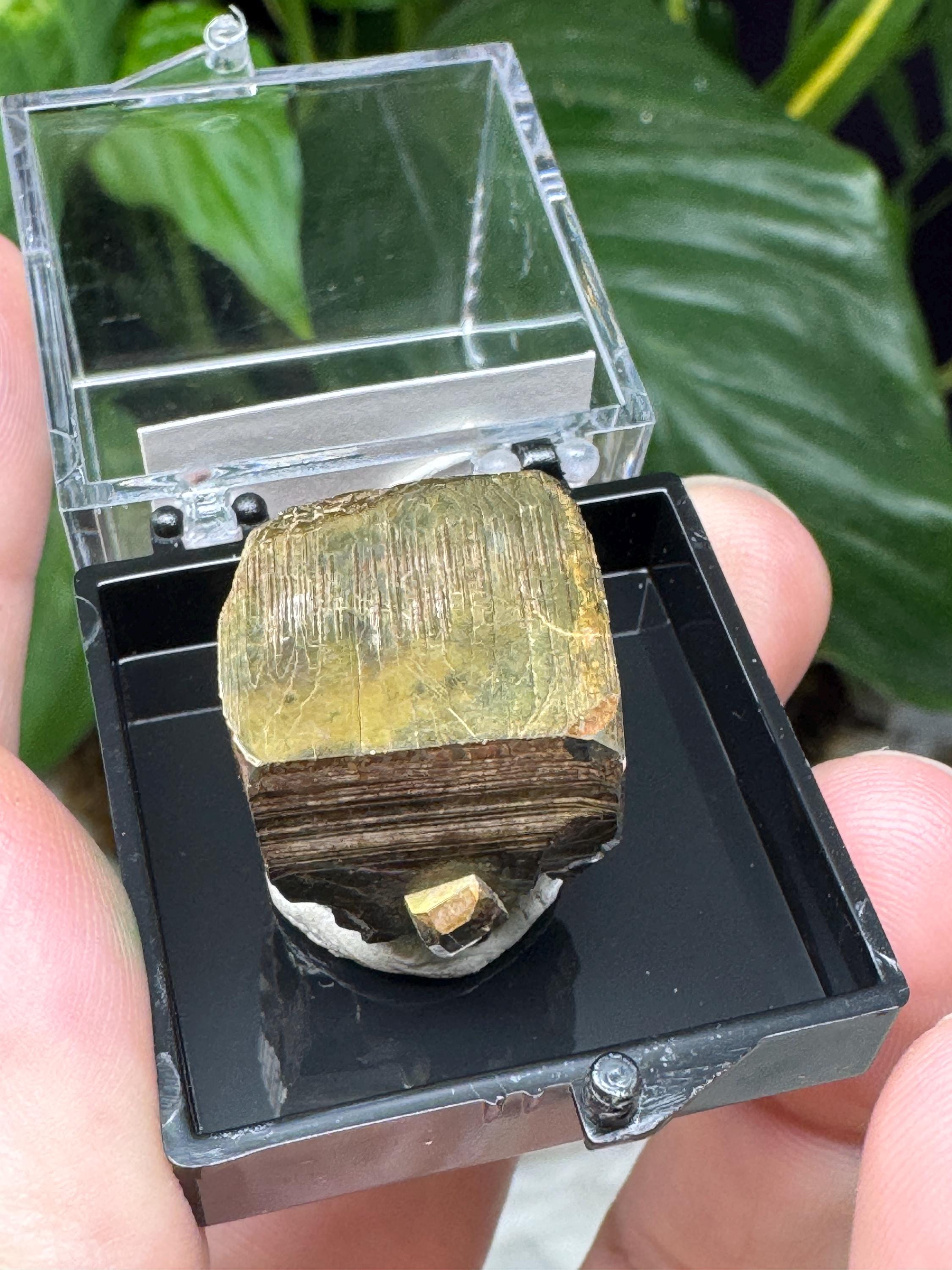 Pyrite Thumbnail from Purple Hope Claim Kings County, WA. Collected in 2024 and comes with a mineral card. Comes in a 1” perky box.