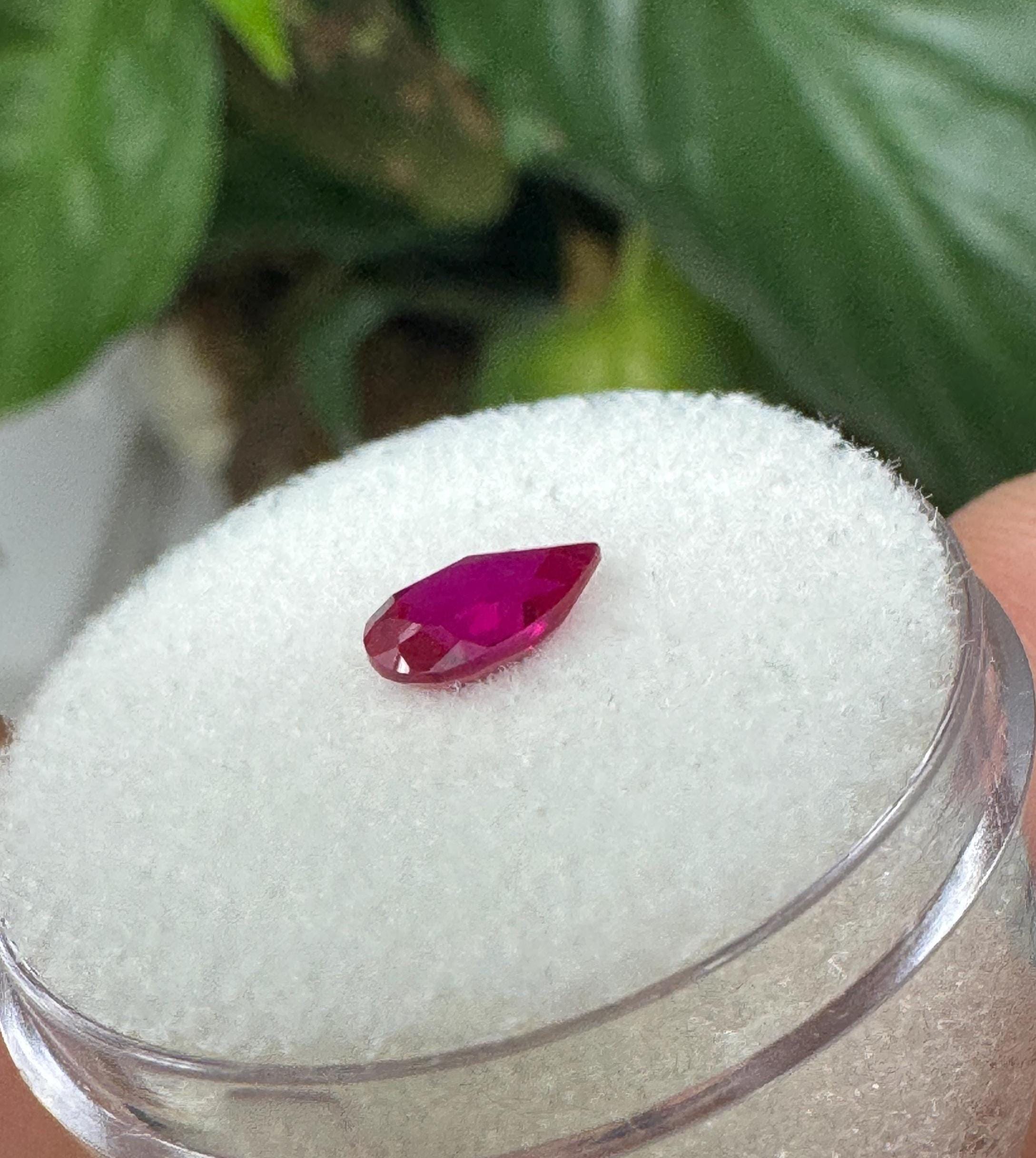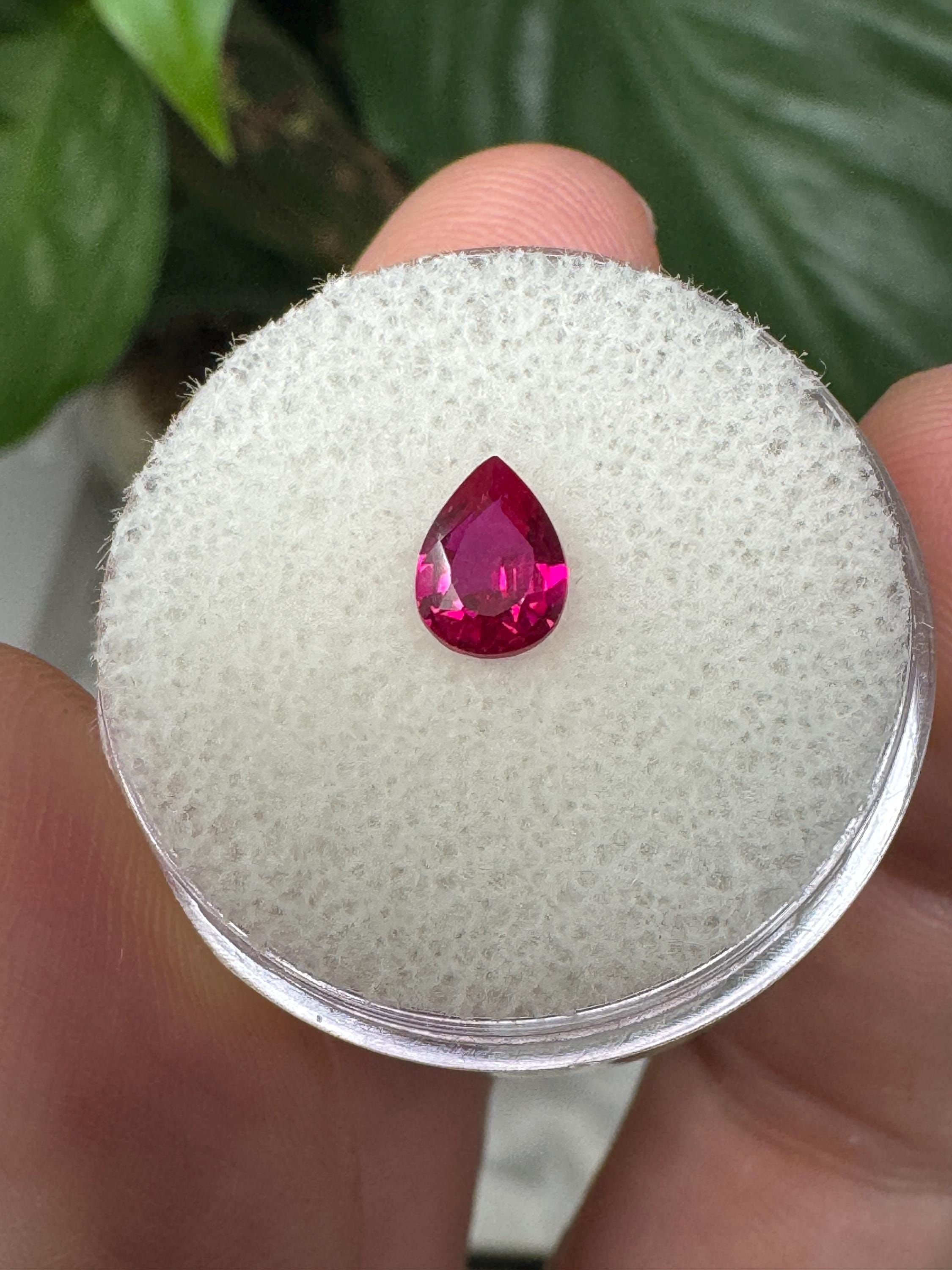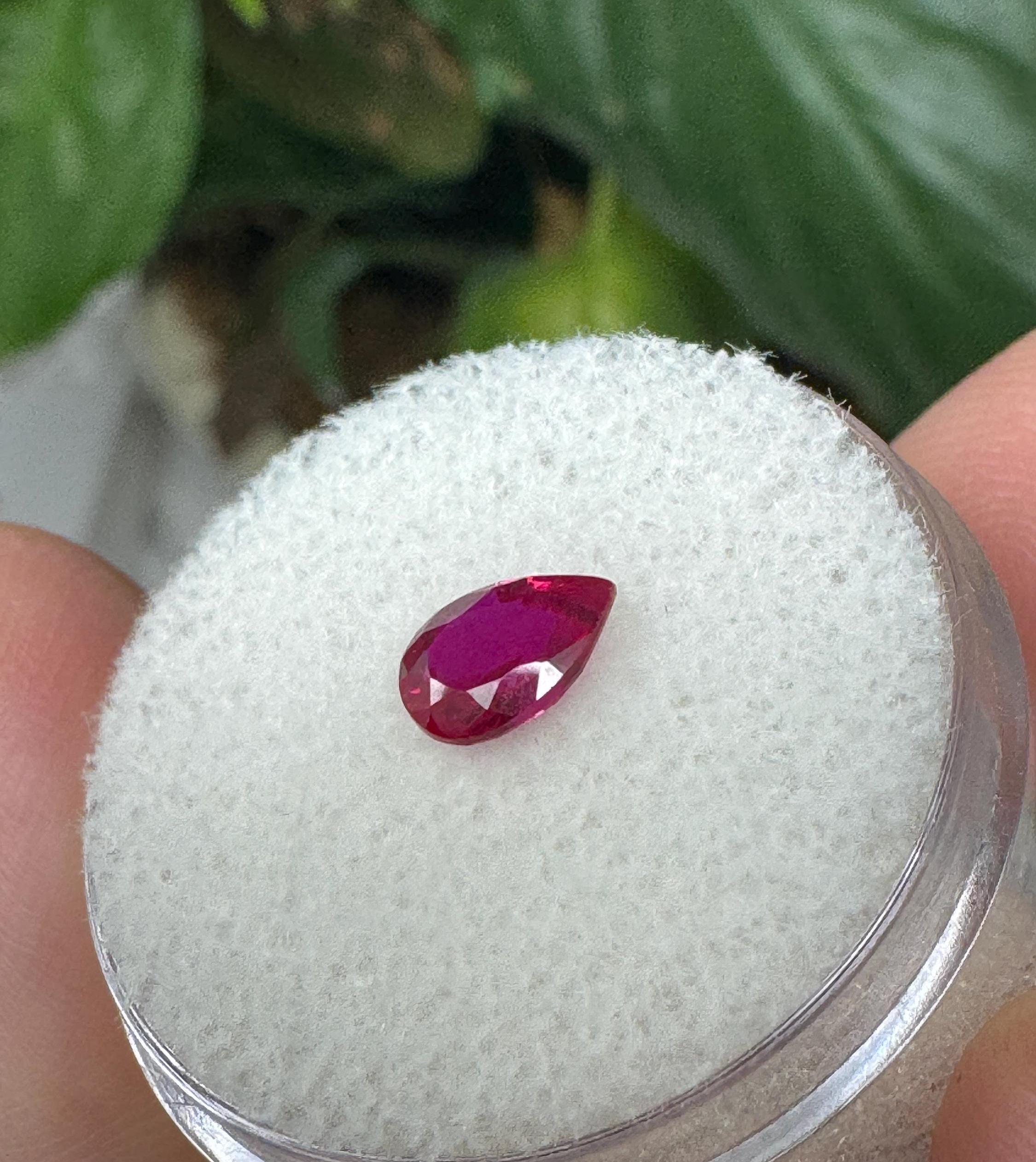 Beautiful Lab Created Ruby. Teardrop Cut. .80 ct