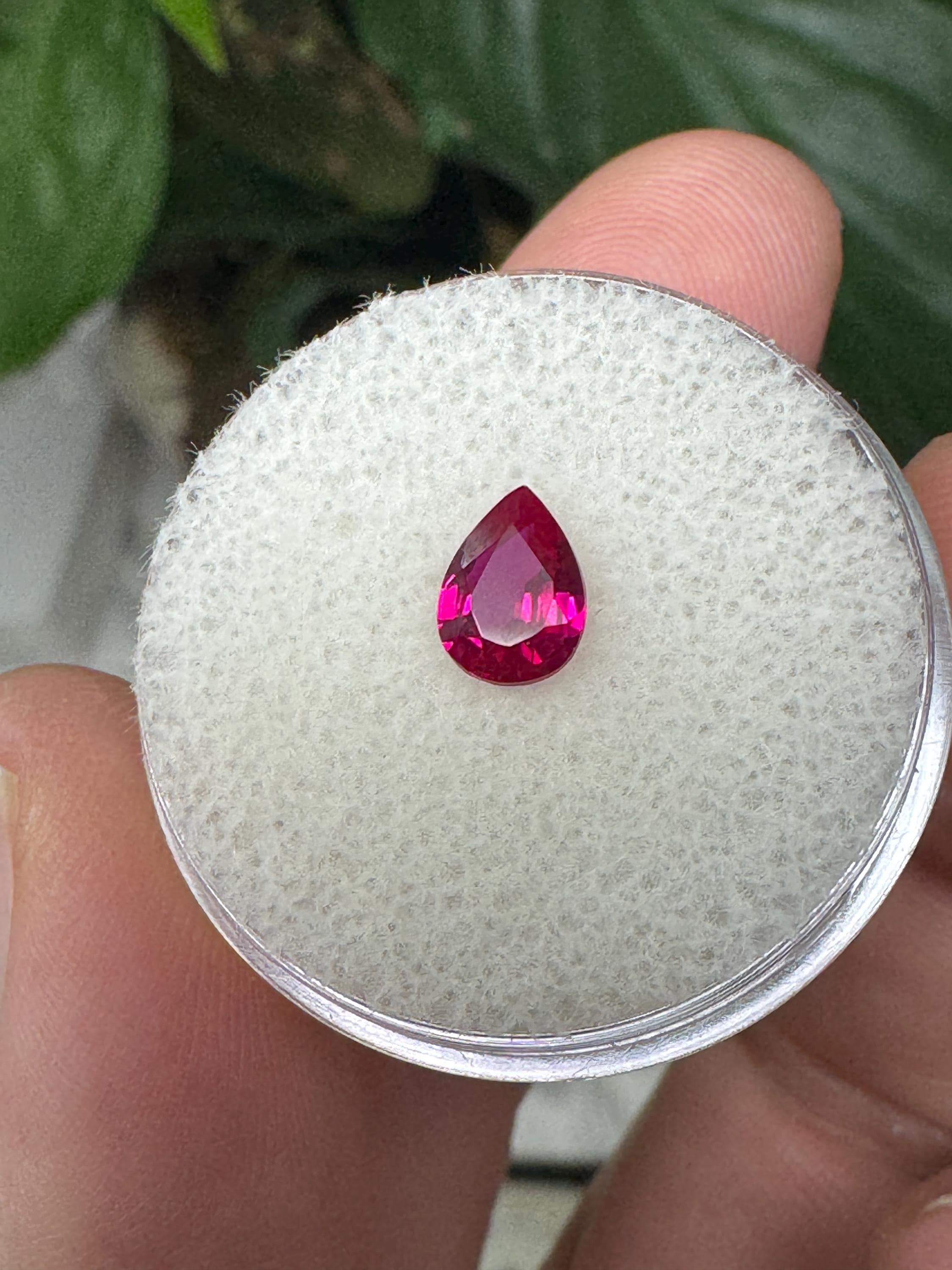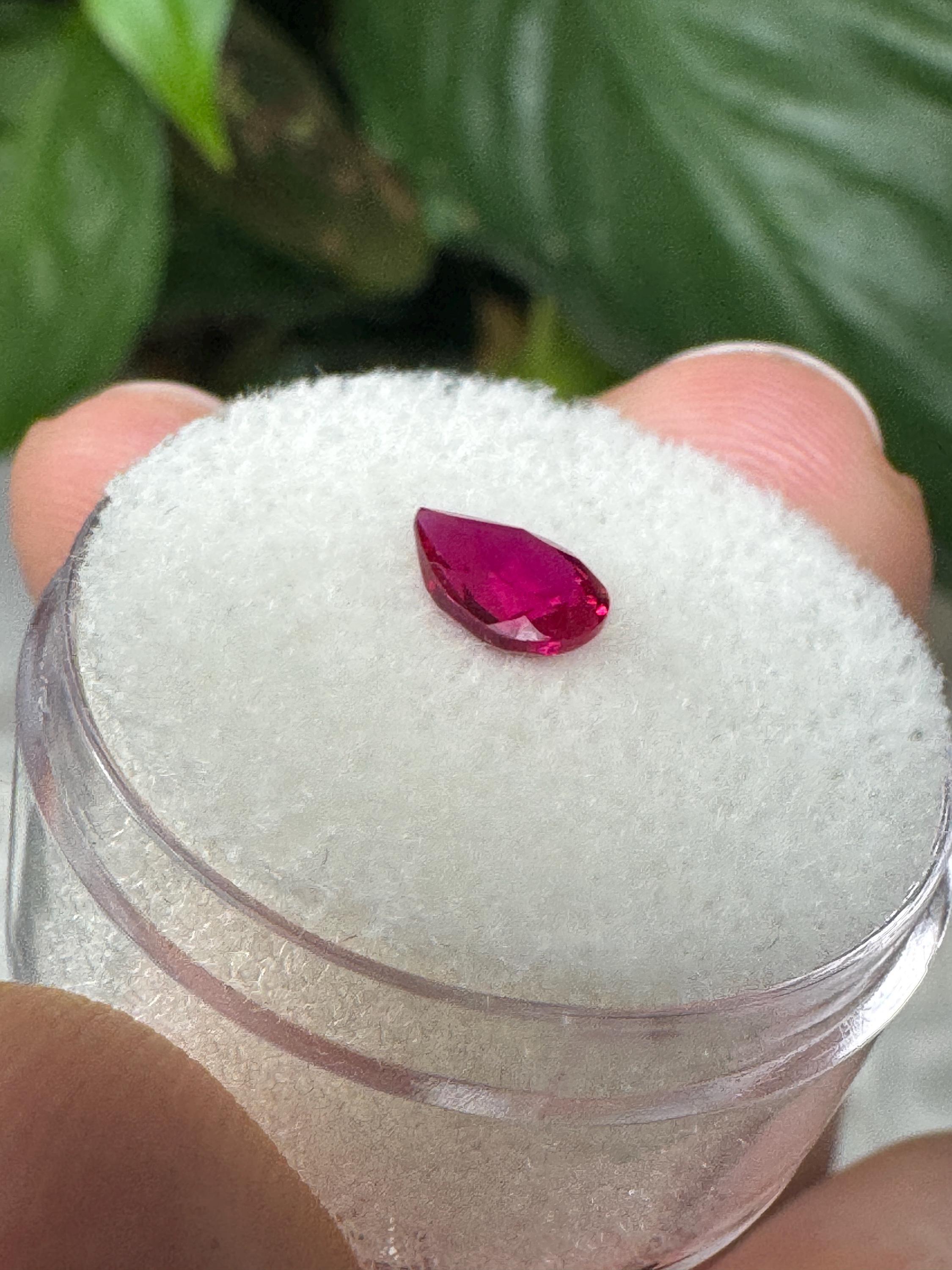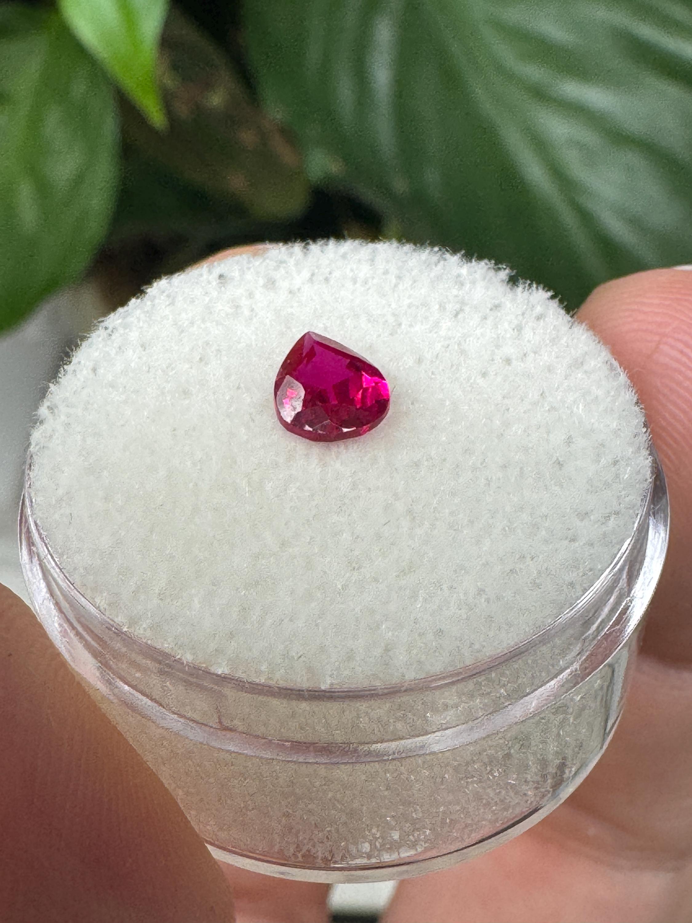 Beautiful Lab Created Ruby. Teardrop Cut. .80 ct
