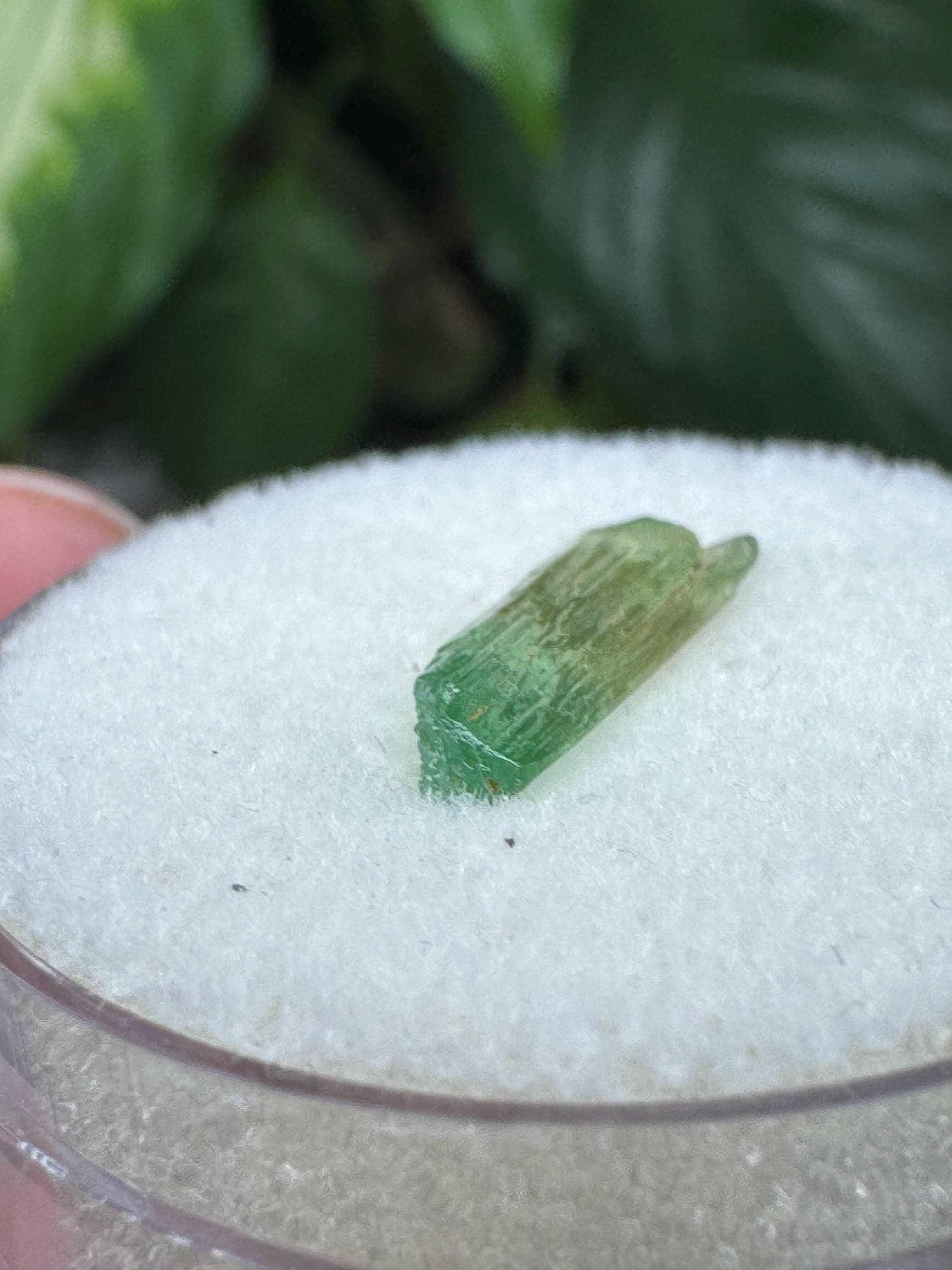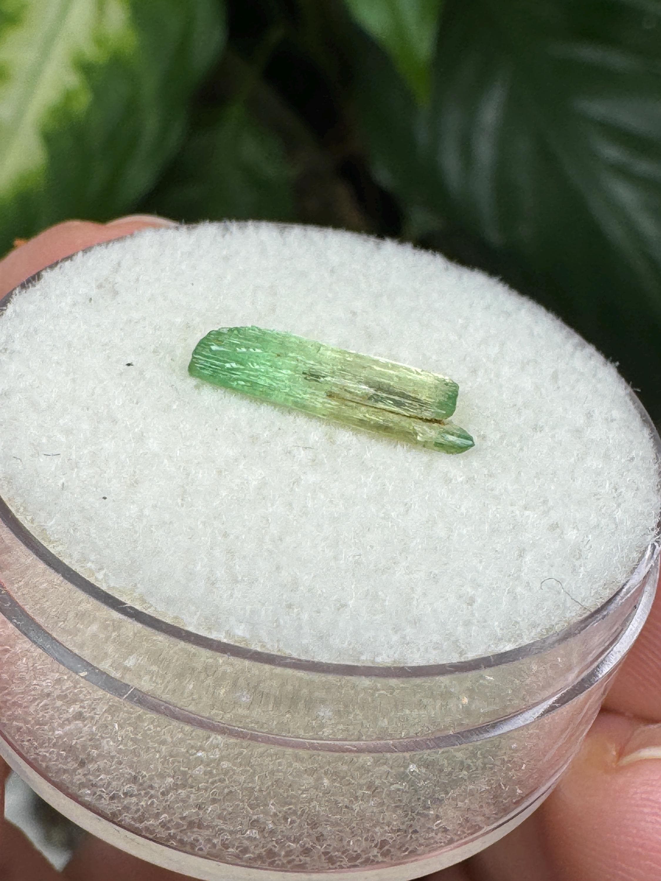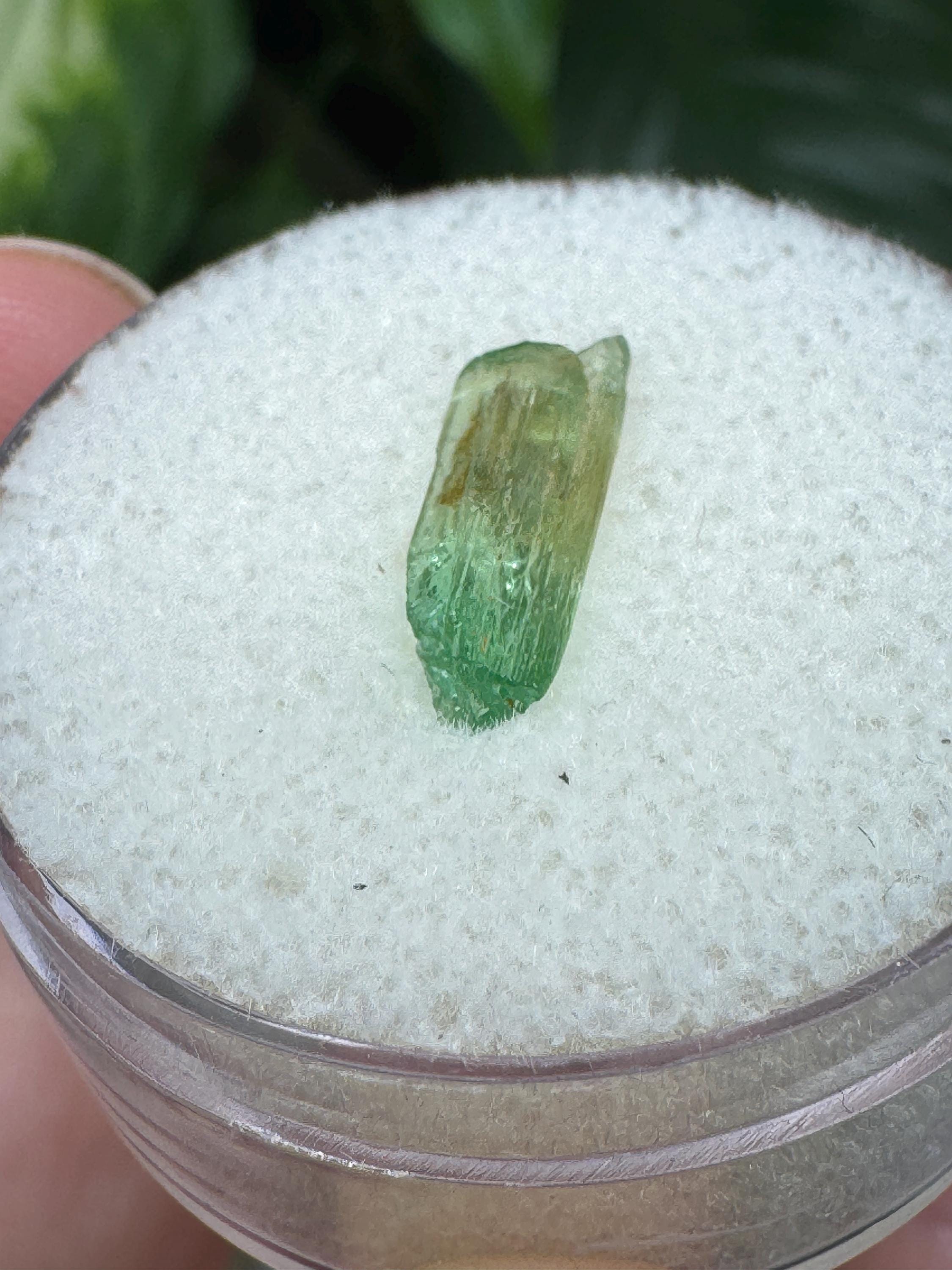 Beautiful Hiddenite from Hiddenite NC, Adams Farm. Good size, color, and good terminations. Mined by Terry Ledford in 2007. Comes in a 1" case. 2ct. 1.4cmAll minerals come with a collection card.