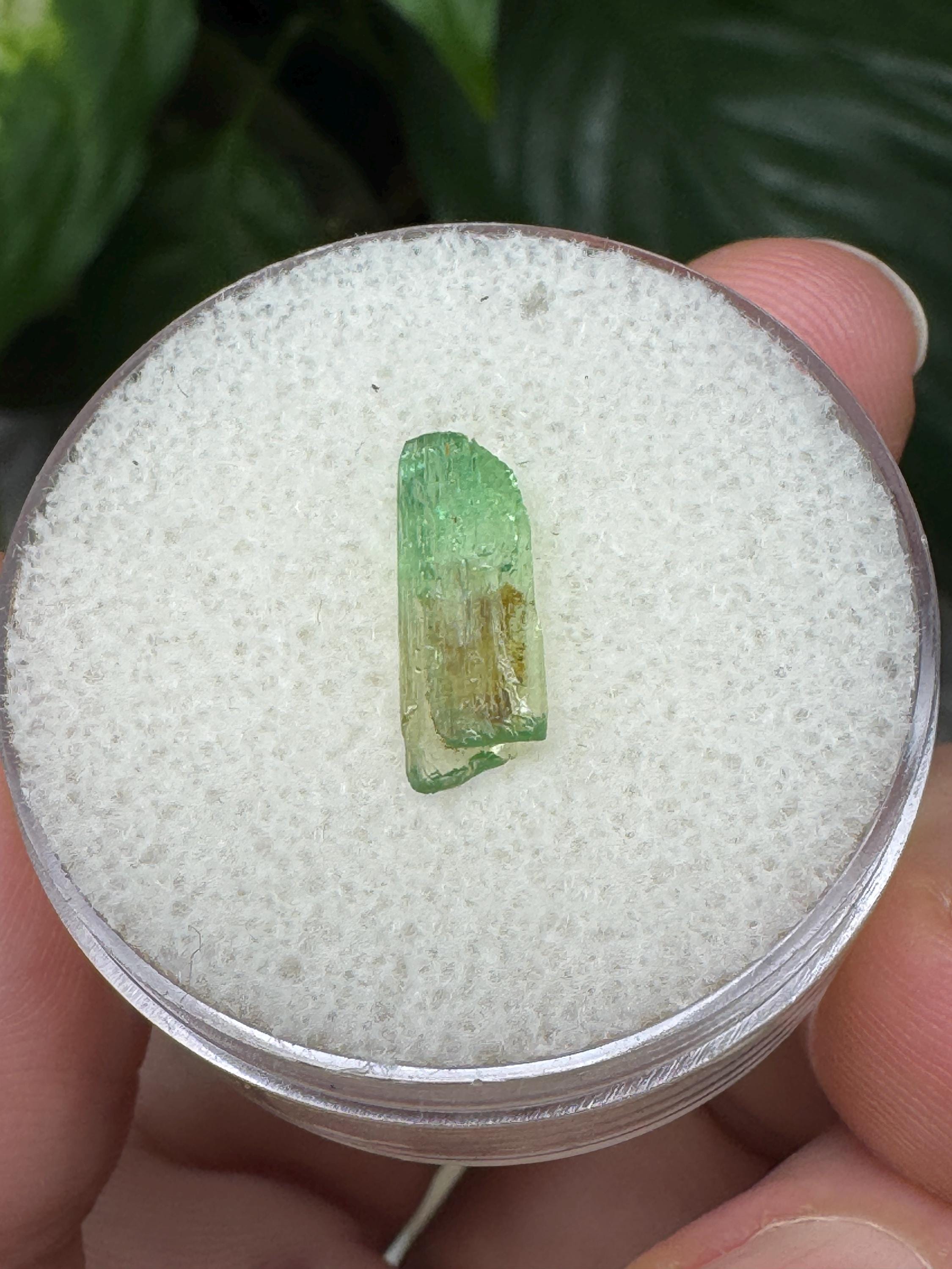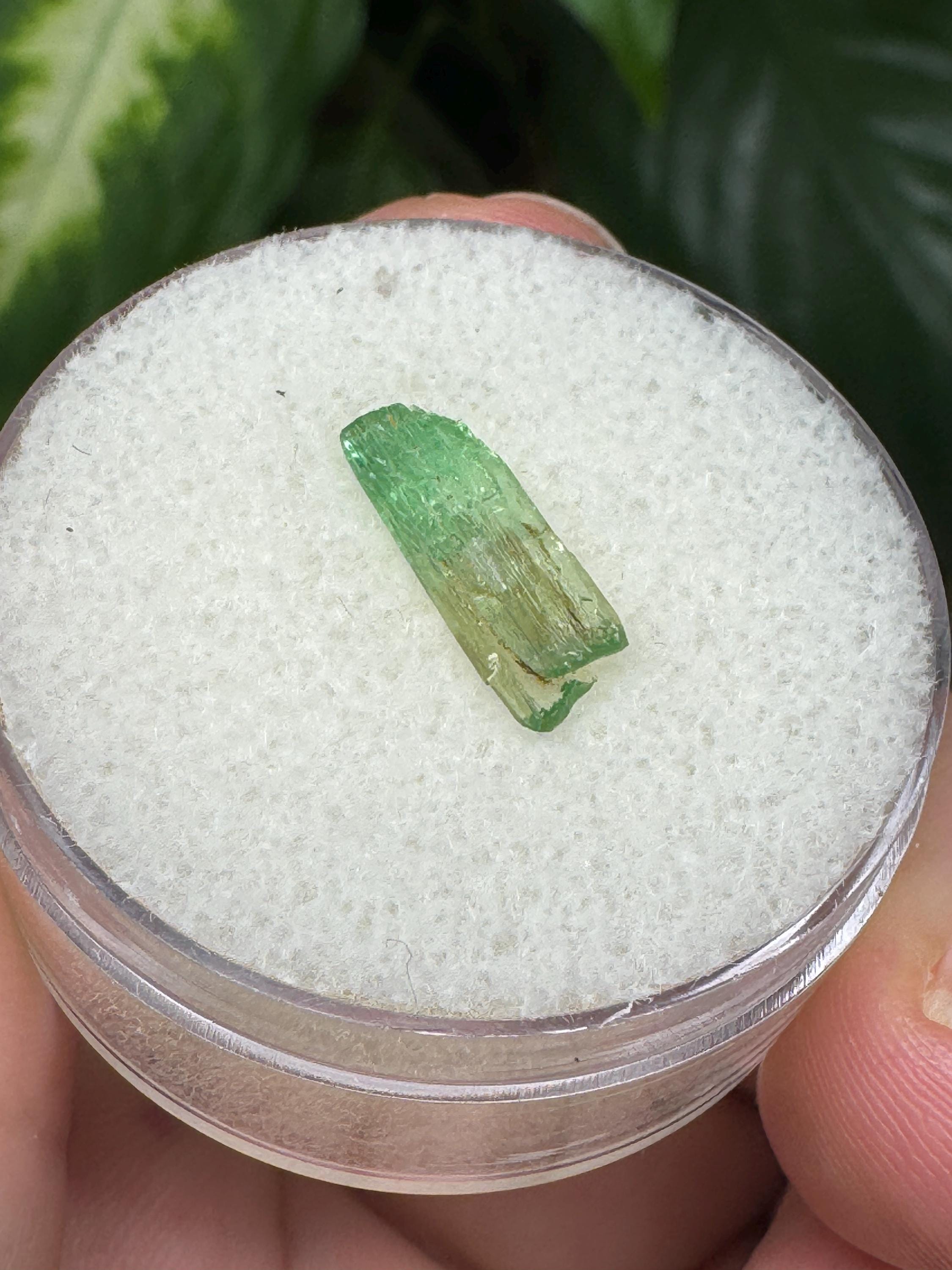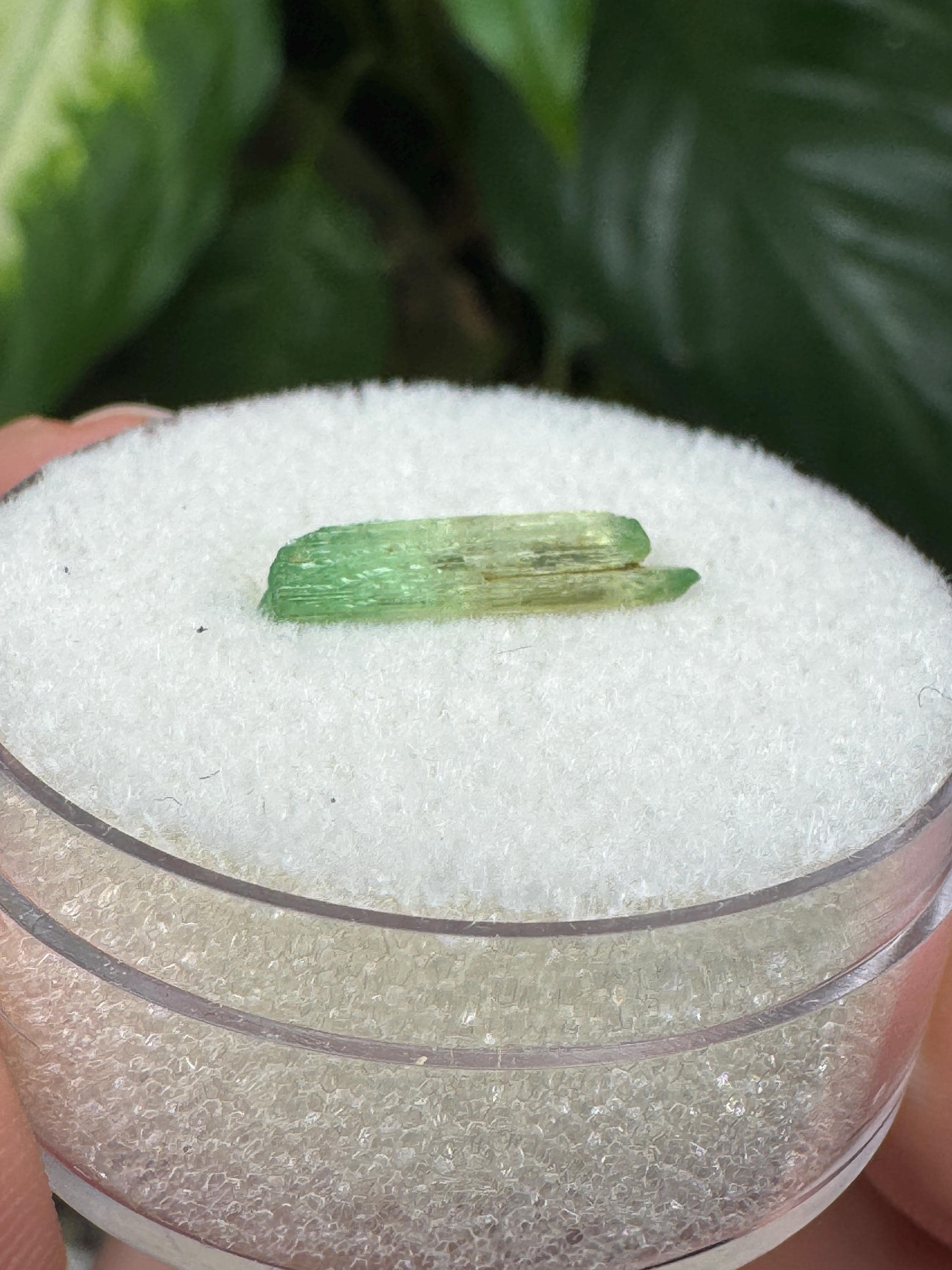 Beautiful Hiddenite from Hiddenite NC, Adams Farm. Good size, color, and good terminations. Mined by Terry Ledford in 2007. Comes in a 1" case. 2ct. 1.4cmAll minerals come with a collection card.