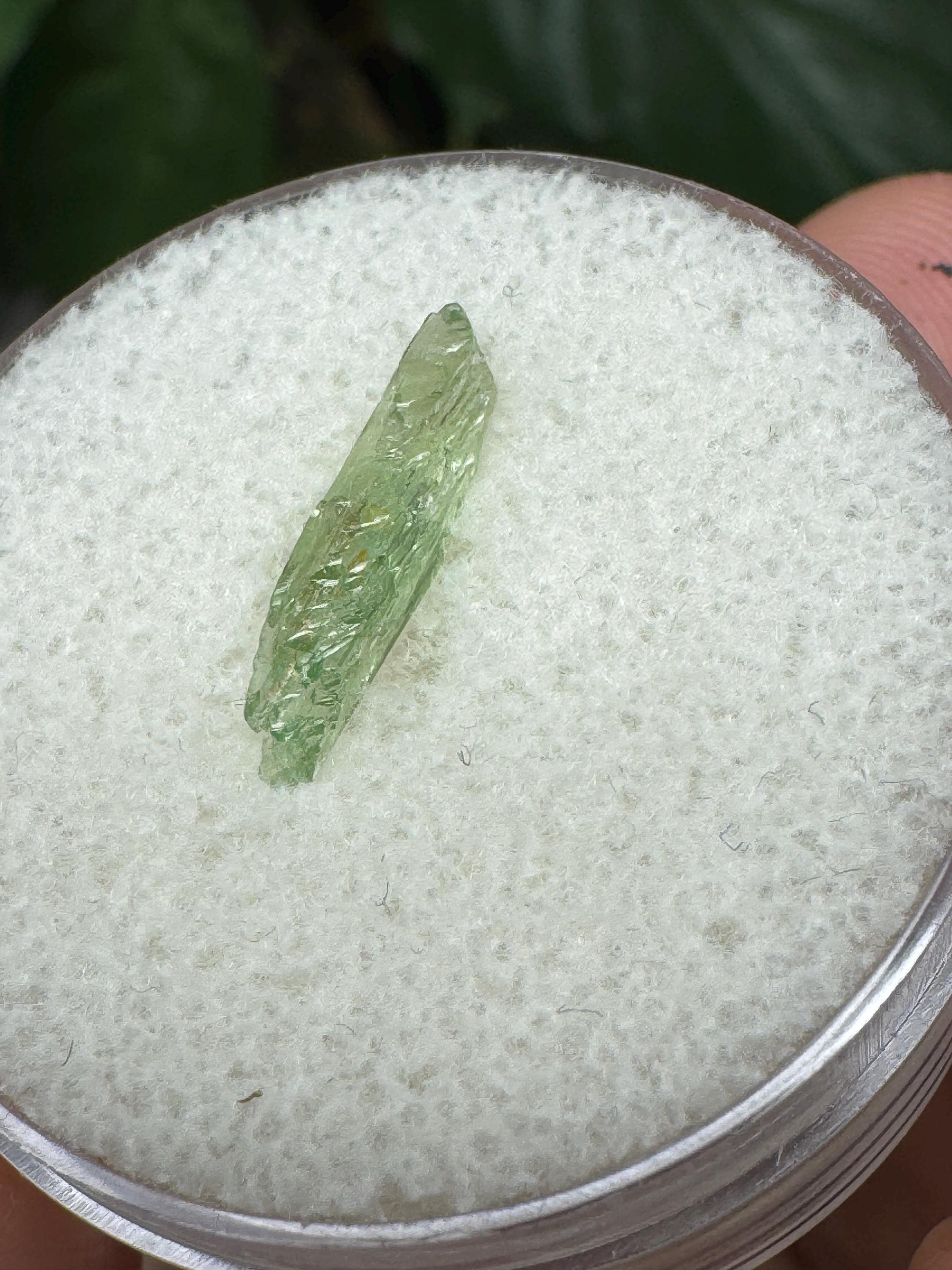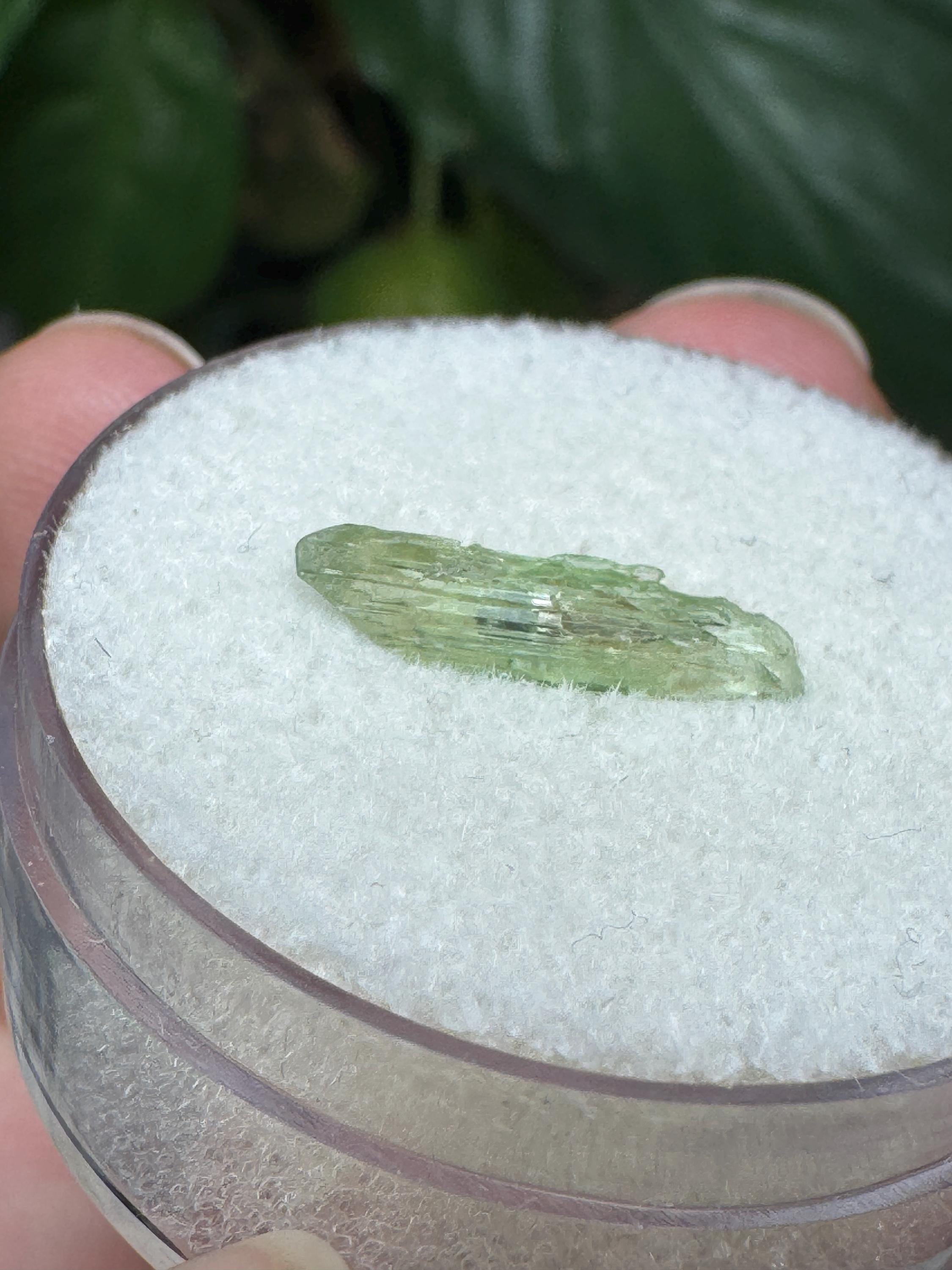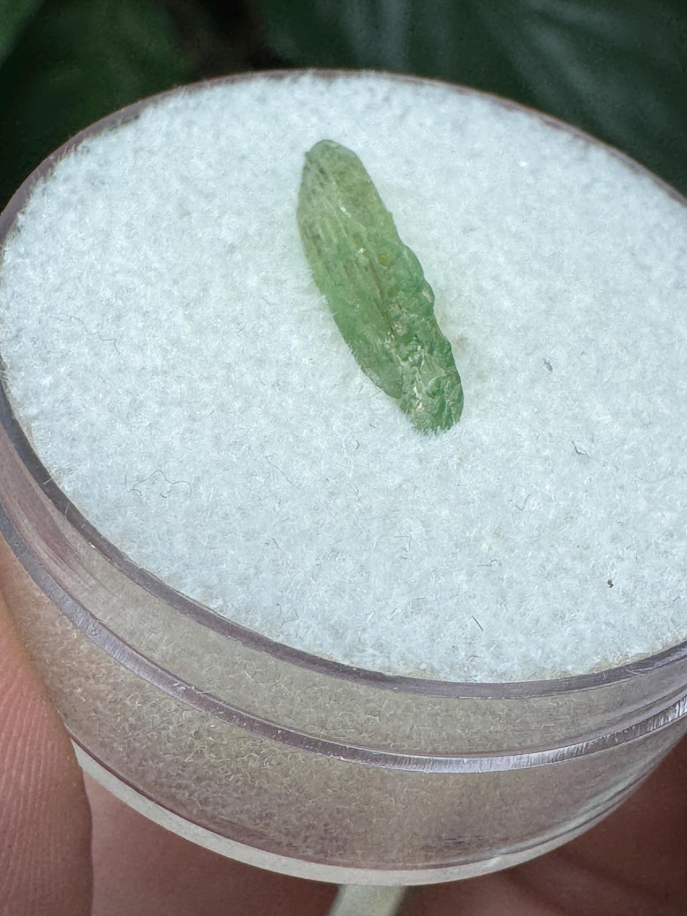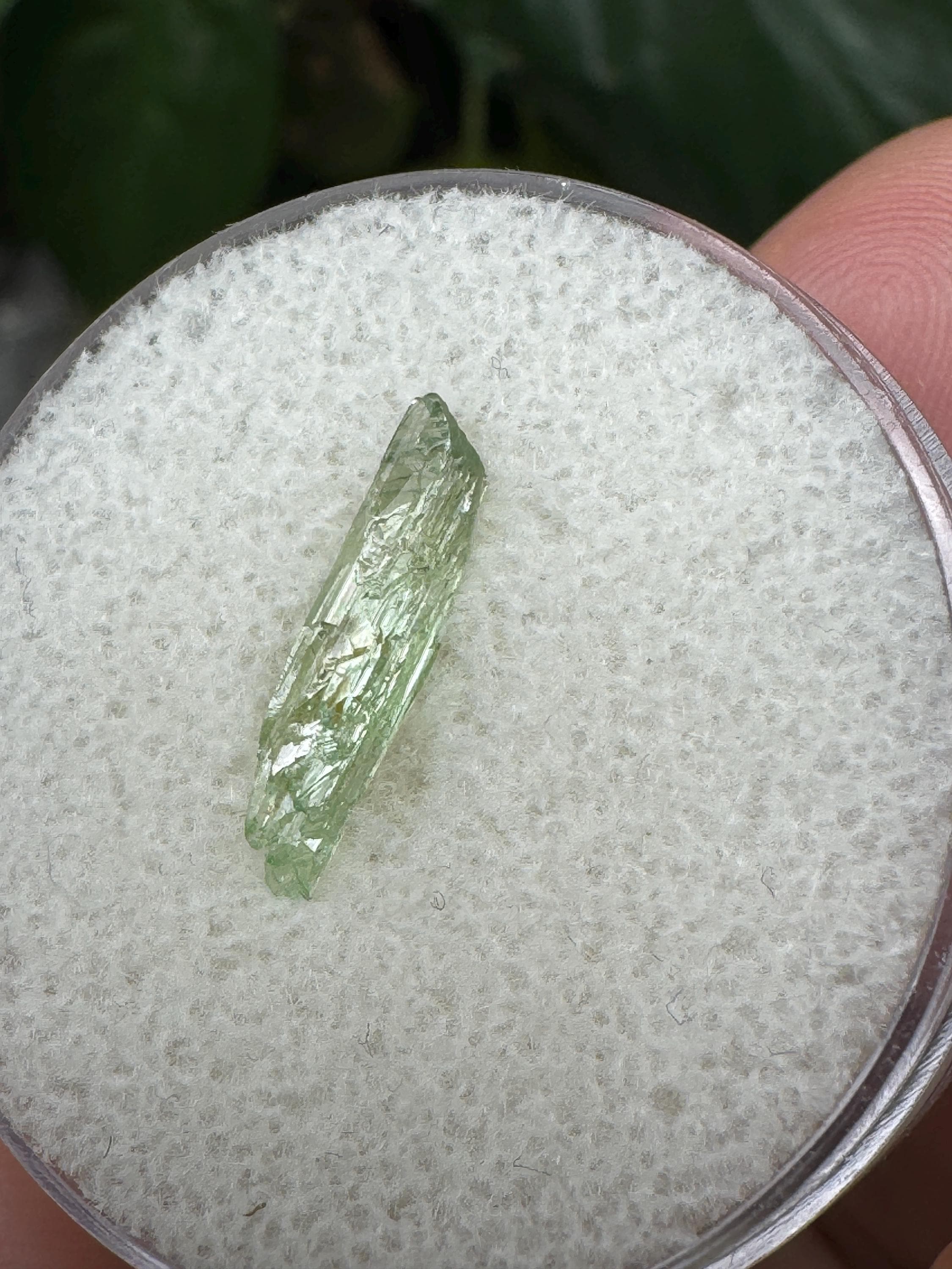 Beautiful Hiddenite from Hiddenite NC, Adams Farm. Good size and terminations. Mined by Terry Ledford in 2007. Comes in a 1" case. 1.5ct. 1.5cmAll minerals come with a collection card.