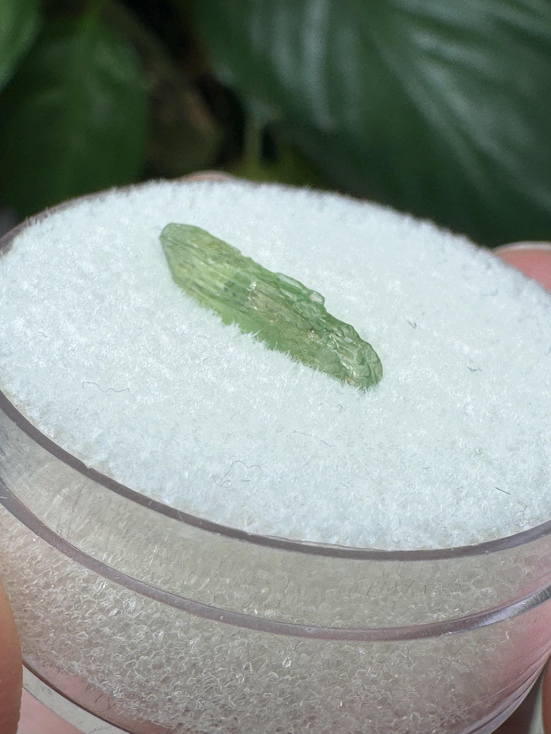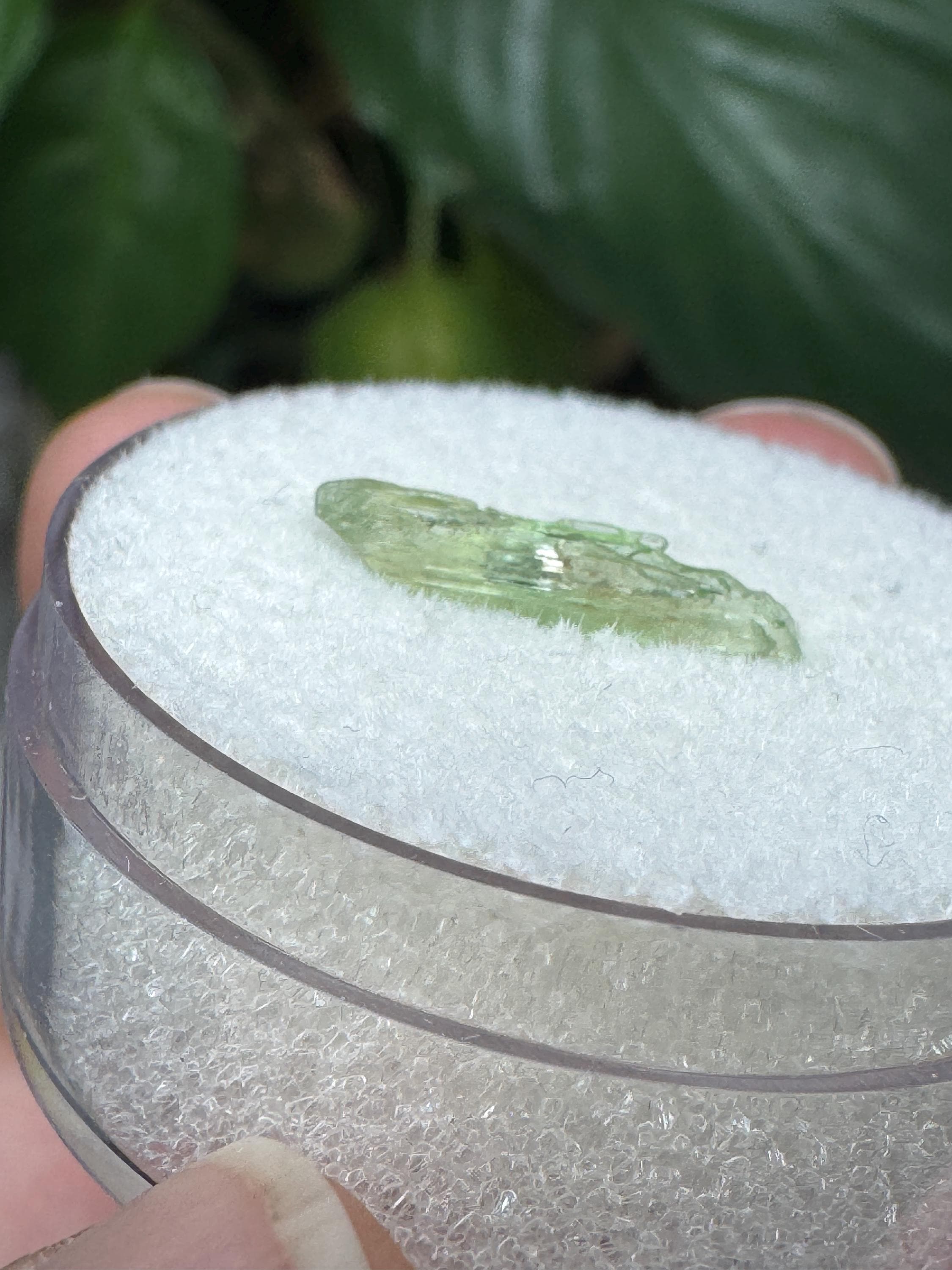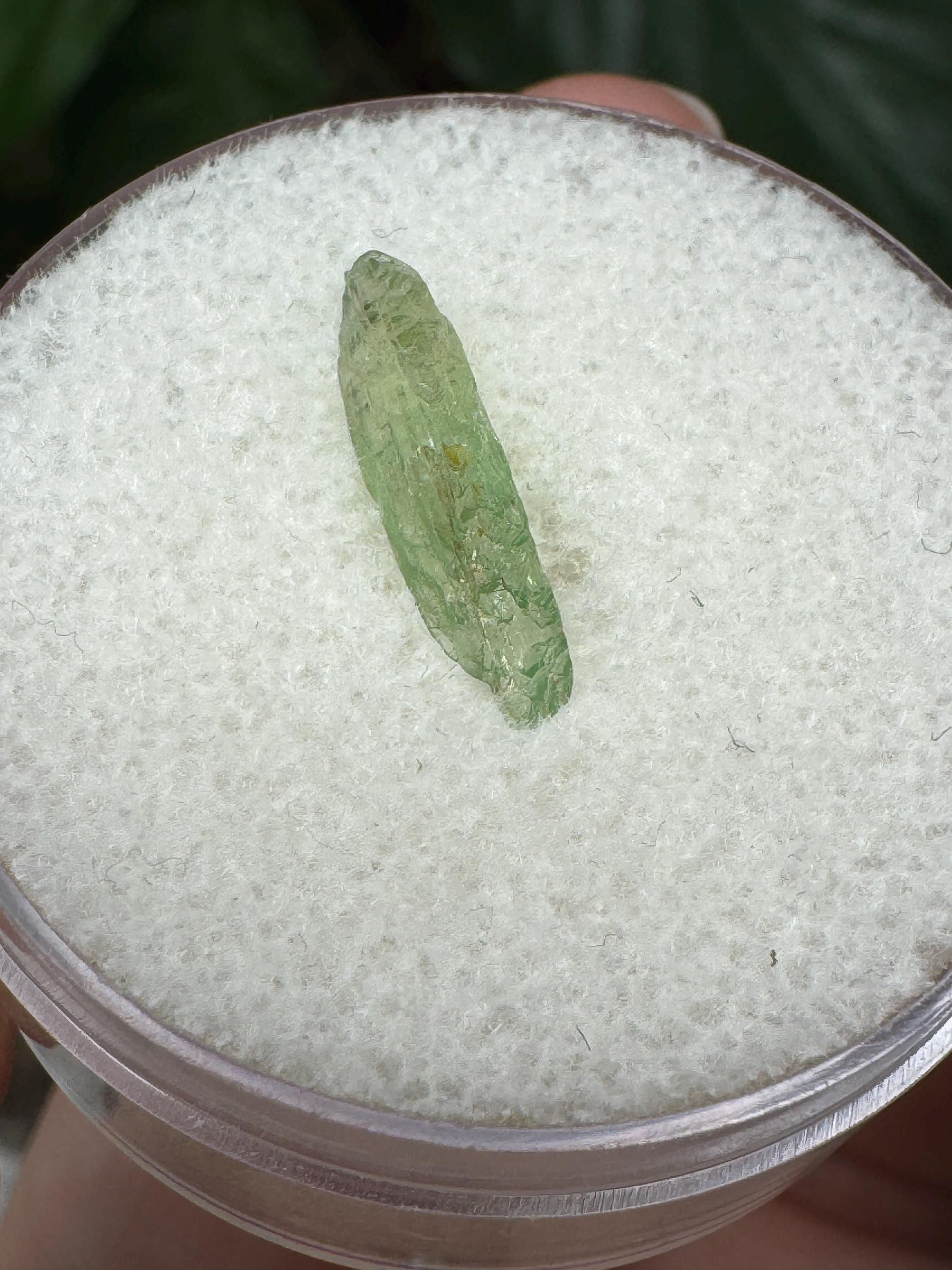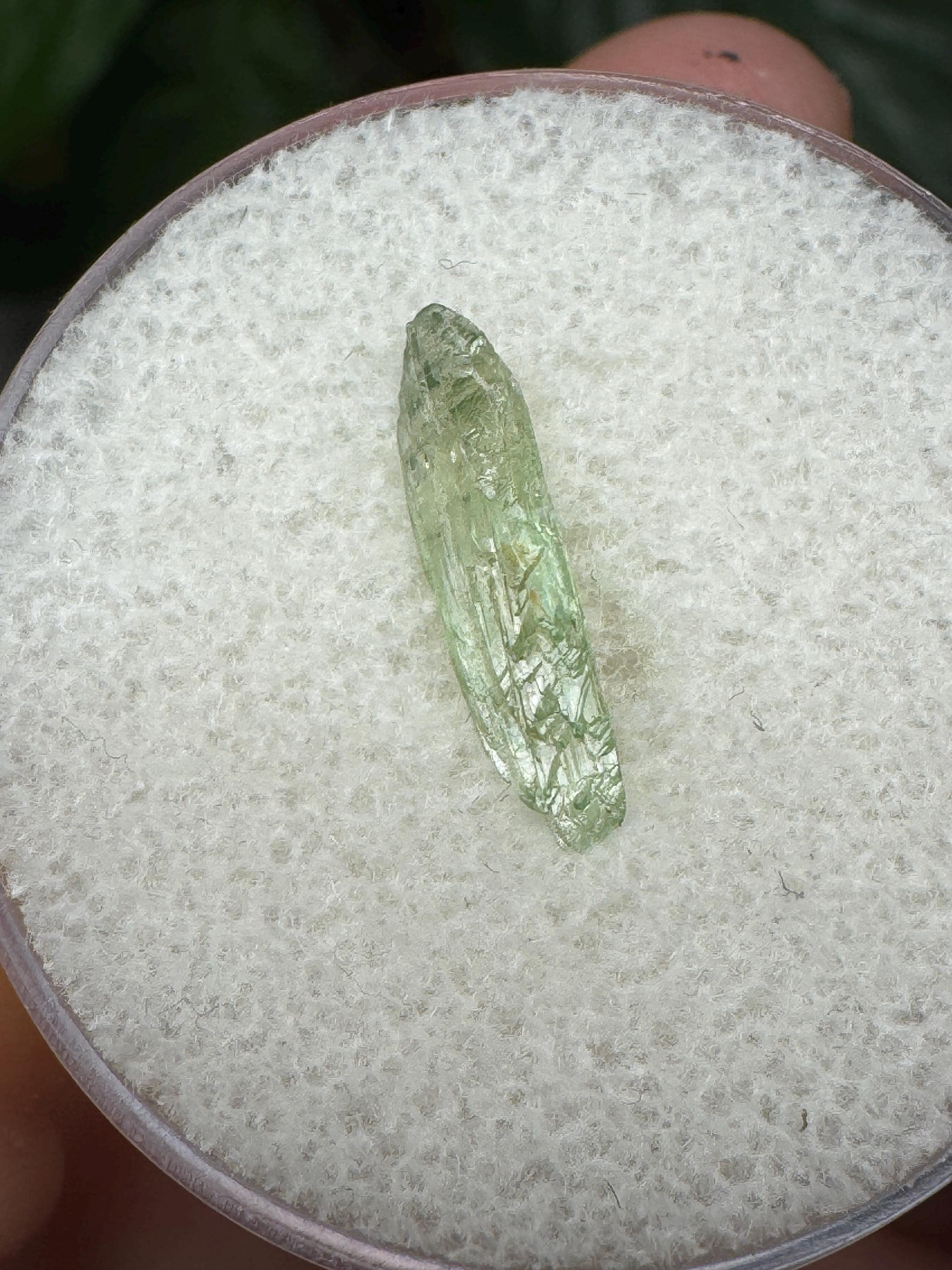 Beautiful Hiddenite from Hiddenite NC, Adams Farm. Good size and terminations. Mined by Terry Ledford in 2007. Comes in a 1" case. 1.5ct. 1.5cmAll minerals come with a collection card.