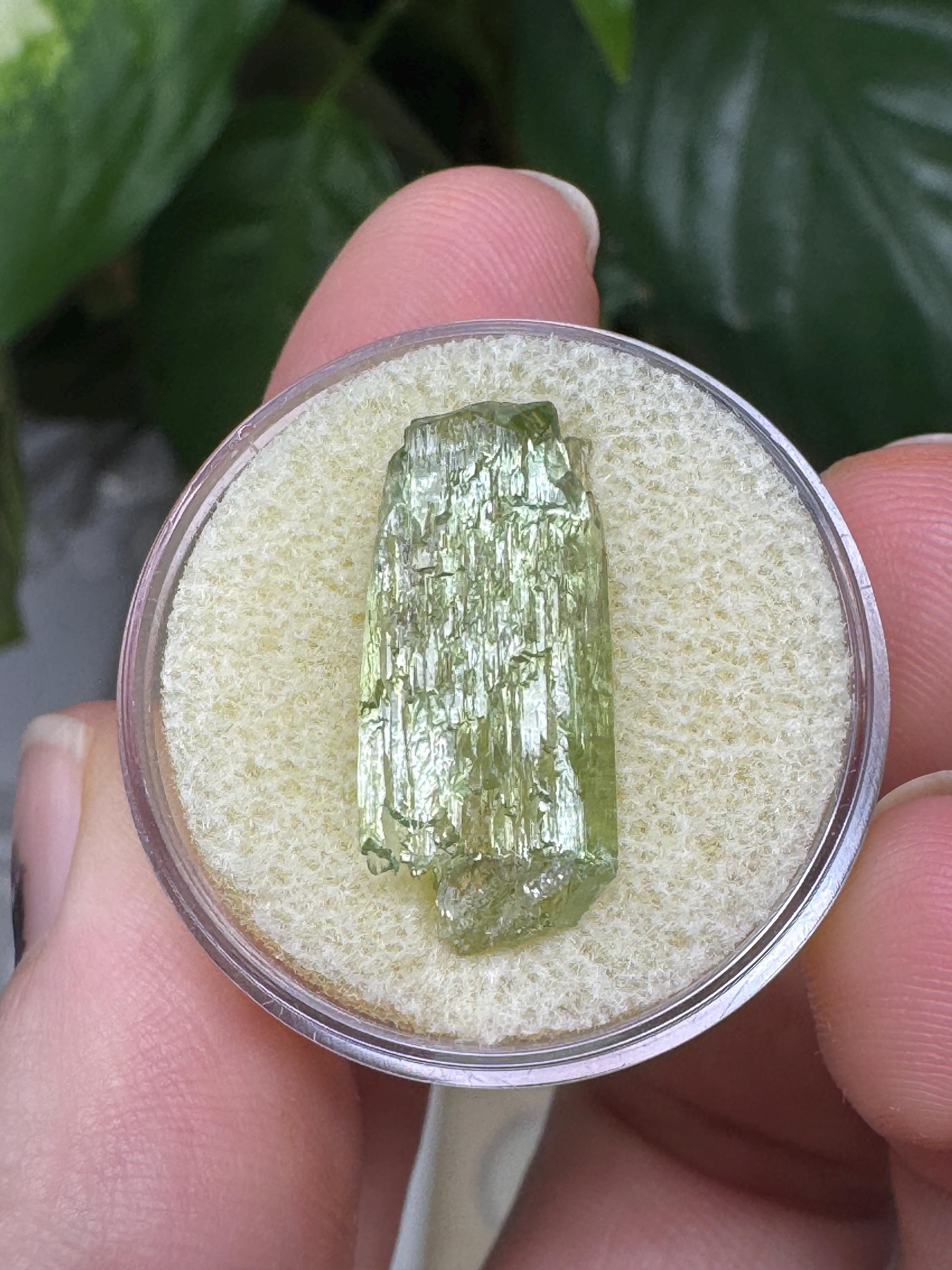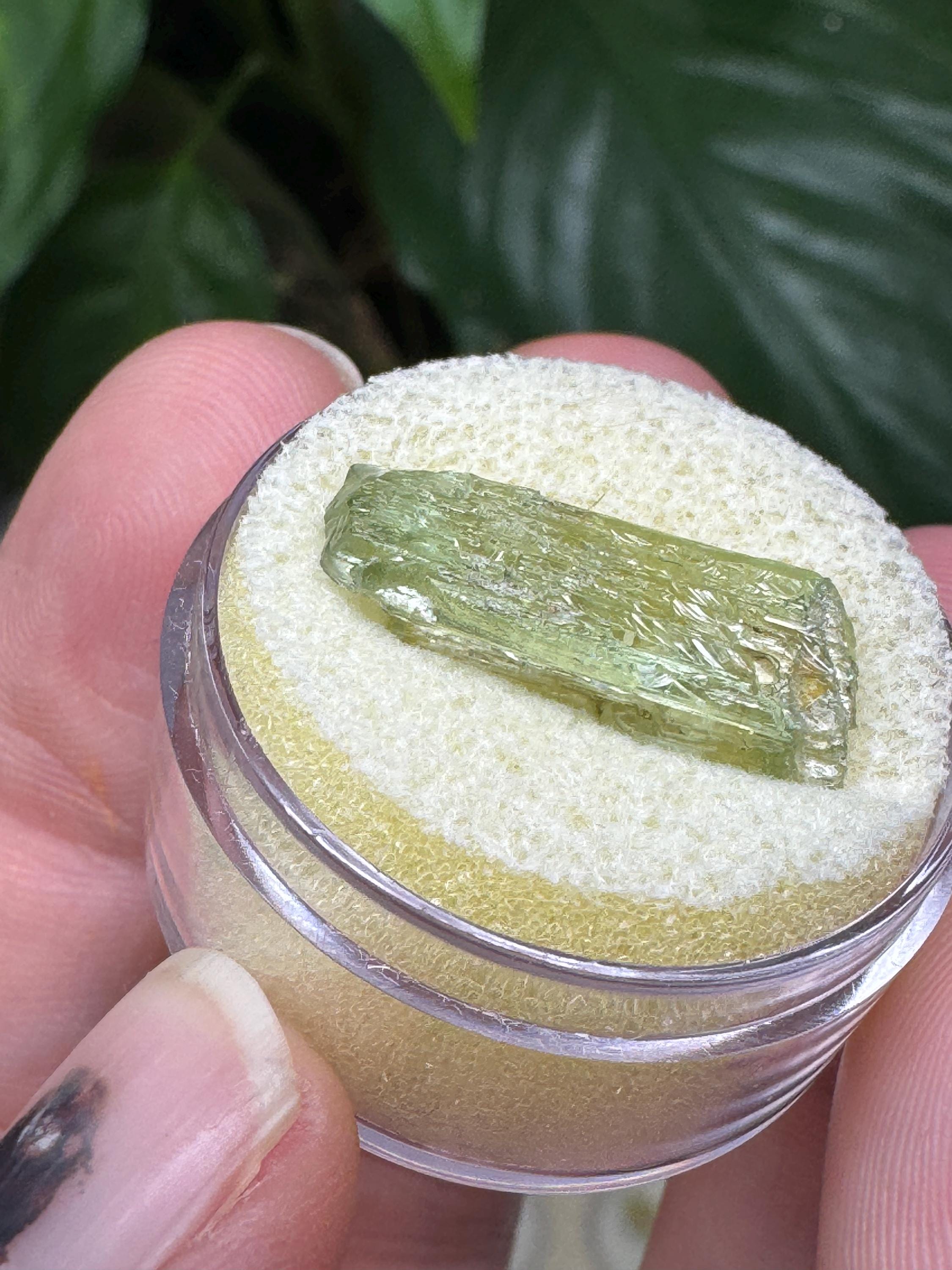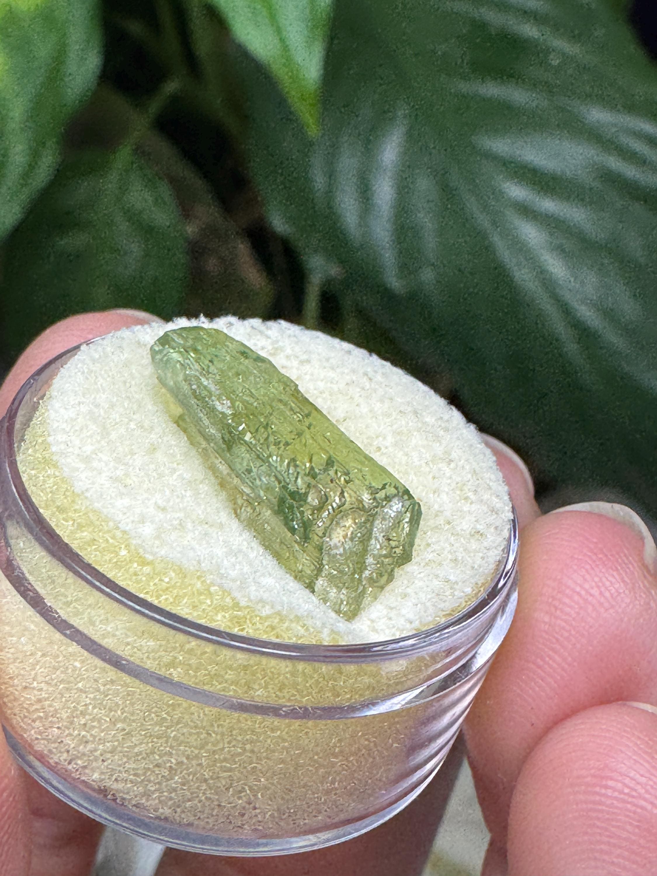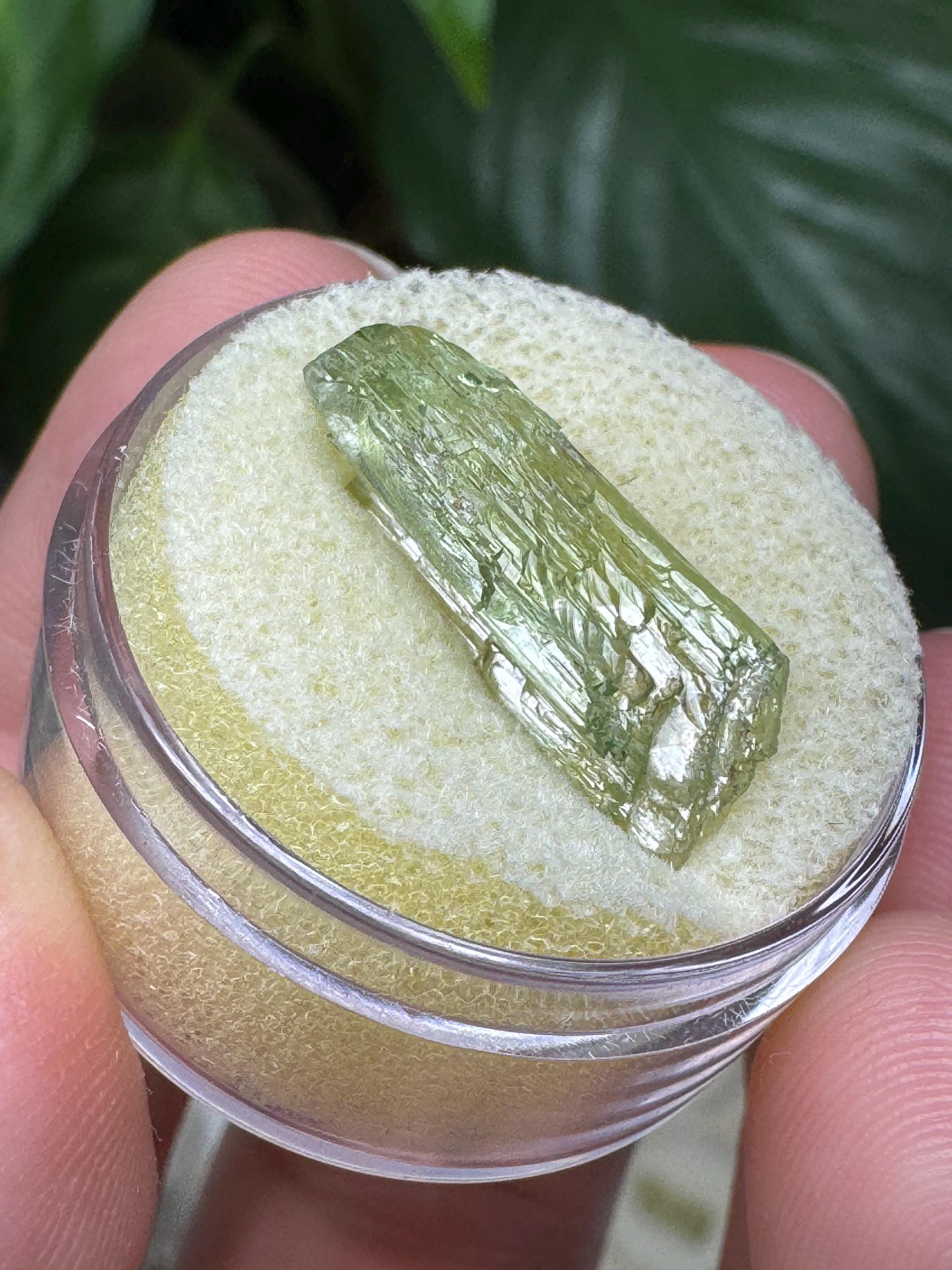 Beautiful Hiddenite from Hiddenite NC, Adams Farm. Good size and terminations. Mined by Terry Ledford in 2007. Comes in a .5" case. 8.25ct. 2cmAll minerals come with a collection card.