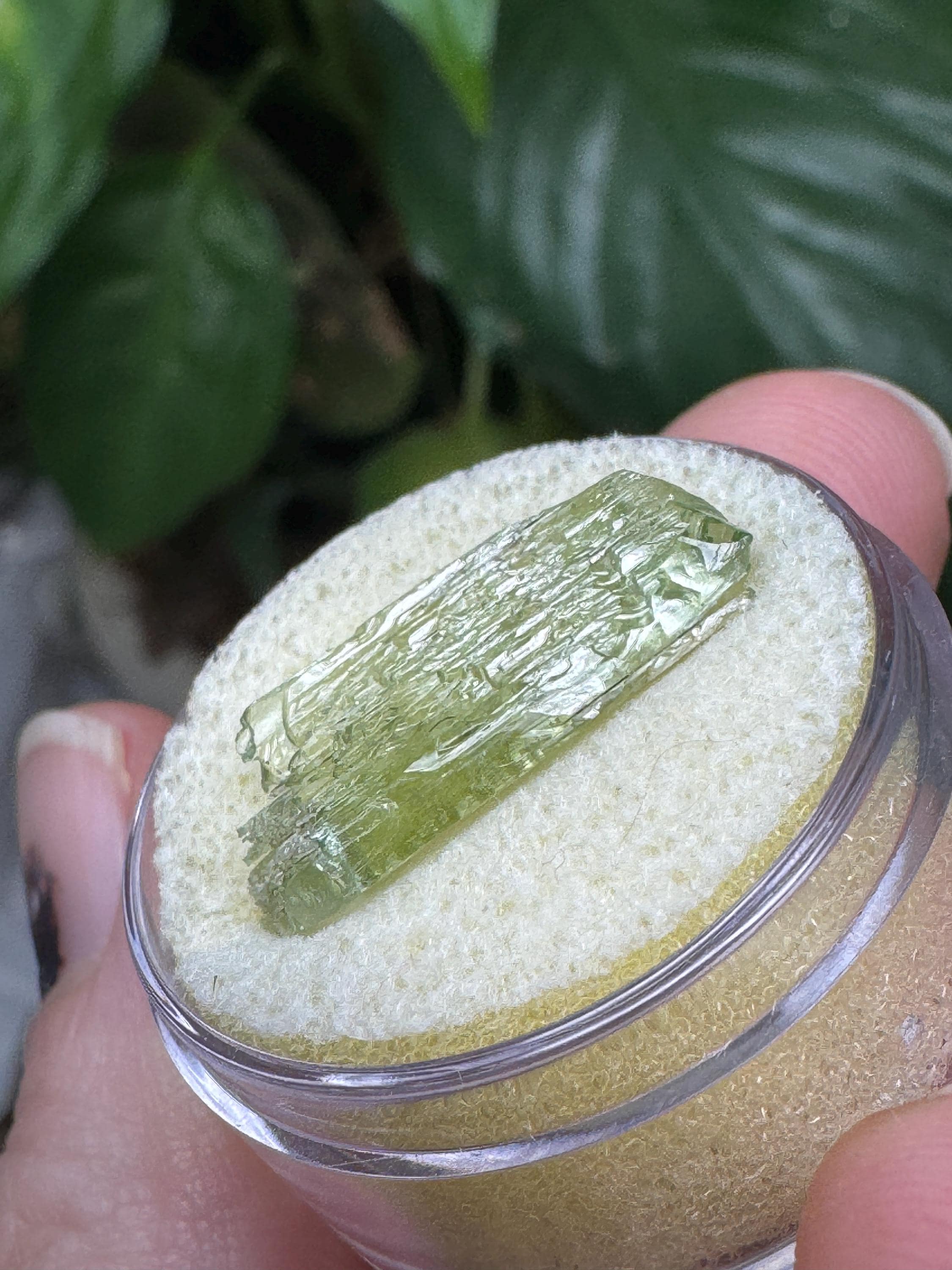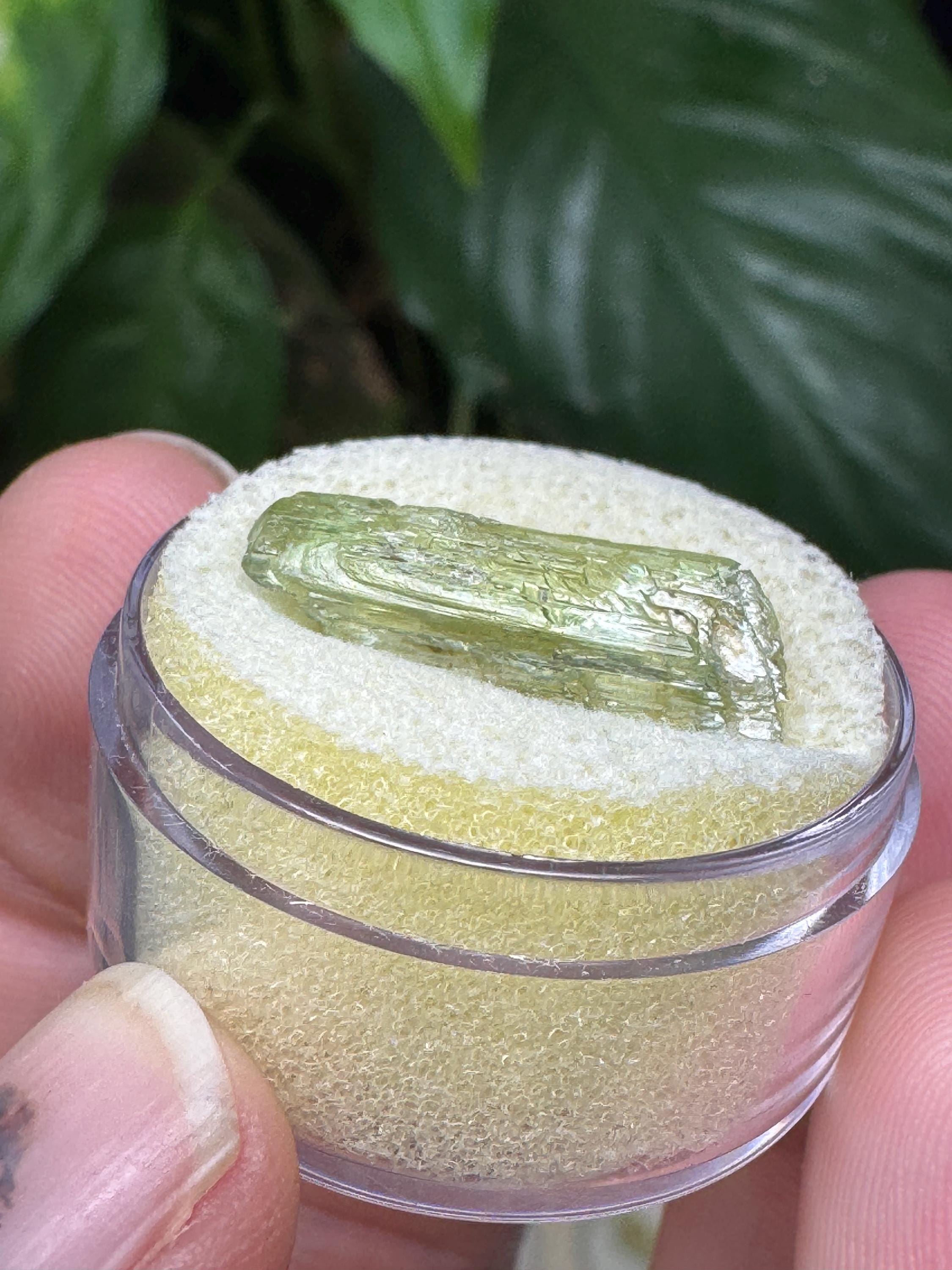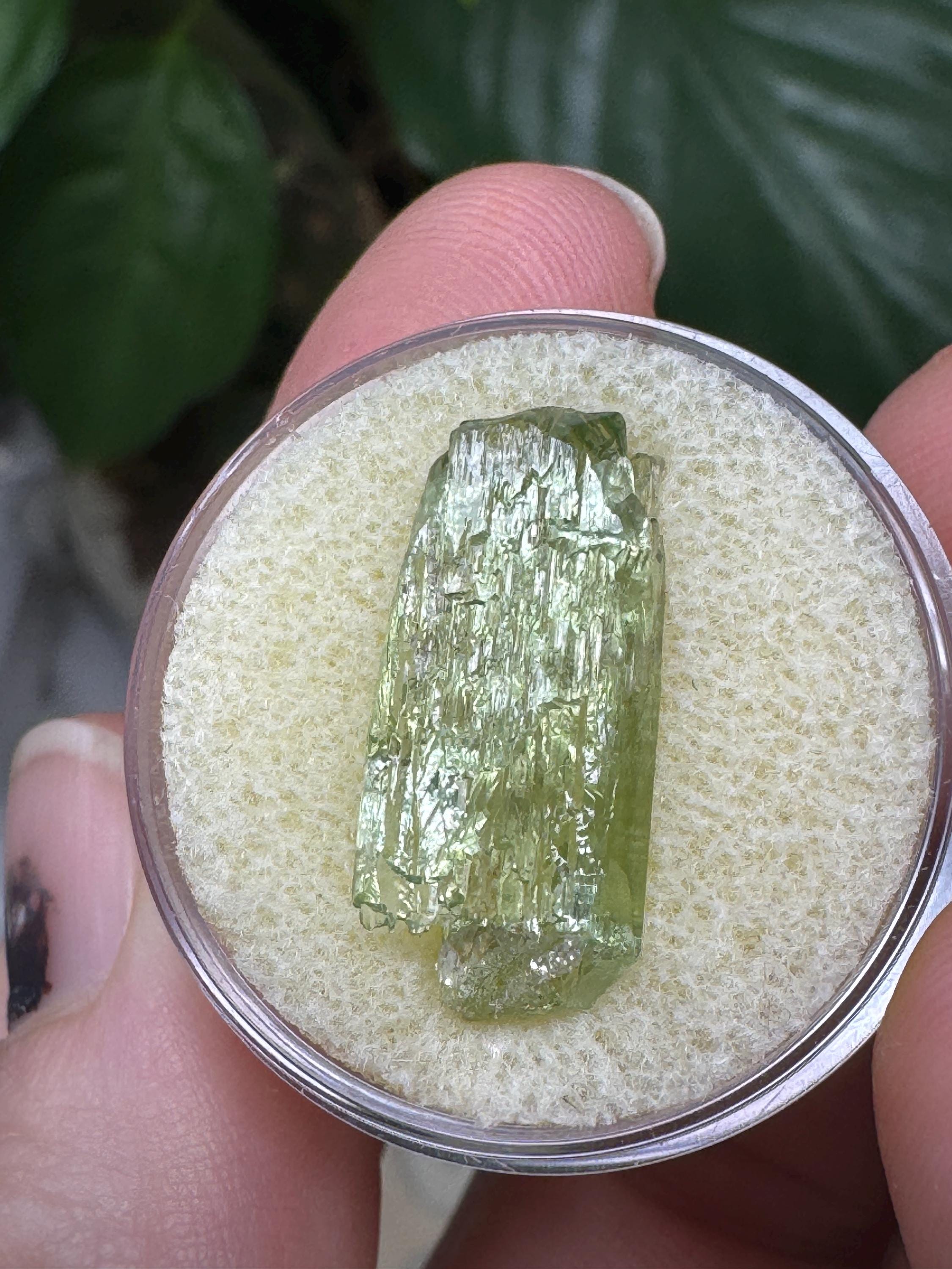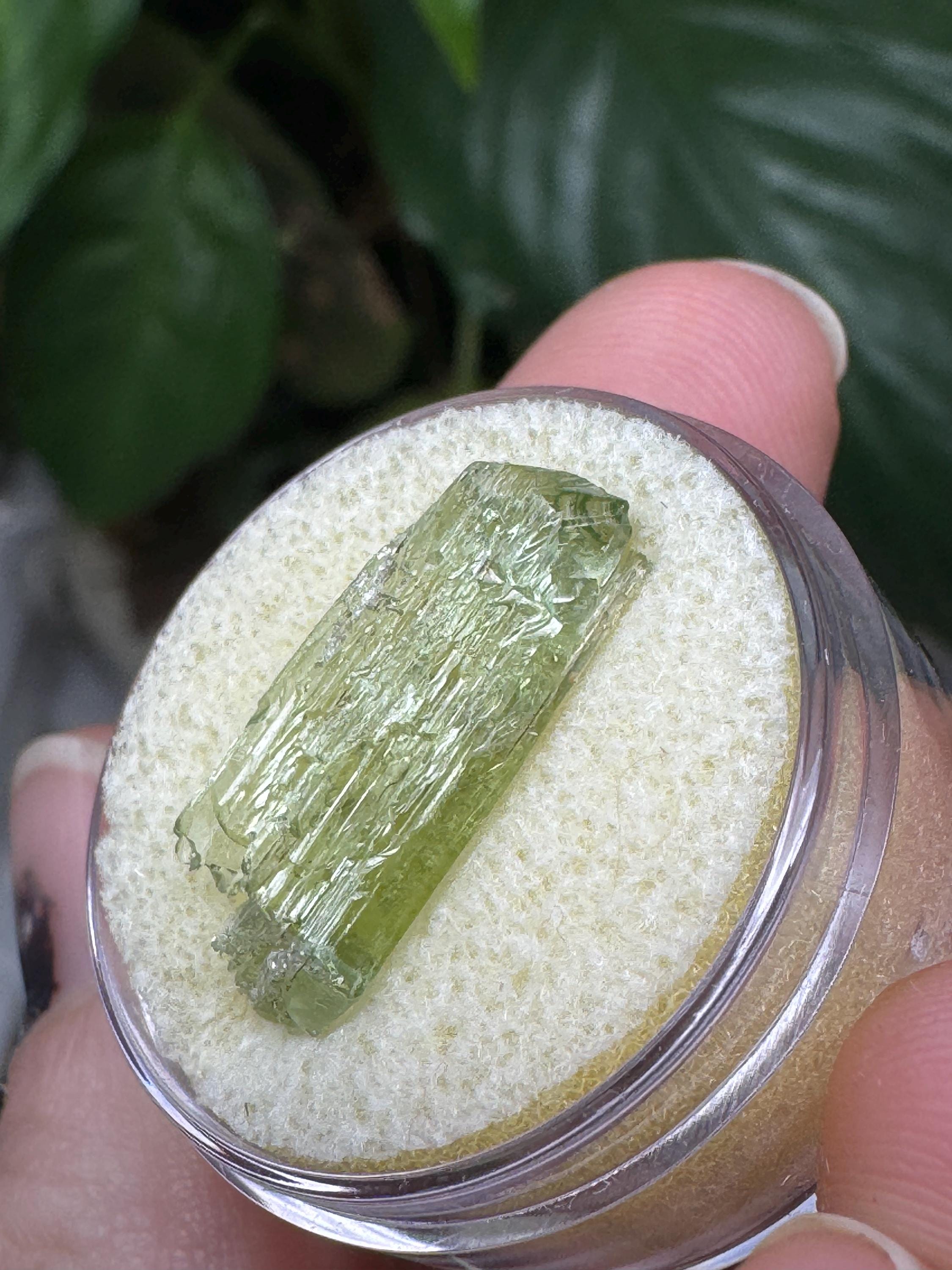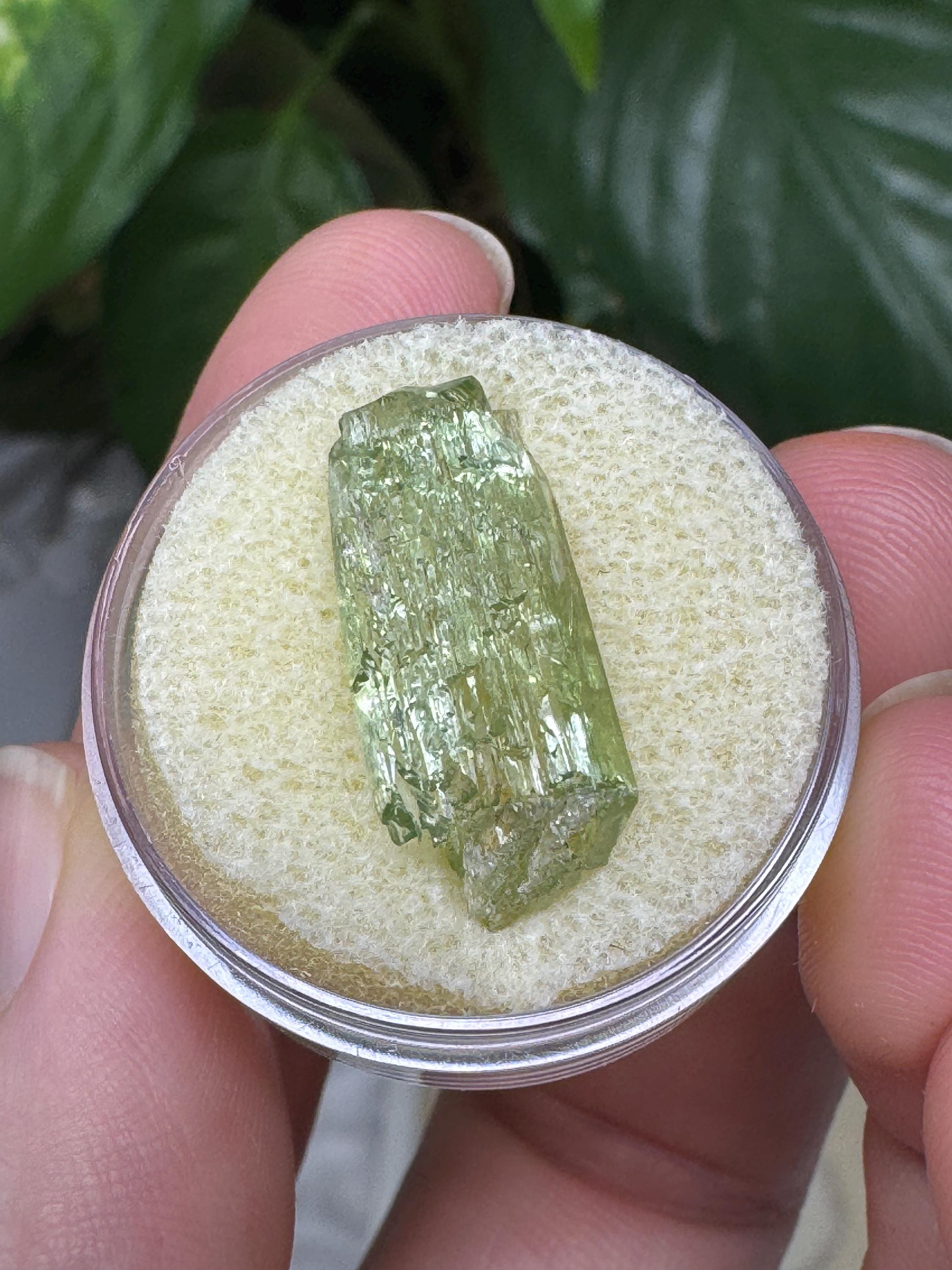 Beautiful Hiddenite from Hiddenite NC, Adams Farm. Good size and terminations. Mined by Terry Ledford in 2007. Comes in a .5" case. 8.25ct. 2cmAll minerals come with a collection card.