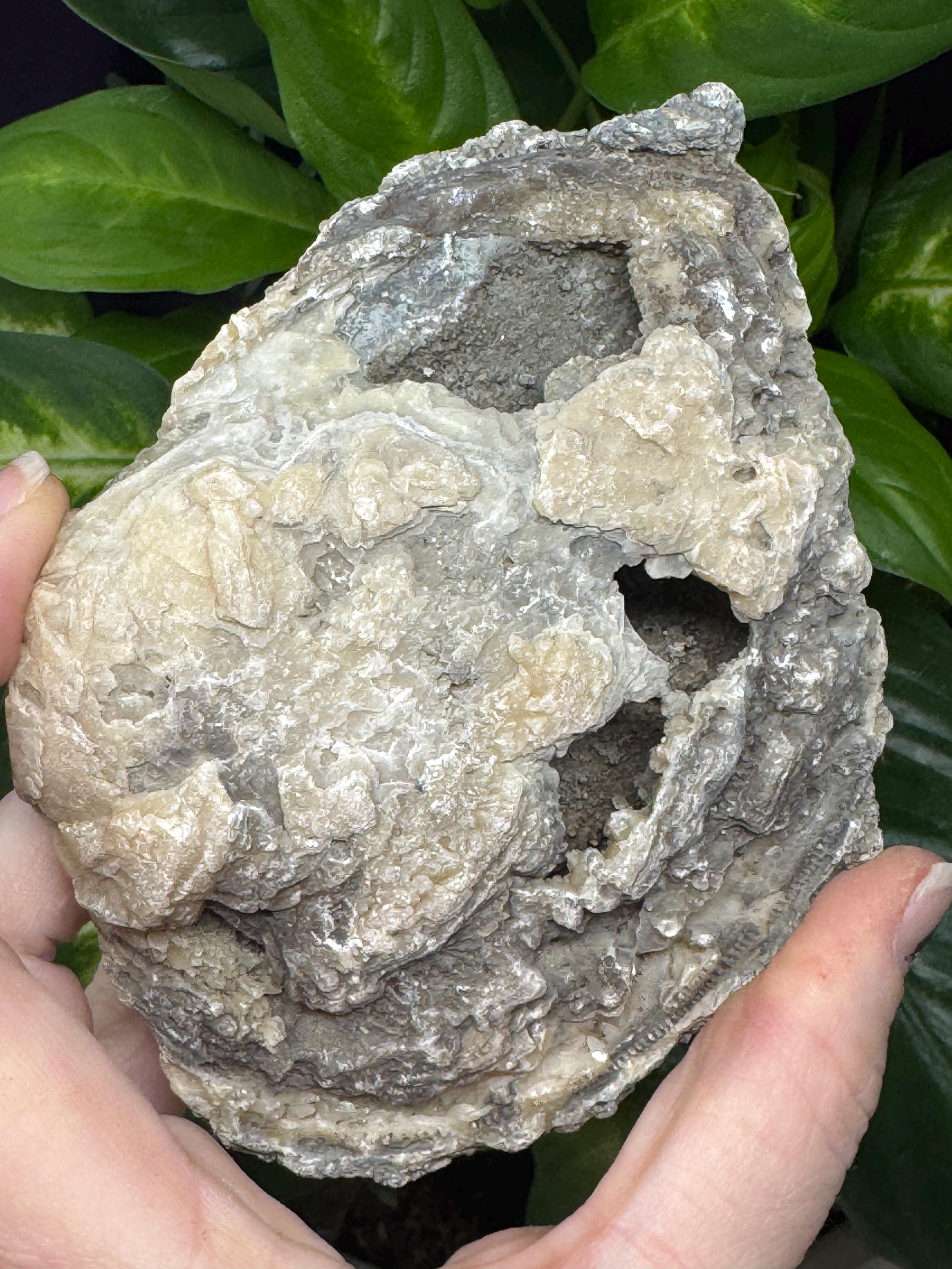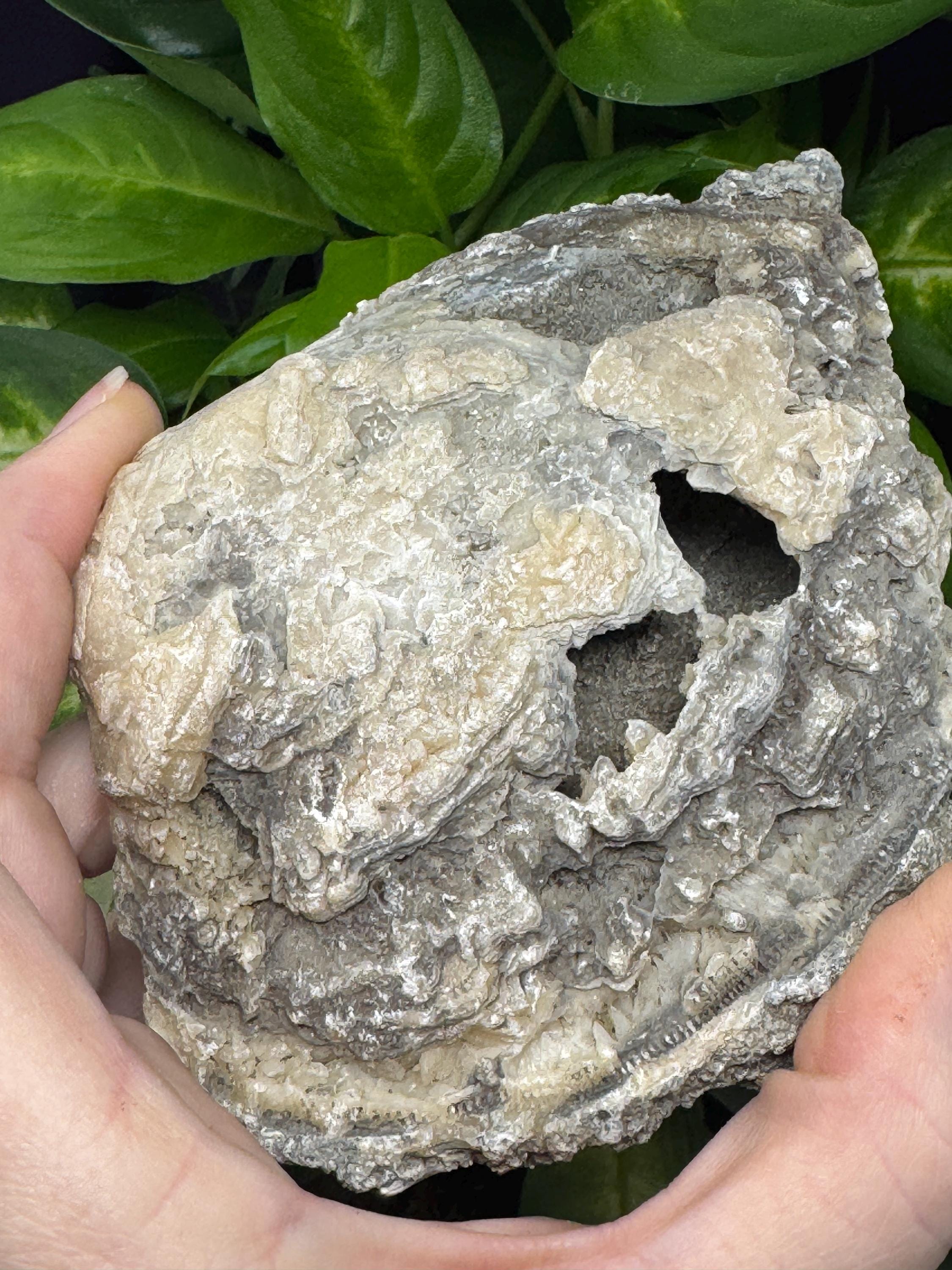 Fossilized Clam with Golden Calcite Crystals~Okeechobee County, Florida, Rucks Pit, also known as the Fort Drum Crystal Mine. Old collection. Comes with a collection card. 12 x 9cm