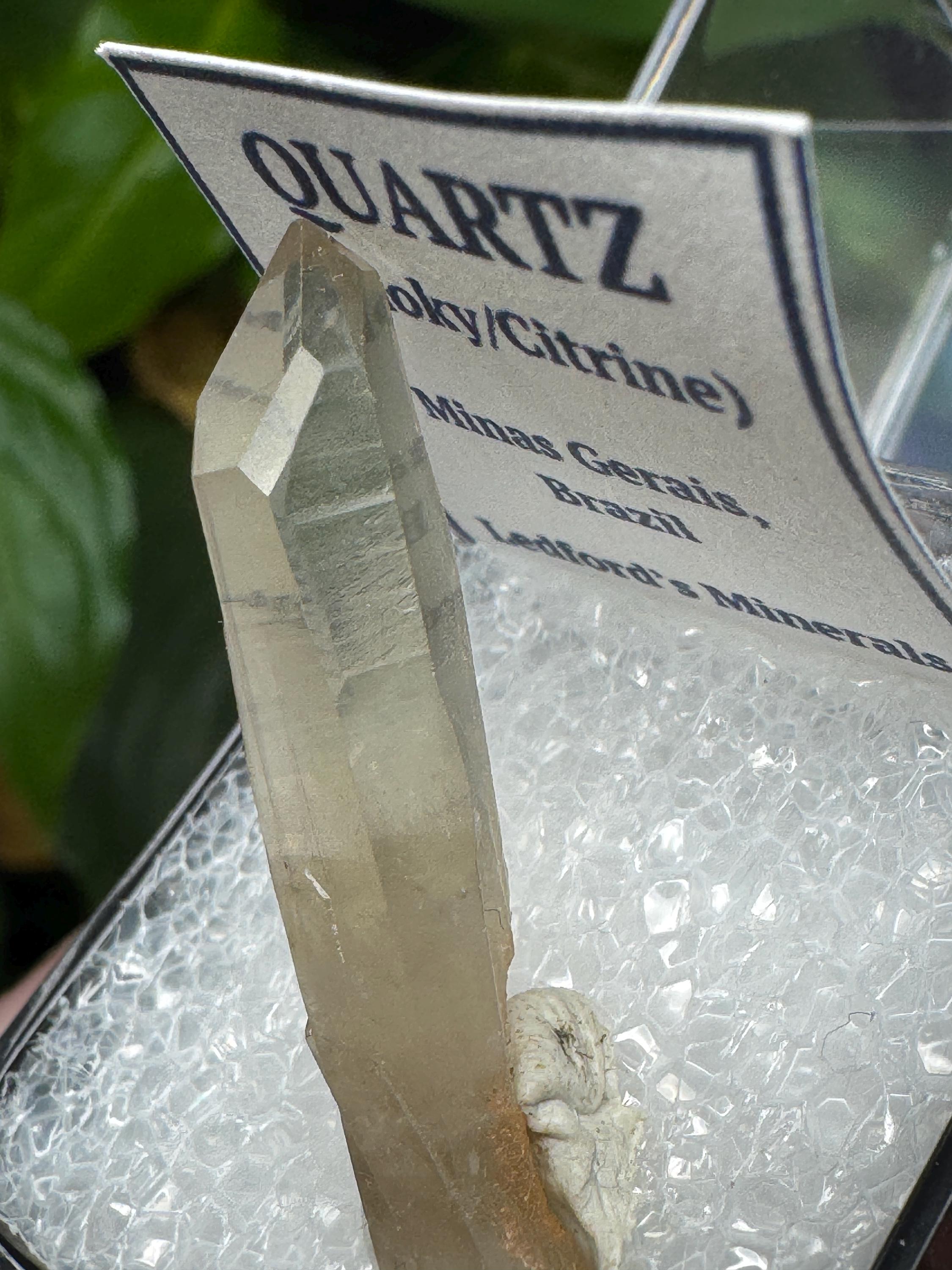Beautiful Golden Smoky Citrine Thumbnail from Minas Gerais Mine, Brazil. This beautiful crystal point has great color.All minerals come with collection card.
