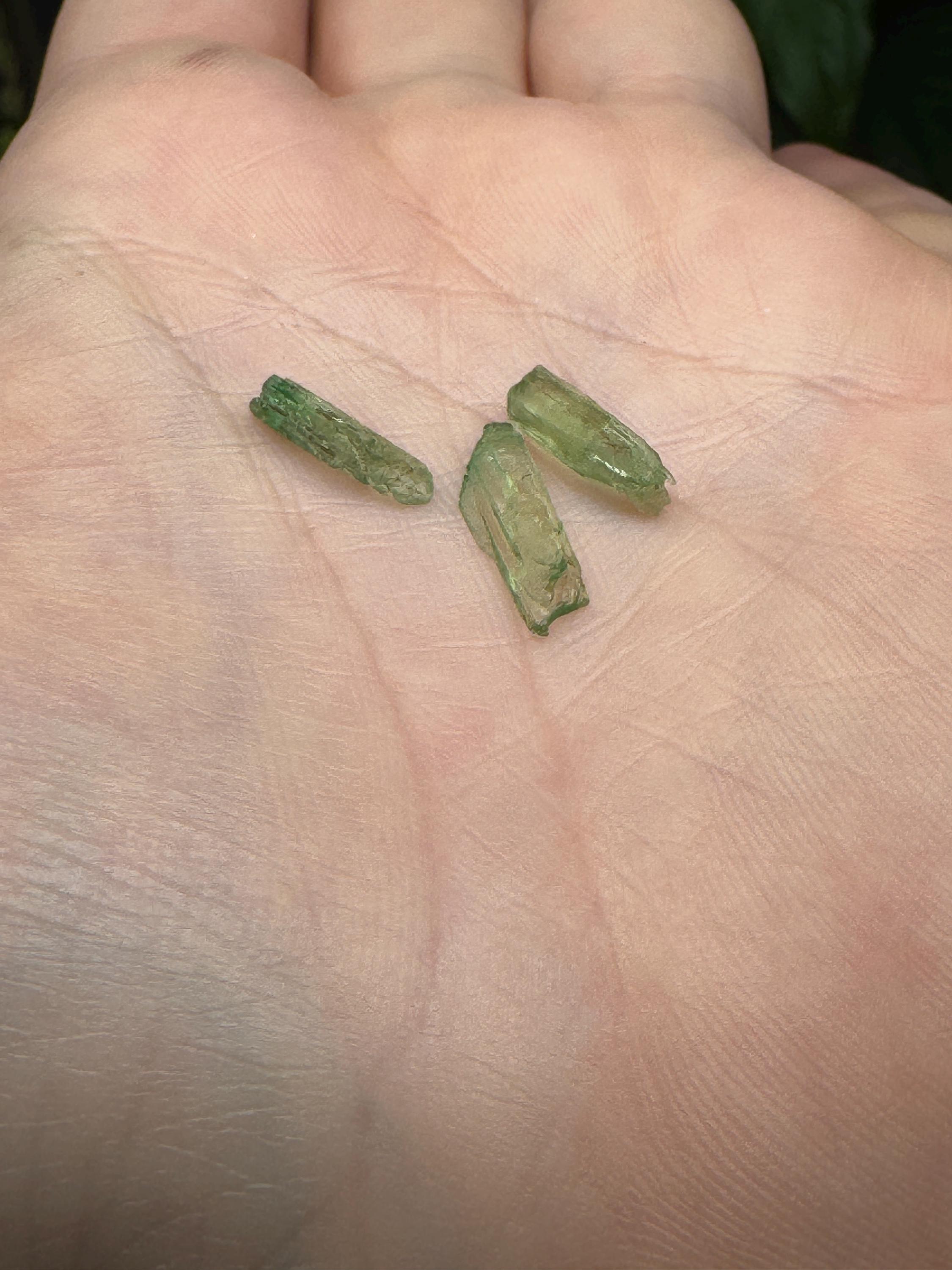 Beautiful Hiddenite Parcel from Hiddenite NC at the historical Adams Farm. Good, never fade chromium green color. Mined by Terry Ledford and Wren Adams in 2006. All minerals come with a collection card.