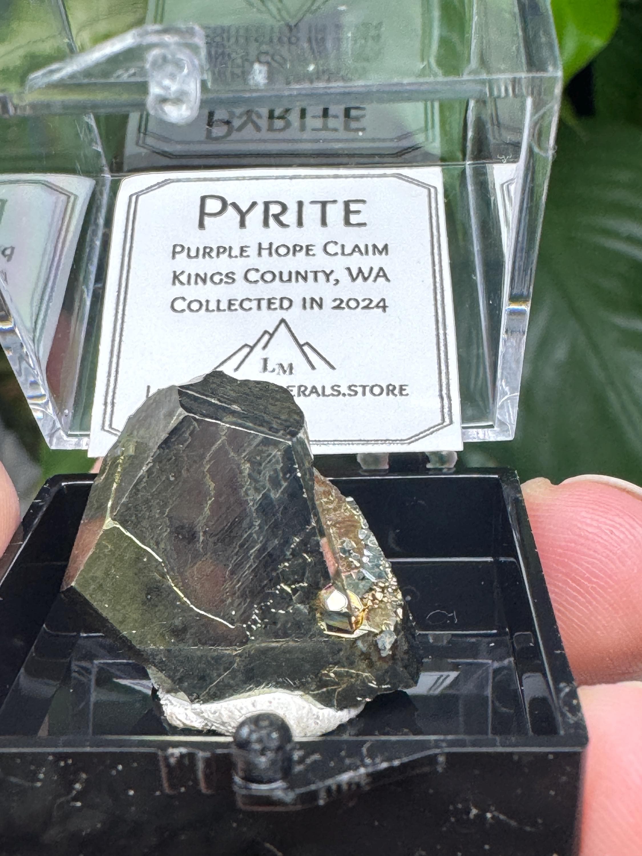 Pyrite Crystal from Purple Hope Claim, Washington. Collected by Joseph George.Comes with the 1” perky box.