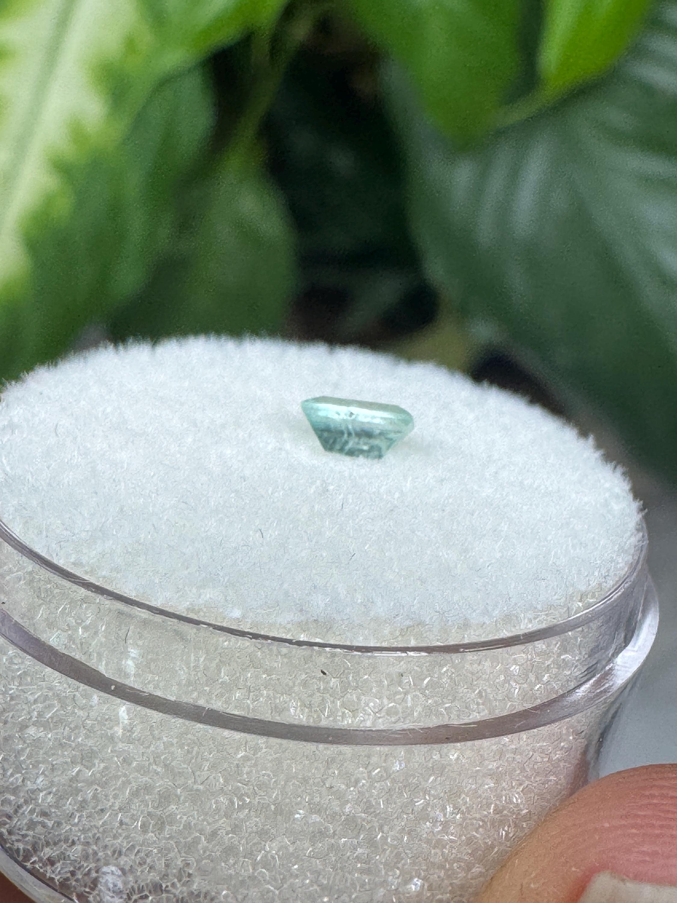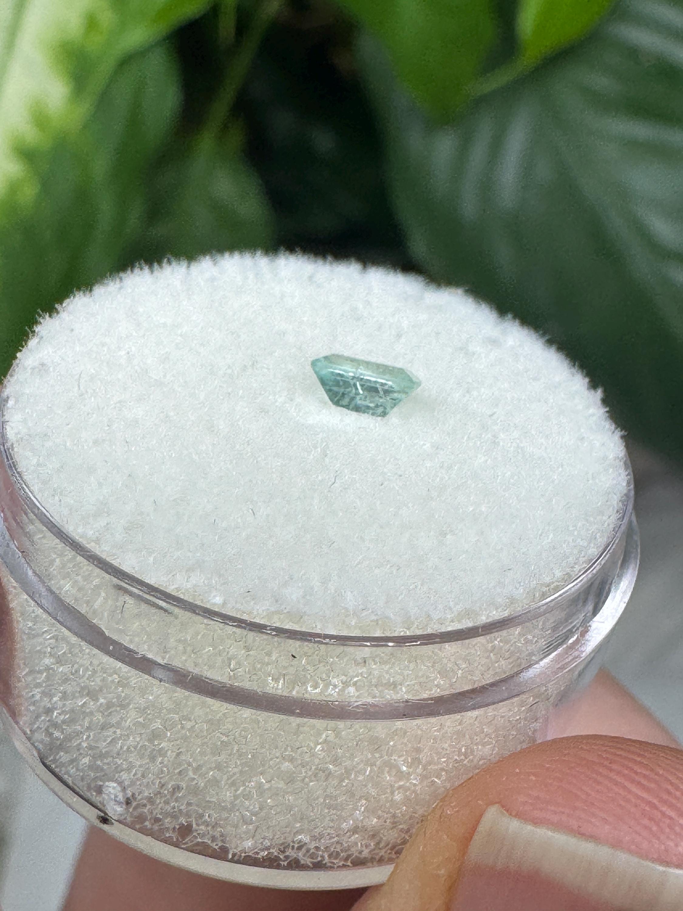 Beautiful Emerald Gemstone from North American Emerald Mine in Hiddenite NC. Permanently closed location. Collected by Terry Ledford and Jamie Hill. Even though these are light in color they are still considered emerald bc the color comes from Chromium. We had other gemstones, from the same pocket with same color, GIA certified.
