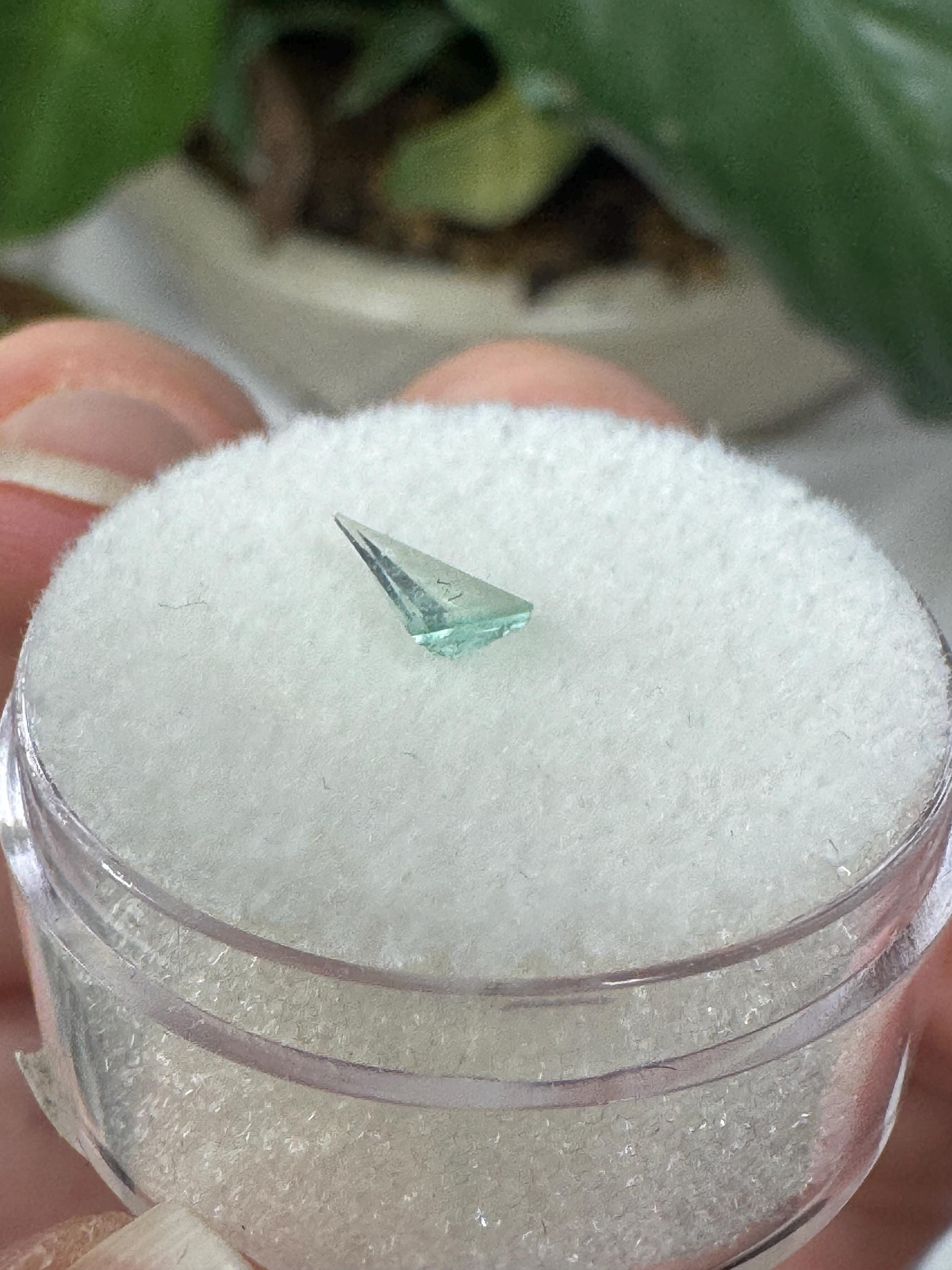 Beautiful Emerald Gemstone from North American Emerald Mine in Hiddenite NC. Permanently closed location. Collected by Terry Ledford and Jamie Hill. Even though these are light in color they are still considered emerald bc the color comes from Chromium. We had other gemstones, from the same pocket with same color, GIA certified.